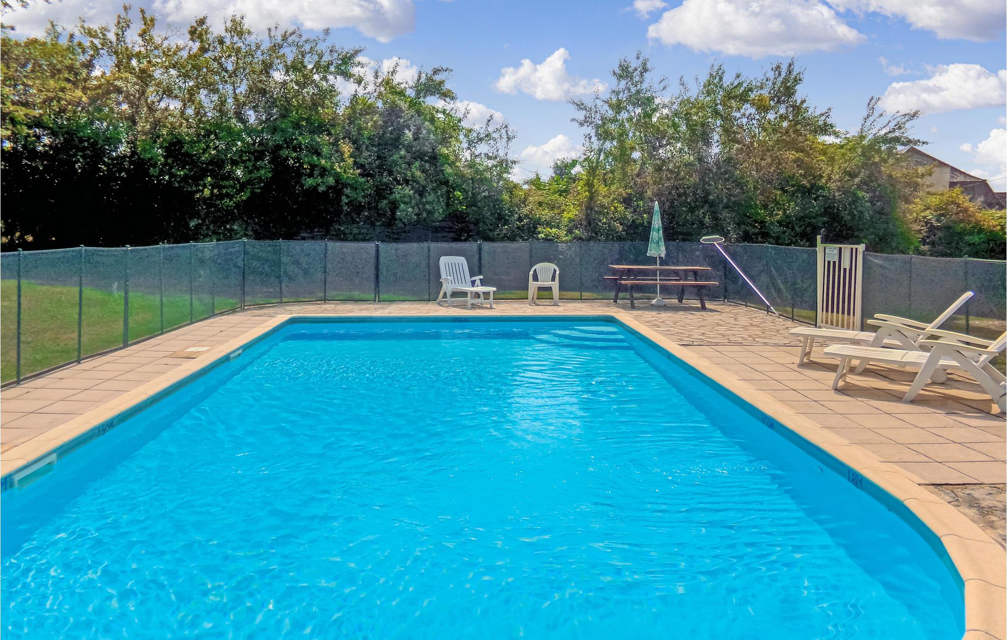Udendørsområdet er vidtstrakt og byder på mange muligheder for både afslapning og aktiviteter. Den indhegnede pool sørger for en forfriskende dukkert på varme dage. Til børnene er der en gynge, mens I kan slappe af på terrassen under en parasol og nyde roen. De grønne enge og den nærliggende skov inviterer til afslappende gåture.