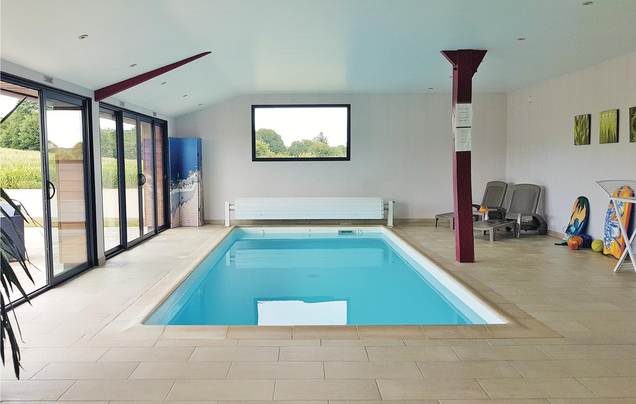 Fra lade til rummelig feriebolig, gennemstrømmet af lys! Ved den behagelige indendørs pool med modstrømsanlæg, er der bord og stole og et brusebad. Herfra kan I lukke skydedørene op og komme direkte ud på terrassen. Stuen, som er meget stor og åben, har store vinduer på den ene side, hvorfra der er skøn udsigt ud over de landlige omgivelser. Huset er et godt udgangspunkt til vandreture: Det er nemt at komme herfra det de mest populære badestrande langs Finistère. Concarneau der ligger omgivet af solide bymure og har en interessant gammel bydel (23 km) og Bénodet med herlige strande og et kasino (28 km). I Fouesnant er der to fremragende golfbaner samt gode muligheder for at dyrke vandsport, Quimper som er regionens hovedstad som lokker med glimrende restauranter og cafeer til en hyggelig aften i løbet af ferien.