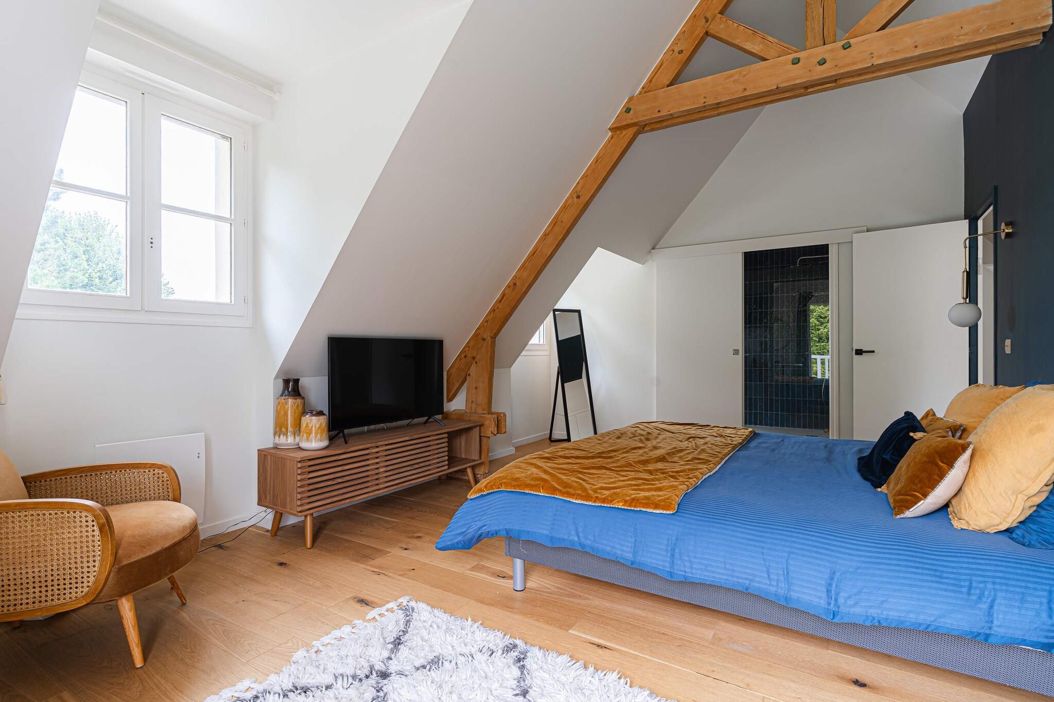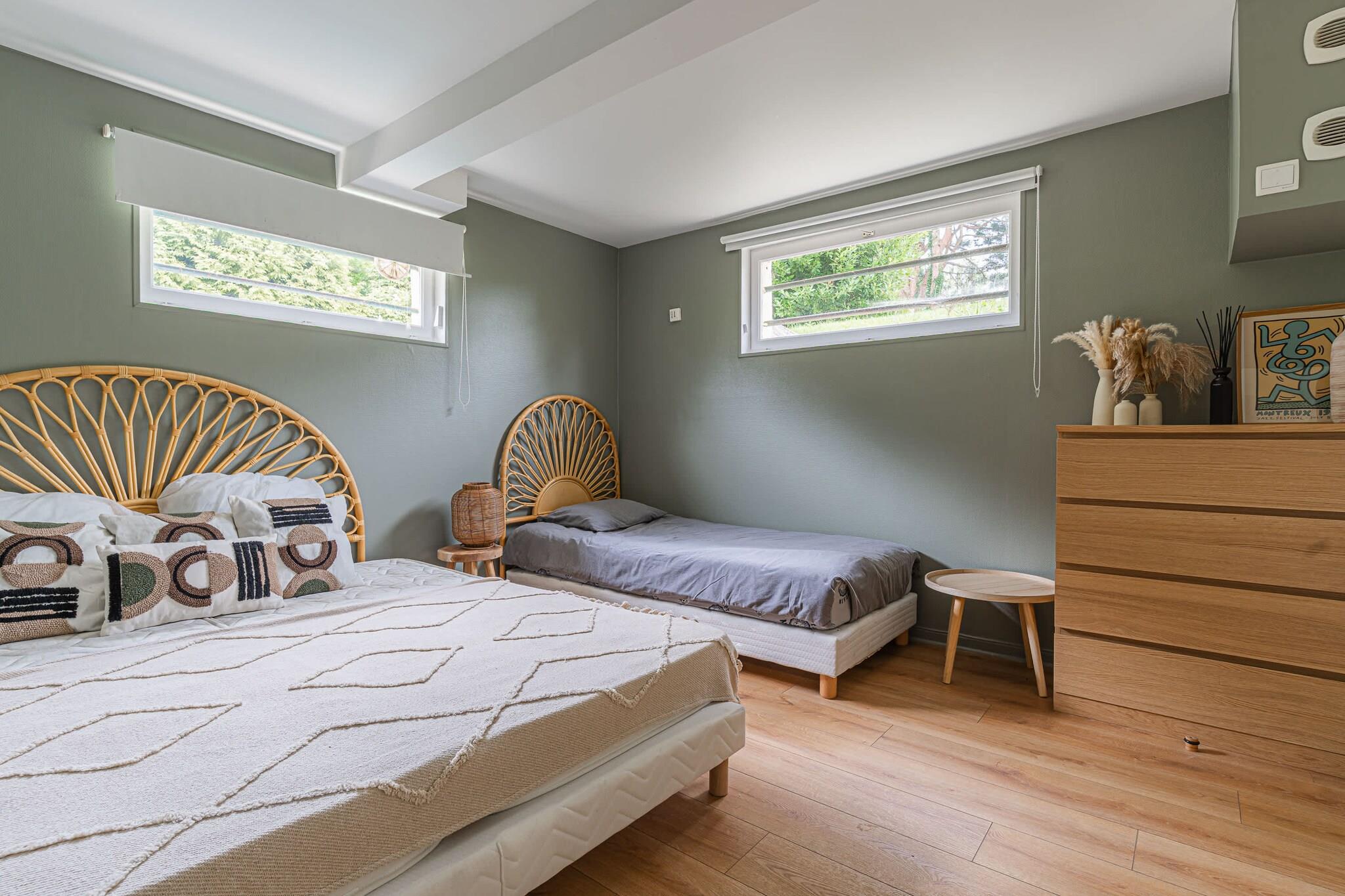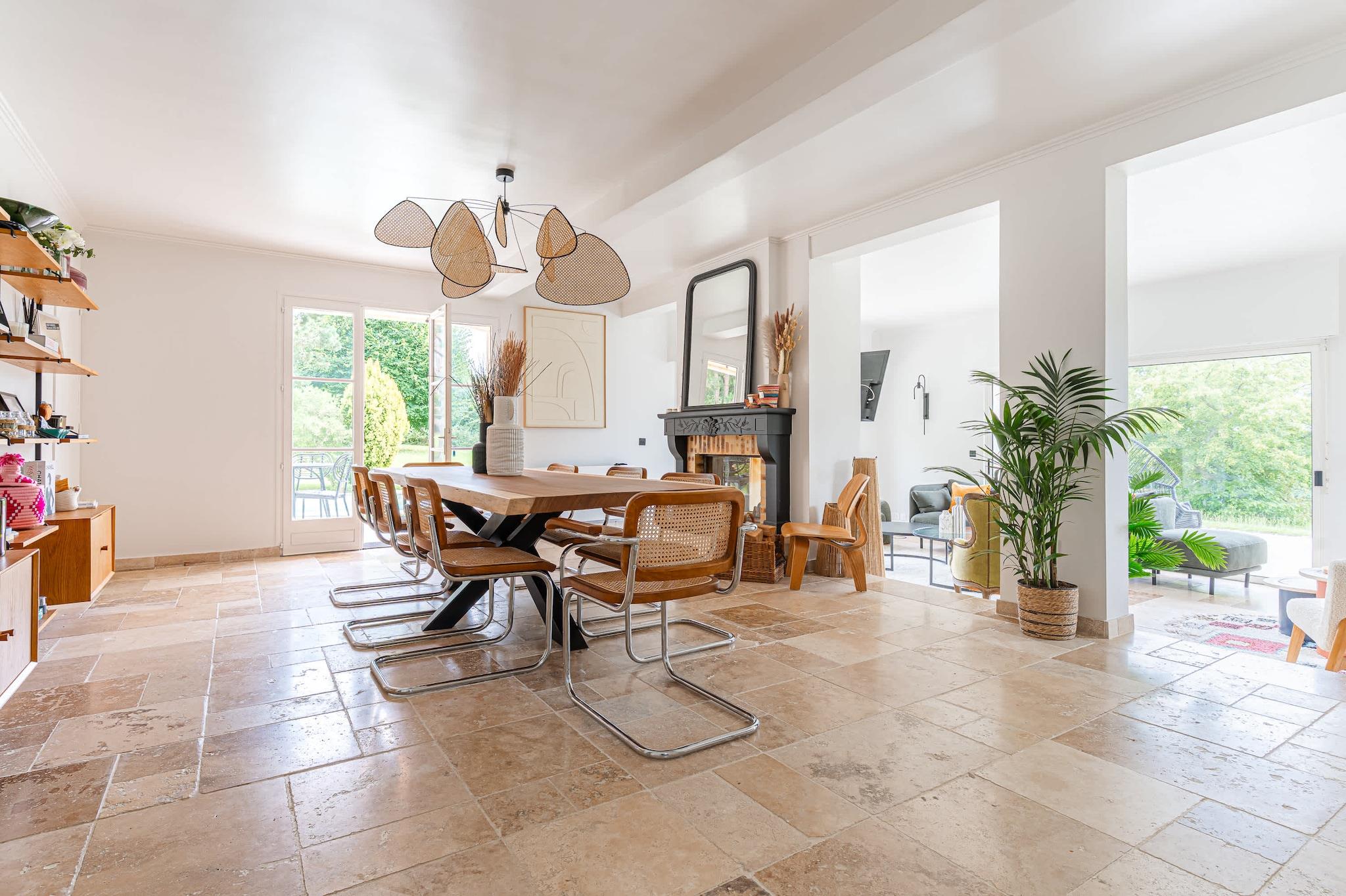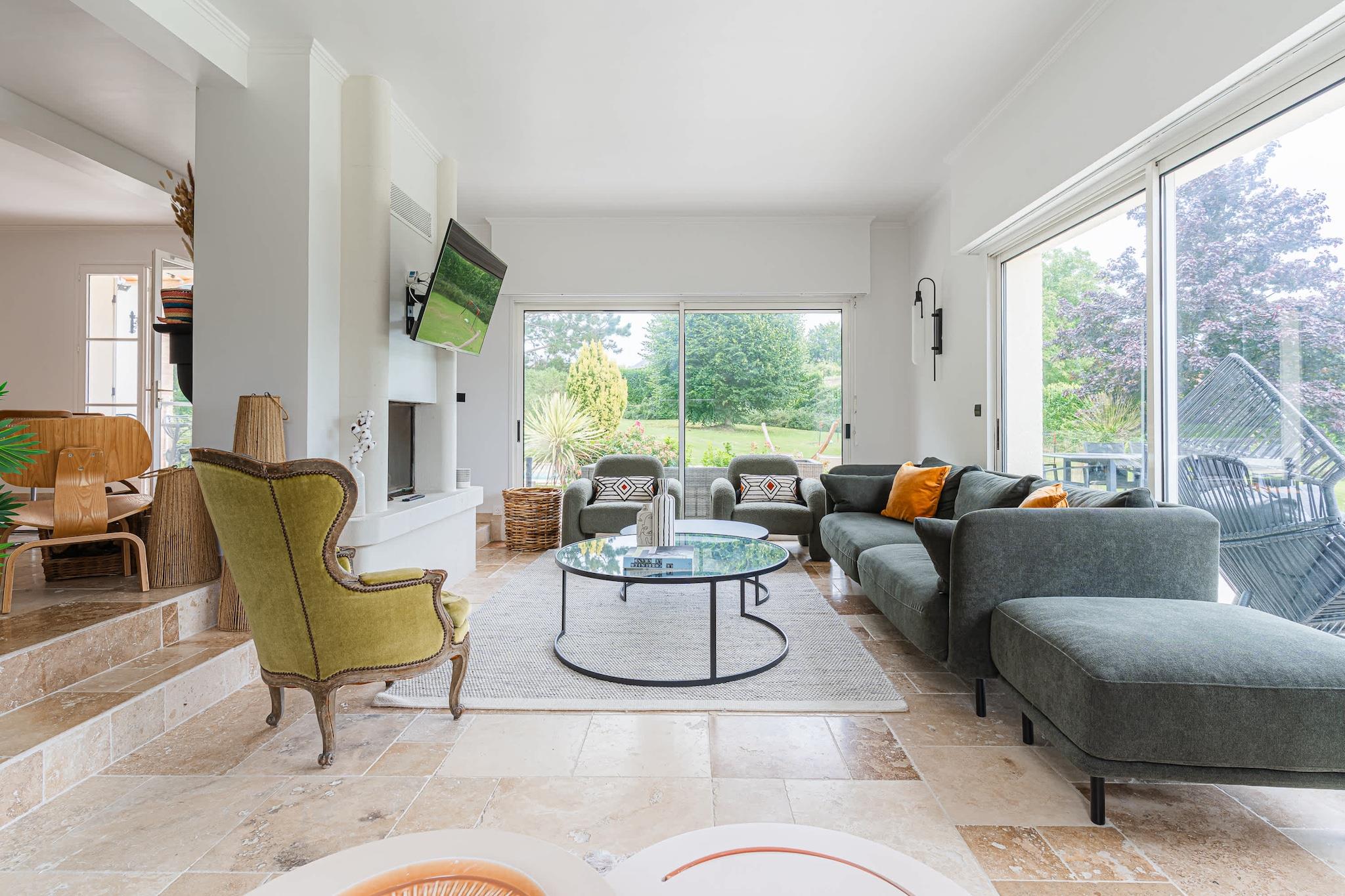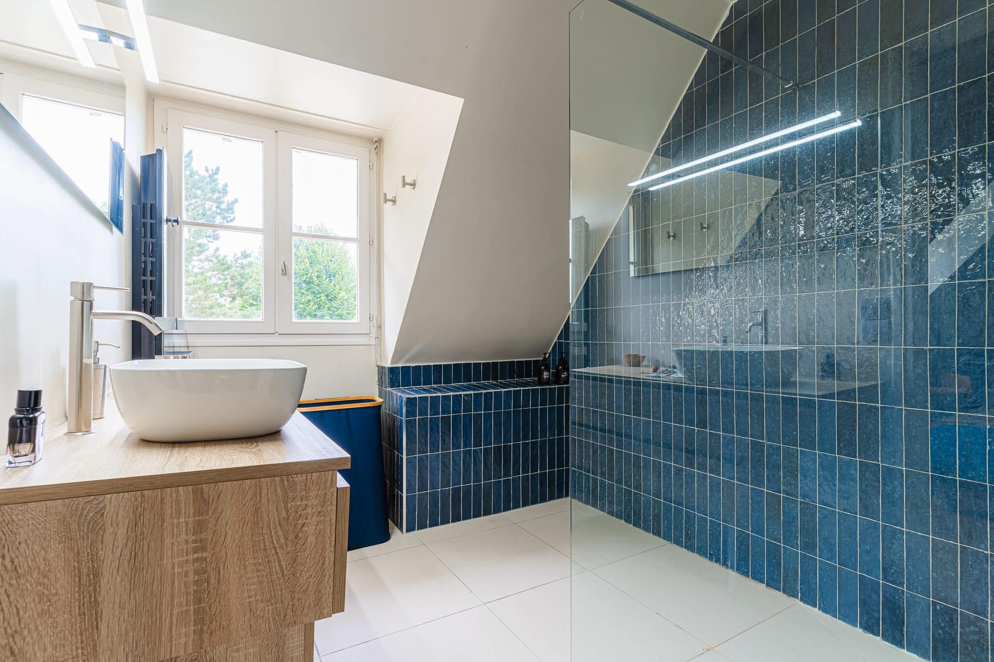 Enestående familievilla med swimmingpool, padelbane og have – nær Deauville Velkommen til dit drømmehjem i Normandiet – beliggende i grønne omgivelser i Englesqueville, kun få minutter fra Deauville og havet! Denne villa på 240 m², designet til komfortabelt at rumme op til 12 personer, er ideel til ophold med familie eller venner. Den kombinerer plads, komfort og underholdning, beliggende i en 5.000 m² skovklædt have med privat swimmingpool, padelbane, trampolin, gynge og rutsjebane. Et sandt paradis for både unge og gamle!