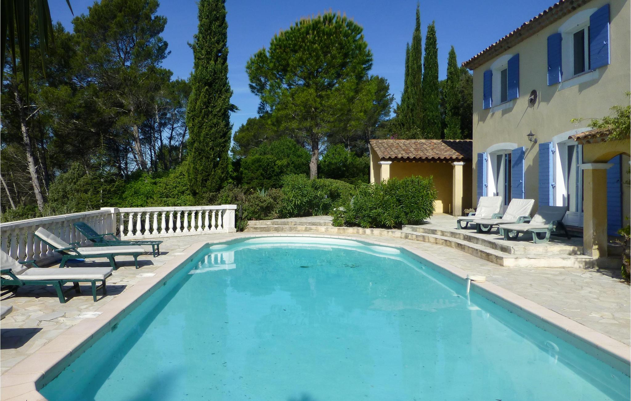 Dette skønne, højtliggende feriehus befinder sig i regionen Provence-Alpes-Côte d'Azur nær landsbyen Entrecasteaux. Huset er omgivet af fyrre- og cypresser, og allerede udefra er udtrykket meget charmerende. Indenfor venter en smagfuldt indretning og flot møblerede værelser. Her kan I bo flere familier og se frem til afslappende dage og rolige nætter.