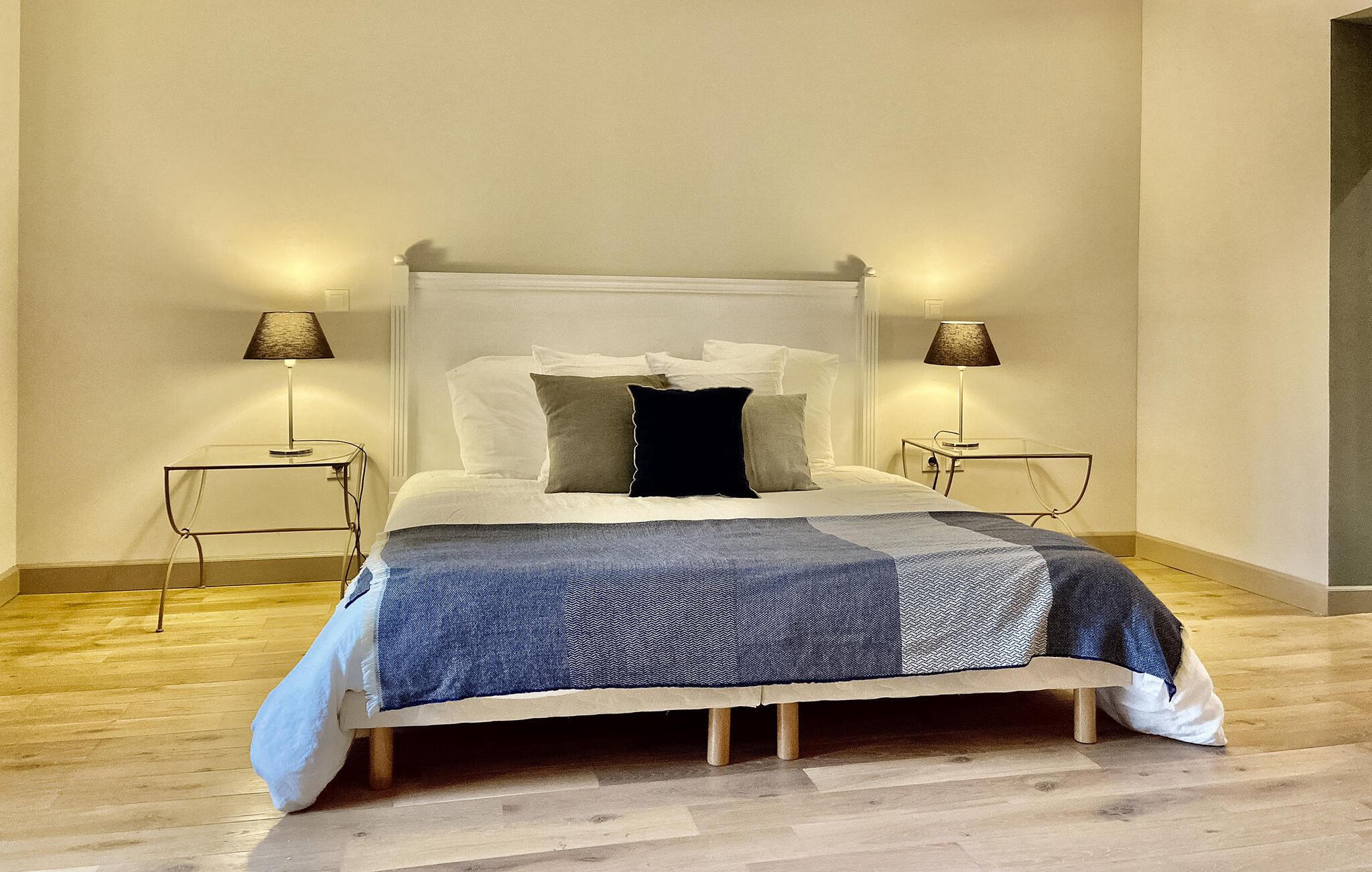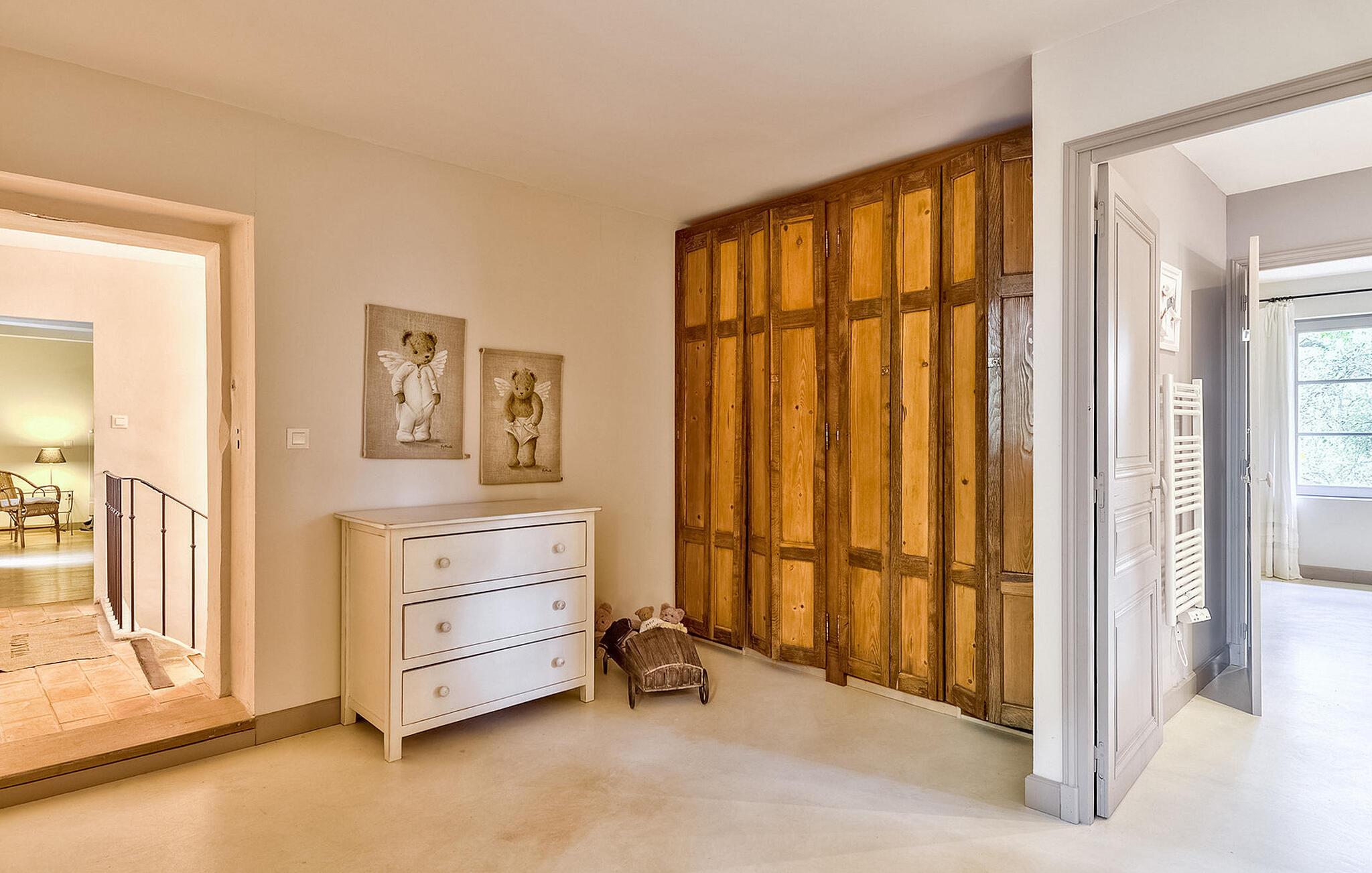 Forkæl dig selv med en fredfyldt provencalsk tilflugtssted på dette fantastiske stenbondehus. Beliggende på toppen af en bakke i en stor park sikrer dette tilbagetog privatliv uden isolation, tæt på Vaison la Romaine og landsbyen Entrechaux. Oplev rummelige opholdsområder, herunder et bibliotek, spisestue og et fuldt udstyret køkken i stueetagen. Første sal byder på elegante soveværelser med private badeværelser, mens anden sal byder på en tv-stue og yderligere soveværelser, herunder en selvstændig lejlighed til to. Udendørs kan du nyde store terrasser med udsigt over en opvarmet infinity-pool (4m x 10m) med fængslende udsigt over Crestet-landsbyen. Nyd charmerende udendørs spisepladser med grill midt på den lukkede grund. Oplev roen og skønheden i Provence i dette udsøgte bondehus, der tilbyder komfort, elegance og en betagende udsigt til en uforglemmelig ferieflugt. Nærmeste butikker i Entrechaux (2,5 km). Der er 1 bageri, en slagterbutik, en avistobaksforretning, 2 caféer med terrasser og en restaurant. Den charmerende by Vaison la Romaine (alle butikker, restauranter) ligger kun 4 km væk.