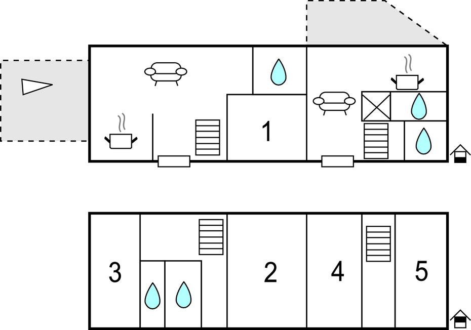 Indkvarteringen er ideel til 2 familier og består af 2 parcelhuse, hver med egen indgang, køkken og stue. Indvendigt kommunikerer de 2 dele kun gennem en dobbeltdør mellem soveværelse 2 og 4 på 1. sal.