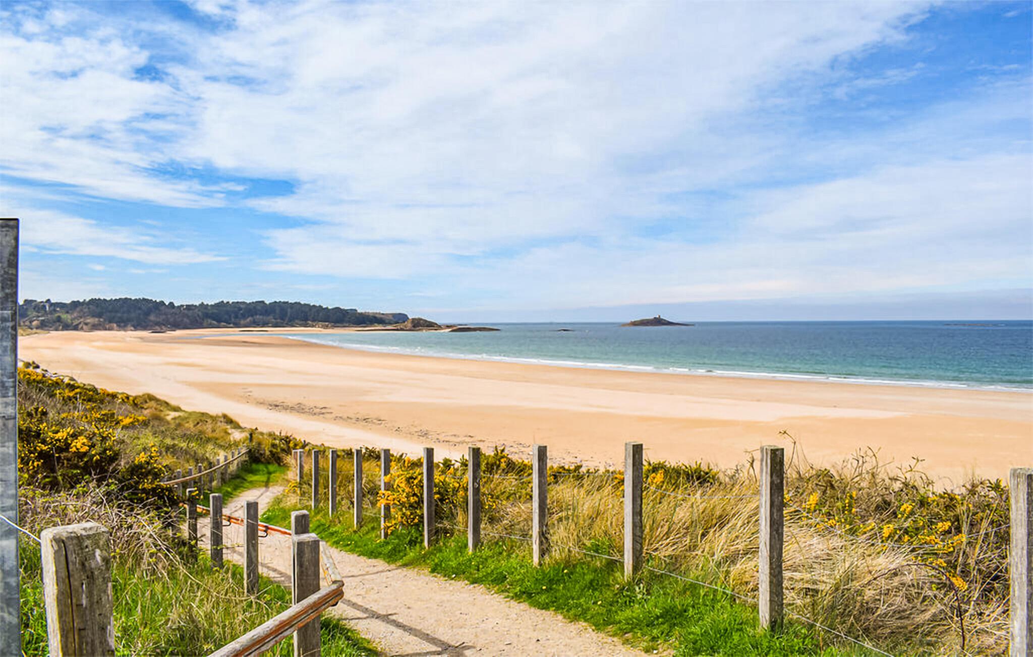 Oplev området omkring Erquy og nå strandene Le Guen og Lourtuais på kort tid. Besøg Portuais-stranden eller bymidtens butikker og havn. Udforsk Cap d’Erquys lyserøde sandstensklipper og følg kystvandringsstien GR34 gennem det fantastiske landskab.