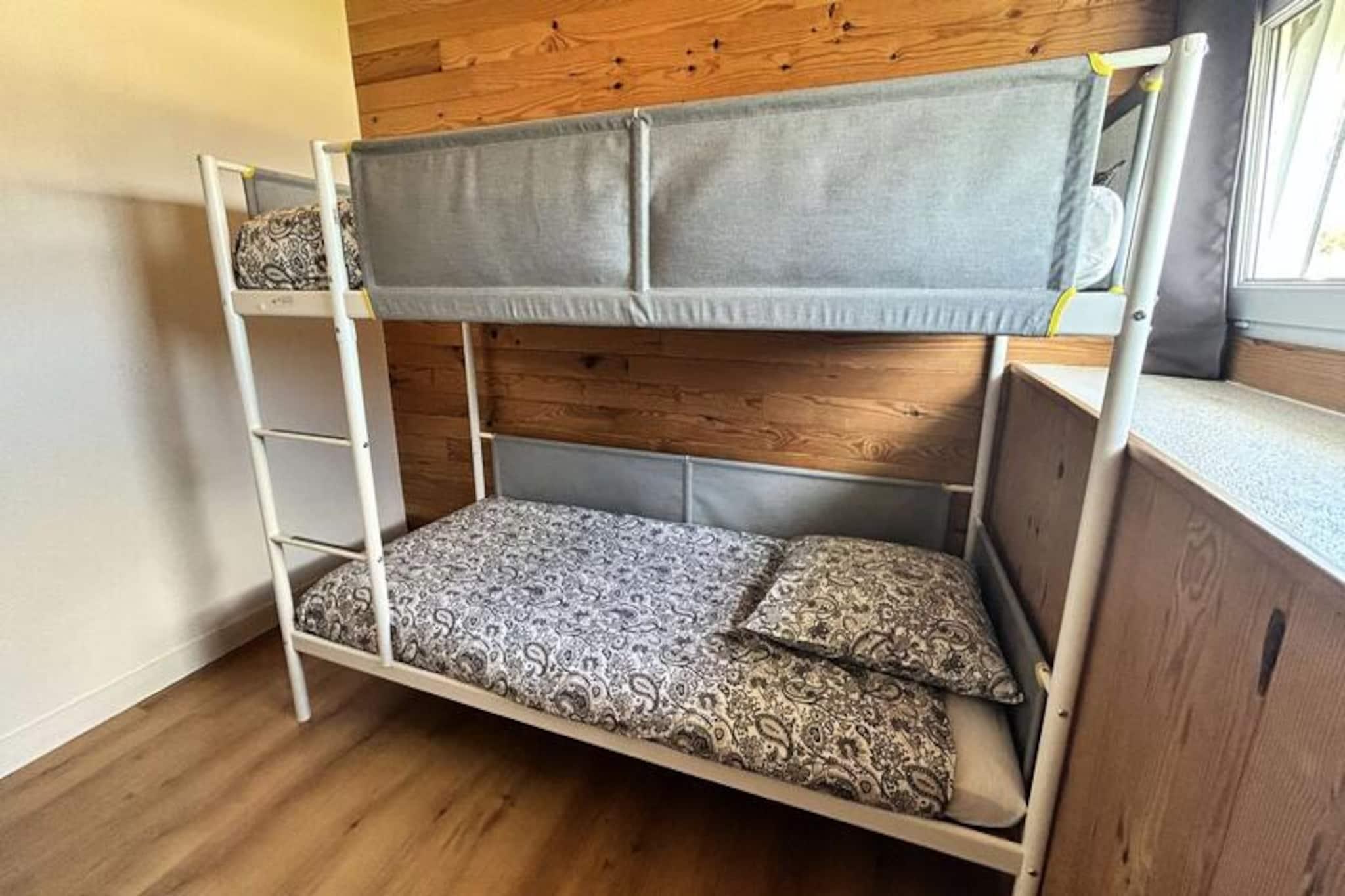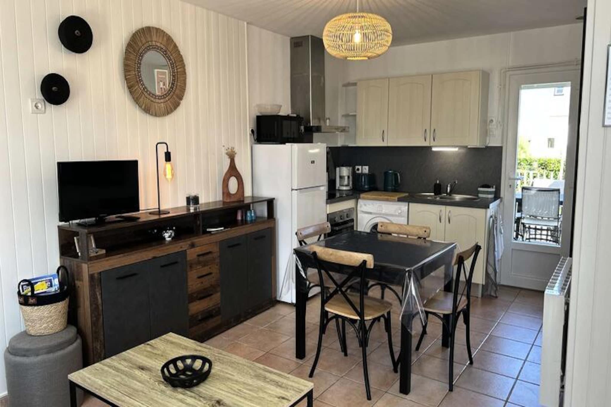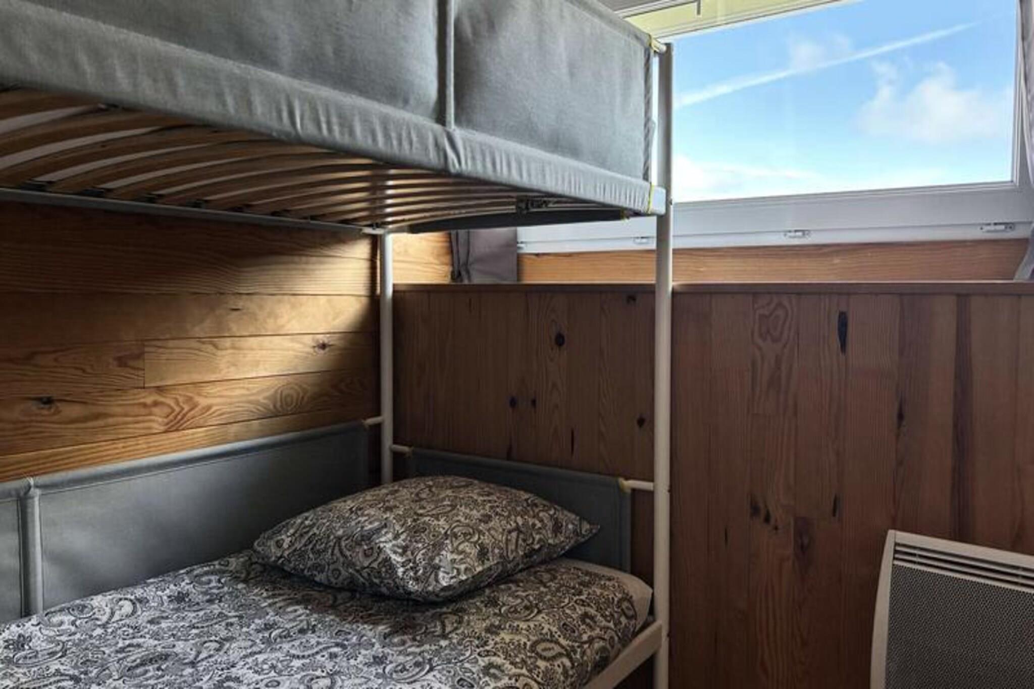 Midt i Landes' fredfyldte fyrreskove og kun få øjeblikke fra gyldne sandstrande tilbyder dette dejlige hus på 45 m² det perfekte tilflugtssted til din næste ferie. Beliggende i hjertet af Les Hôpitaux, en charmerende fiskerlandsby, inviterer ejendommen dig til at slappe af i sine rolige omgivelser, kun 850 meter fra havet. Uanset om du vælger at slentre gennem de maleriske gader eller cykle til kysten, lover beliggenheden afslapning og foryngelse. \n\nDette hus i to etager er designet til komfort og byder dig velkommen med en hyggelig stue med opholdsområde, spiseplads til fire personer og et åbent køkken udstyret med moderne apparater, herunder induktionskogeplade, ovn, køleskab med fryser og mikrobølgeovn. Ovenpå finder du to indbydende soveværelser: et med en standard dobbeltseng og et andet med køjesenge, perfekt til familier. Brusebadet i stueetagen sikrer bekvemmelighed, mens ejendommens gennemtænkte faciliteter, såsom Wi-Fi og inkluderet sengetøj, gør dit ophold problemfrit.\n\nGå udenfor for at nyde den fuldt indhegnede have, ideel til familiespil eller rolige stunder, og den dobbelte terrasse komplet med spisebord, parasol, liggestole og en kulgrill. Der er parkering på stedet, og en udbygning tilbyder opbevaring til cykler og strandudstyr, så alt hvad du behøver er lige ved hånden.\n\nUanset om du nyder frisk fisk og skaldyr på lokale spisesteder, udforsker nærliggende stier eller blot nyder solen ved havet, tilbyder dette hjem en idyllisk base for at skabe uforglemmelige minder. Tag til Les Hôpitaux og lad charmen ved denne kystparadis fortrylle dig.