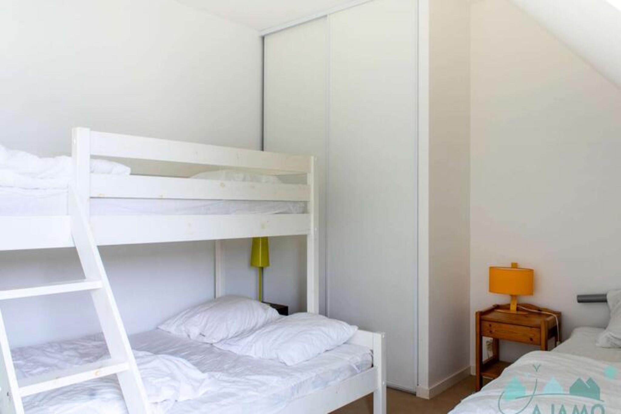 I den charmerende kystby Erquy, kun 500 meter fra den gyldne sandstrand Caroual, tilbyder dette dejlige feriehus det perfekte tilflugtssted for familier og venner. Forestil dig at starte dagen med lyden af ??bølger i det fjerne, efterfulgt af en afslappet gåtur til stranden, hvor 2 km fint sand venter. Ejendommen er også bekvemt placeret 2,7 km fra lokale butikker, hvilket sikrer, at du har alt, hvad du behøver, inden for rækkevidde. \n\nIndenfor er huset omhyggeligt designet til komfort og afslapning. Stueetagen har en hyggelig stue og et fuldt udstyret køkken, perfekt til at tilberede måltider til servering på terrassen. Ovenpå finder du et moderne badeværelse og to indbydende soveværelser. Det første soveværelse kan prale af en rummelig dobbeltseng (160x200 cm), mens det andet tilbyder en dobbeltseng (140x190 cm) og to enkeltsenge (90x190 cm), hvilket gør det ideelt for familier eller grupper. Babyudstyr, herunder en sammenklappelig barneseng, højstol og potte, er også tilgængeligt for din bekvemmelighed. \n\nTræd udenfor til den private terrasse, komplet med havemøbler og en elektrisk grill, hvor du kan slappe af med en spisning under åben himmel efter en dag med sightseeing. Med Wi-Fi-adgang, sengelinned, håndklæder og viskestykker inkluderet, bliver dit ophold endnu mere behageligt. To dedikerede parkeringspladser sikrer problemfri ankomst og afgang. \n\nUanset om du er her for at sole dig på stranden, udforske den maleriske bretonske kystlinje eller blot slappe af i rolige omgivelser, er dette hjem din port til uforglemmelige minder i Erquy. Book dit ophold i dag og oplev den perfekte blanding af kystcharme og moderne komfort.