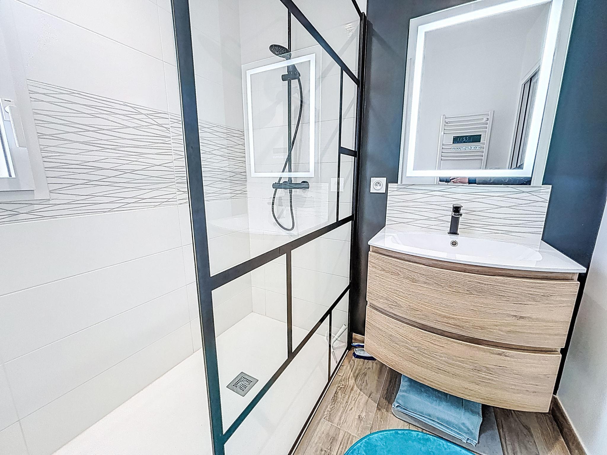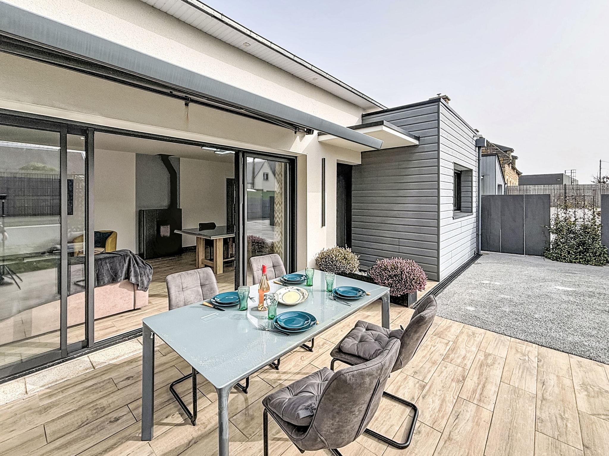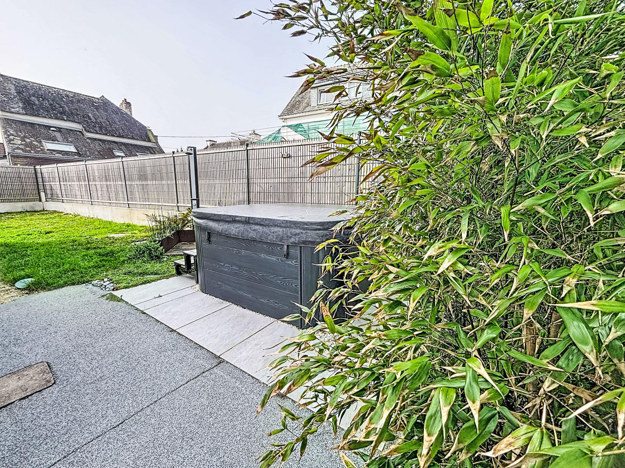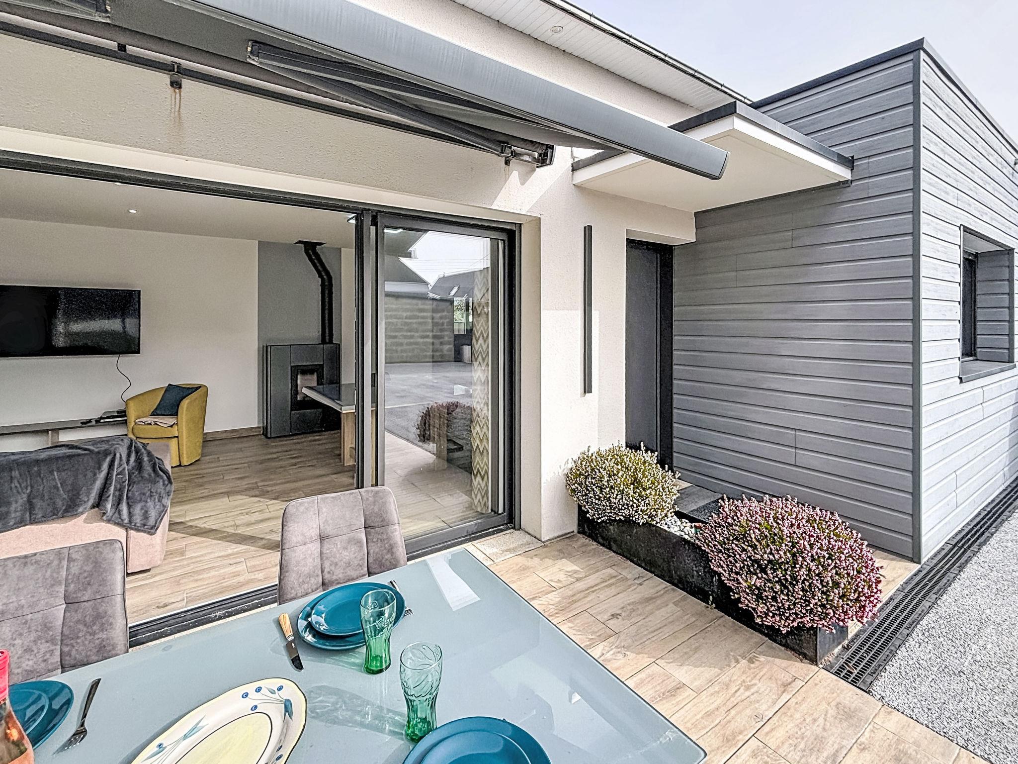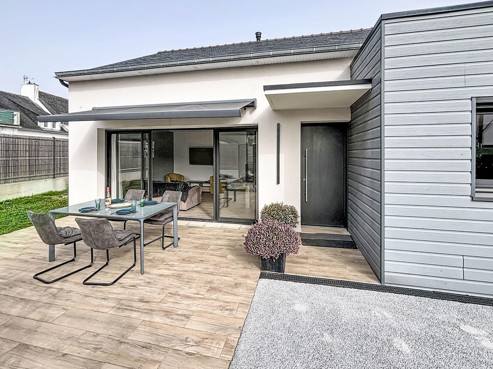 Etel: Terraced house "Maison Du Crouzic". In the centre of Etel, 1.1 km from the sea, 1.1 km from the beach, 350 m from the river. Private: outdoor shower, hot tub, parking. Shop 1 km, grocery 900 m, supermarket 2.6 km, restaurant, bar, bakery, café 800 m, bus stop "Etel centre" 800 m, sandy beach "Plage Etel" 1.1 km. Sports harbour 1.1 km. Nearby attractions: Port Etel, Plage de Kerhillio 9 km, Saint-Cado 5 km, Presquile de Quiberon 35 km, Vannes 40 km, Belle Ile en mer.