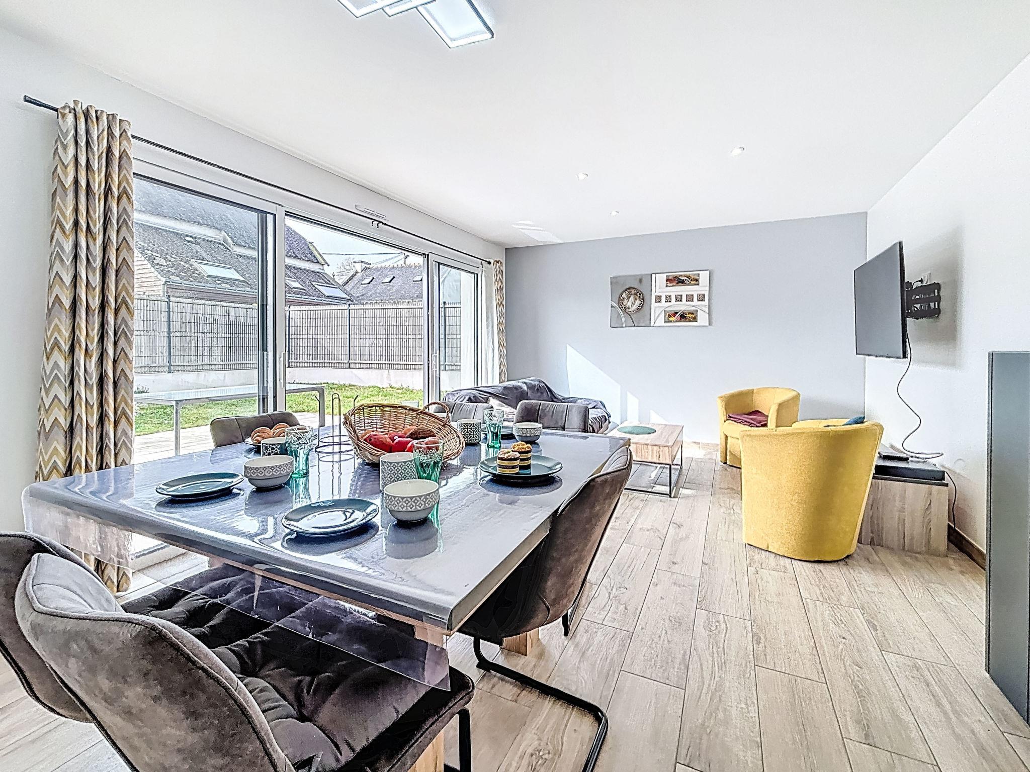 "Maison du Crouzic", 3-room house 76 m2, on the ground floor. Comfortable furnishings: living/dining room with TV (flat screen). 1 room with 1 french bed (1 x 140 cm, length 190 cm), 1 pull-out bed (1 pers.). 1 room with 1 french bed (1 x 140 cm, length 190 cm). Kitchen (oven, dishwasher, 3 induction hot plates, toaster, kettle, freezer). Shower, sep. WC. Patio. Terrace furniture, electric barbecue. Facilities: washing machine. Internet (WiFi, free). Parking. Please note: non-smokers only. Smoke alarm. Offer by a private individual according to Art. 155, IV of CGI. 56055000100SH