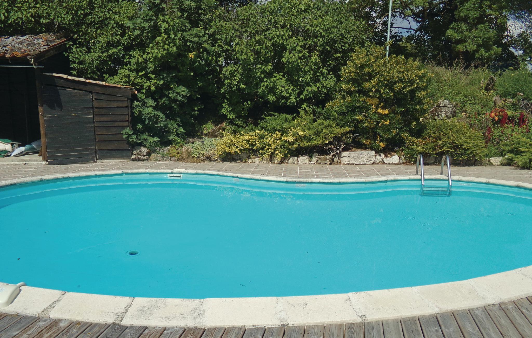 Tilbring jeres ferie i dette enkle feriehus med fælles pool og vidtstrakt udsigt over landskabet.