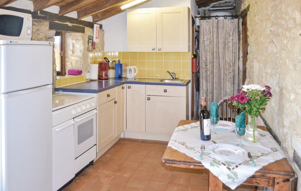 Nyd et landligt ophold i en bolig, der er ideel for par, og som tilbyder fred og afslapning. Sæt jer til rette i det enkelt møblerede interiør. Tilbered måltider i det praktiske køkken og nyd den hyggelige atmosfære med stenvægge og træbjælker. Slap af i opholdsstuen med sofa eller nyd jeres måltider ved det lille bord.