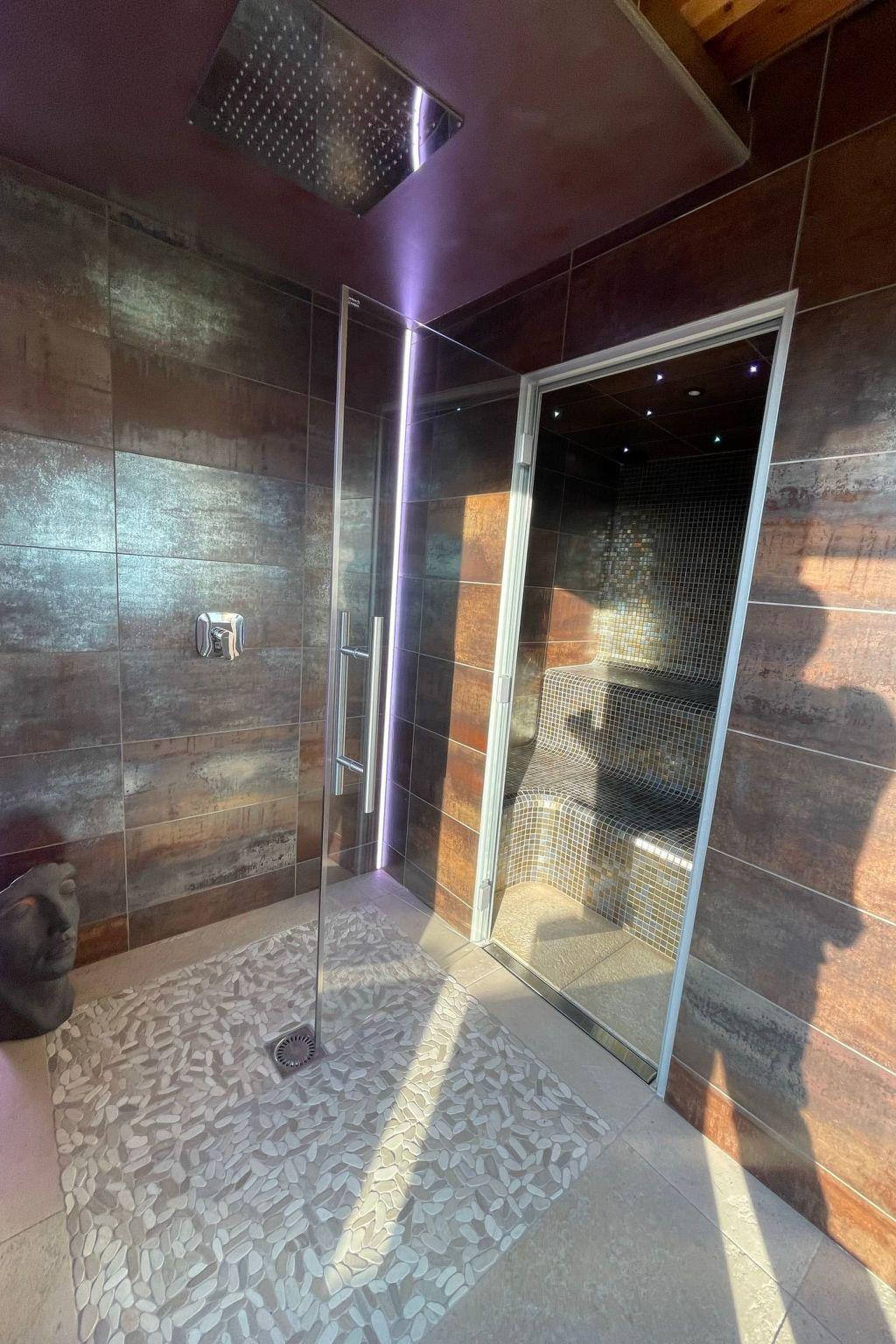 In the kitchen- Crockery and cutlery- Coffee, Tea, Infusion & Mineral water- Kettle- Toaster- Citrus press- Multi-function food processor- Kettle- Oven- Microwave- Cooker- Freezer- Fridge- Dishwasher- Washing machine- Dryer- Coffee machine with coffee beans and grinder- Air conditioning- Terrace Selection of teas and infusions - Advance bag of coffee beans In the study- Central unit with screen and keyboard- Wifi safe In the bedroom - 180 cm King Size bed with bed linen provided - Sound bar and Bluetooth speaker - Television - air conditioning - Terrace In the bathroom - Bath - Italian shower - two basins - Towel dryer - Bathrobes - Towels - Slippers - Hairdryer In the wet area - Private Spa - Private Hammam - Private Sauna - Seasonally heated swimming pool with two sun loungers