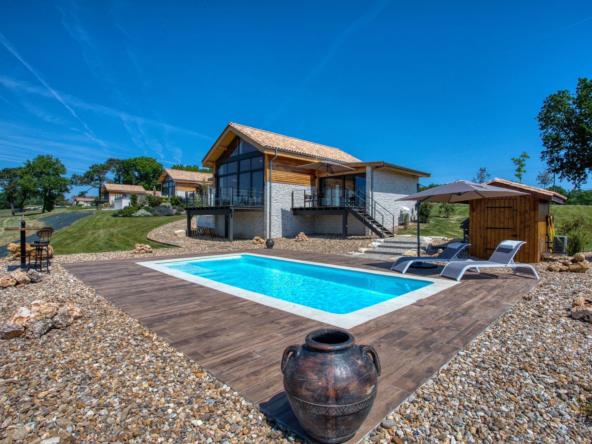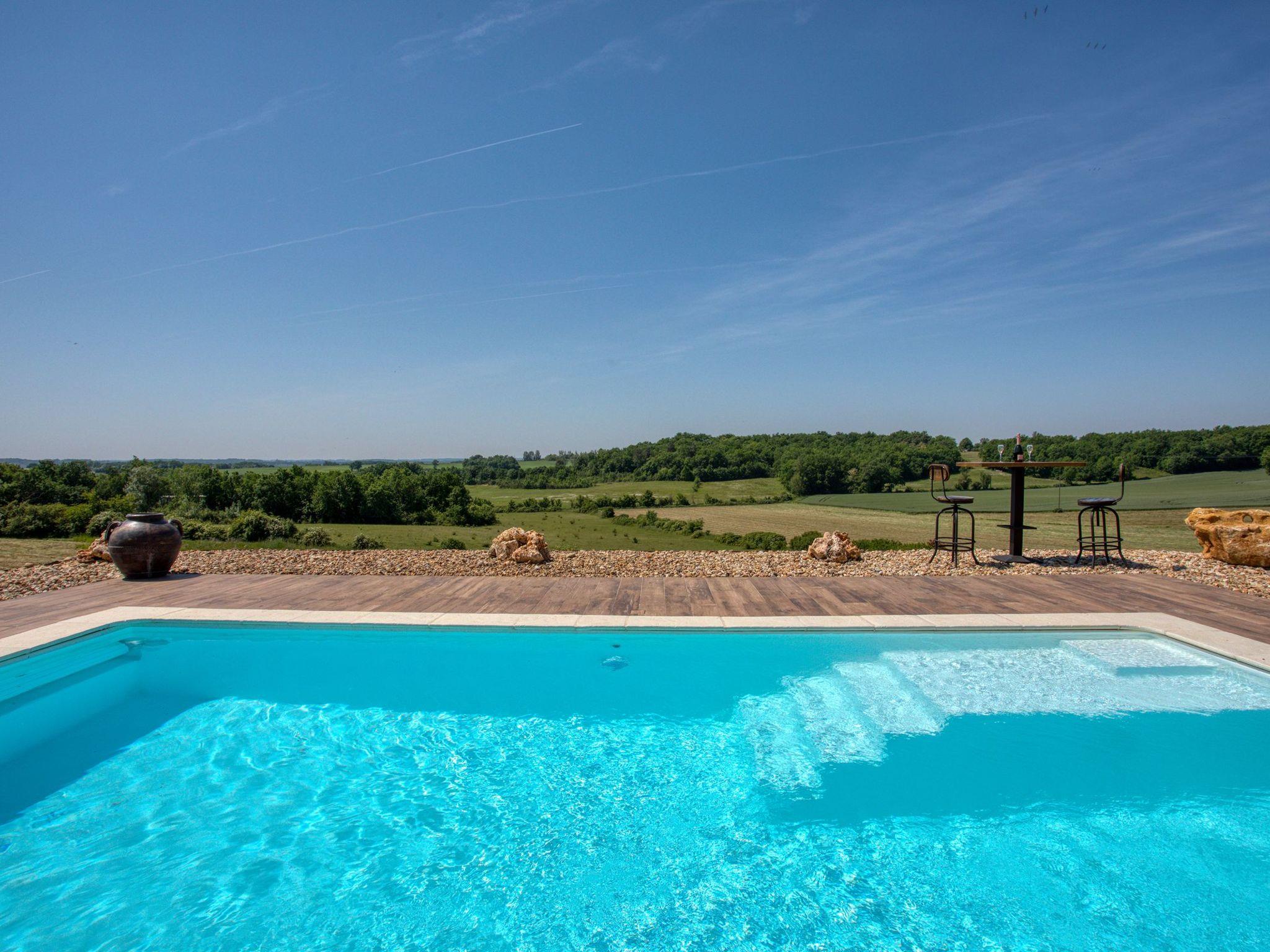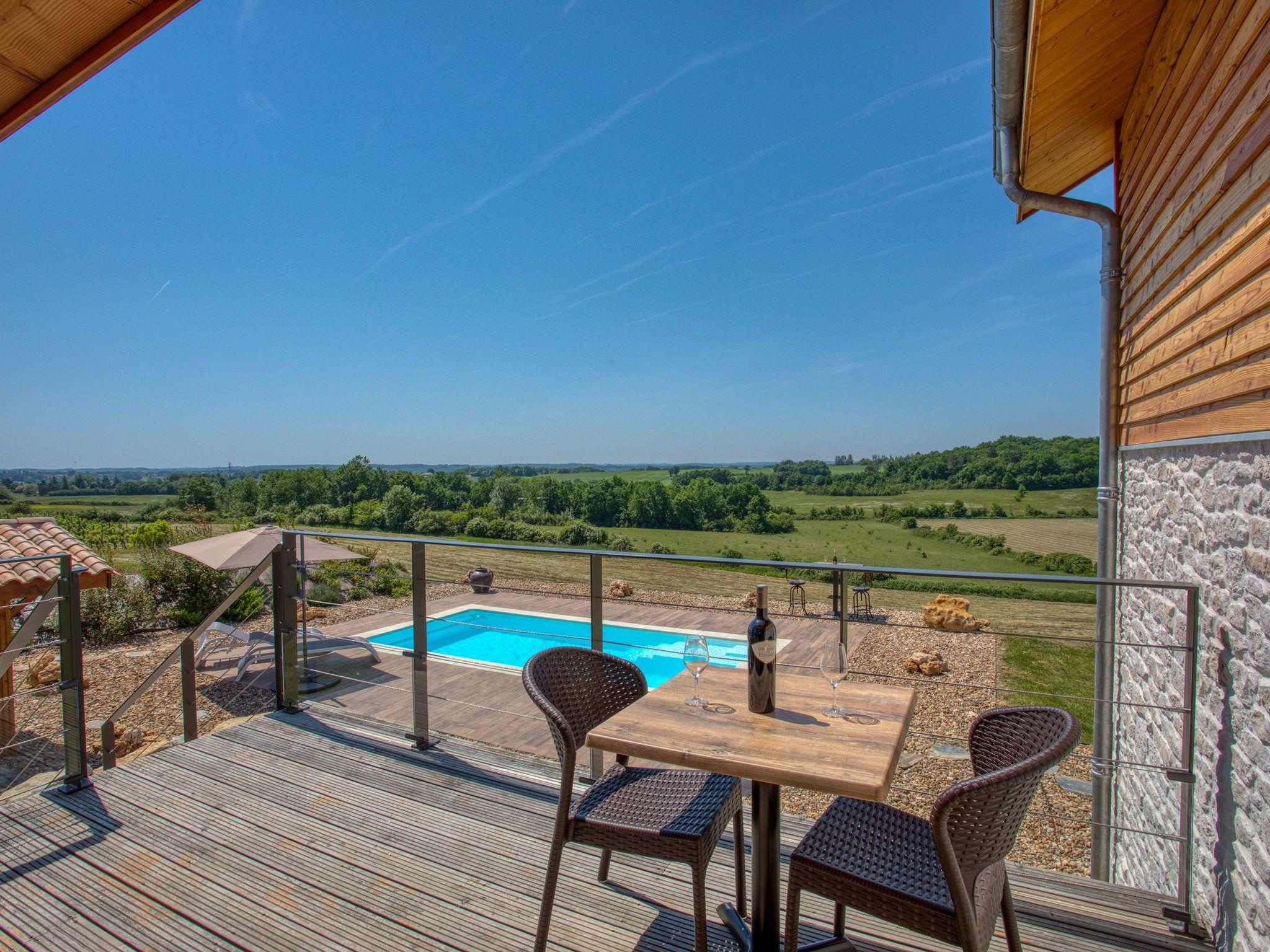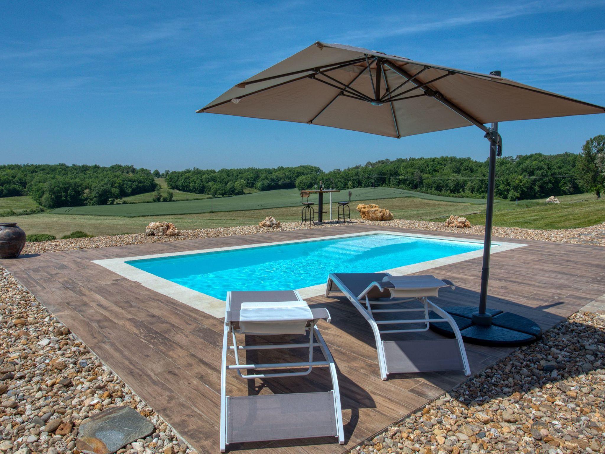 Terrace with heated pool and two sun loungersBarbecueStanding area with two seats