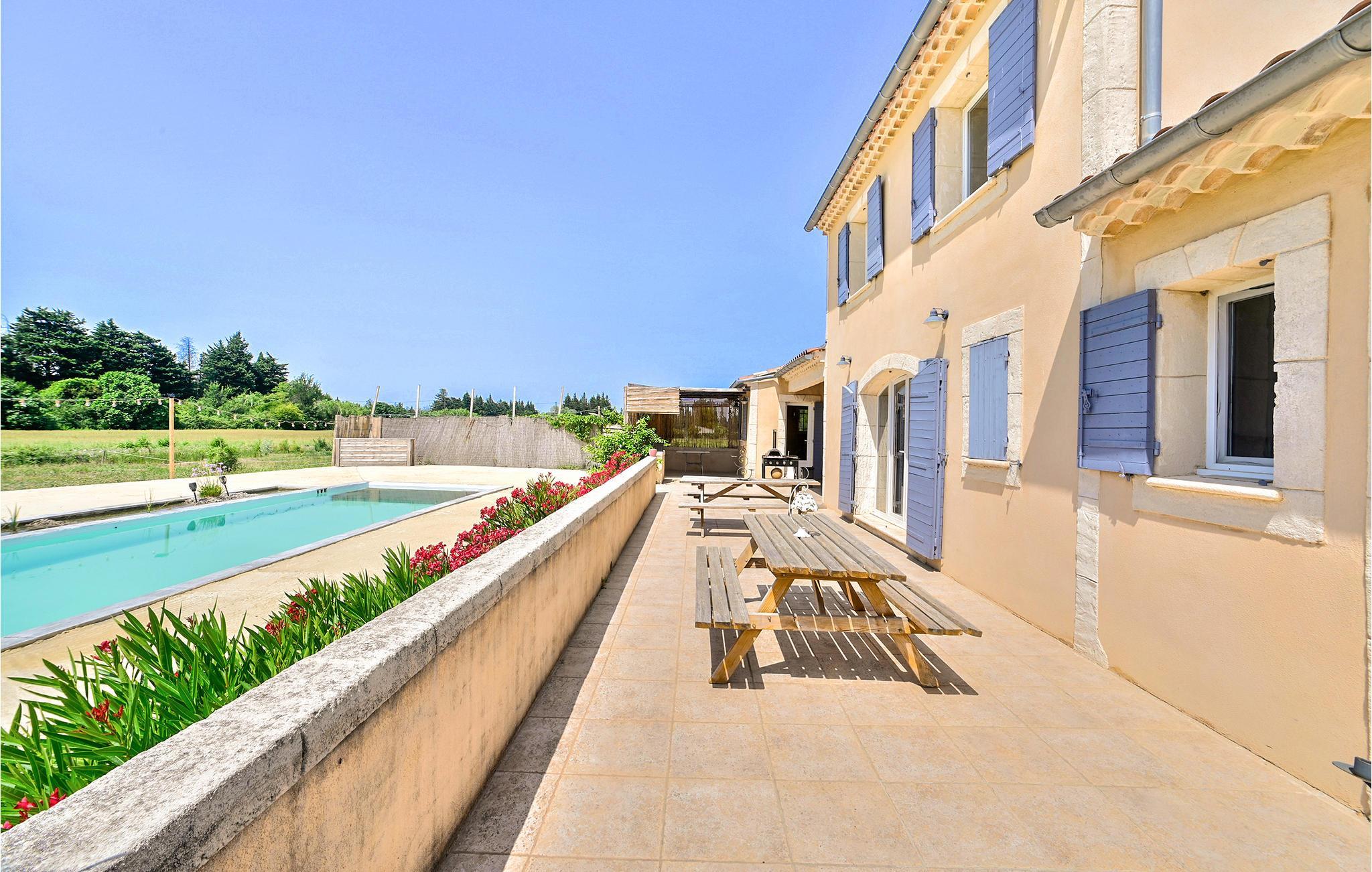Slap af fuldt ud i dette idylliske feriehus med pool. Velkommen til dette moderne og rummelige hus, hvor du vil tilbringe din ferie omgivet af natur. Lyse lokaler med hjemlig indretning og smart placerede træelementer danner rammen om samvær. Afslut dejlige ferier med et hyggeligt måltid sammen med en smuk udsigt over haven og giv dig godt til rette i den rummelige sofa og snak i lang tid. Udenfor kan du nyde solen og forfriske dig i poolen. Lad en dejlig dag slutte på terrassen med en lækker grill i det skyggefulde, overdækkede område. Besøg Saint-Paul de Mausole og det arkæologiske område Glanum, som vil tage dig tilbage til den gallo-romerske æra. Følg i Van Goghs fodspor og fortsæt din rejse til Baux de Provence, der vil glæde kunstelskere. Du kan også se klosteret Saint Michel de Frigolet. Der er utallige aktiviteter: golf, ridecenter, vandsport ved Lake Monteux og smukke vandreture i Alpilles. Der er meget at opdage i denne fortryllende region!