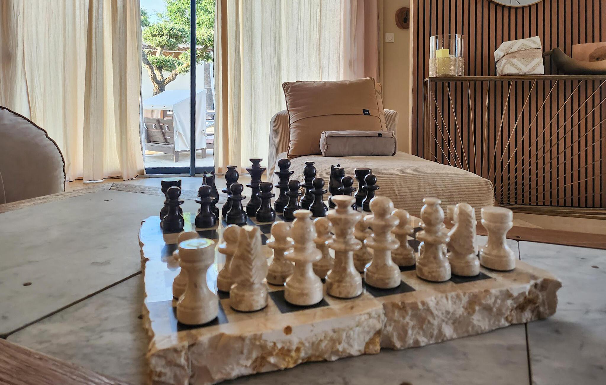 Oplev et afslappende ophold i dette moderne feriehus, som er noget særligt med sit harmoniske design og idylliske omgivelser. De generøse møbler, kombineret med den varme middelhavsatmosfære, skaber de perfekte rammer for en uforglemmelig pause. Det åbne opholdsområde er noget særligt med sine lyse, indbydende møbler. Find jer godt til rette i de hyggelige sofaer eller nyd den hyggelige varme fra brændeovnen på kølige dage. Spis sammen ved et af de stilfulde spiseborde, enten indendørs eller på den solrige terrasse, og nyd jeres ferie.