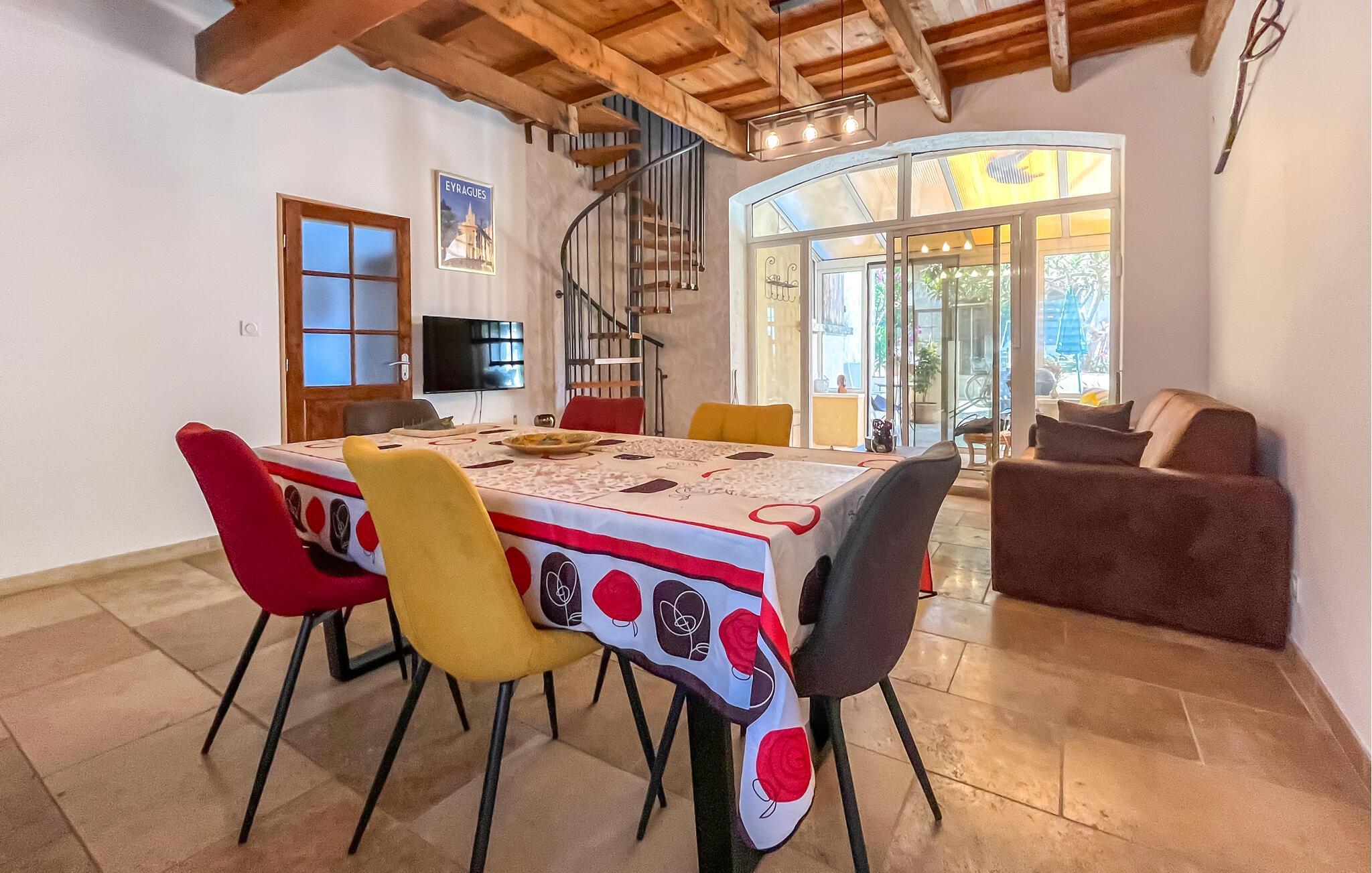 Velkommen til dette smagfuldt renoverede hjem, hvor hele familien kan sætte hverdagen på pause, mens I udforsker Provences mange charmerende seværdigheder. Fremstil lækre måltider med friske råvarer fra markedet i det åbne køkken, planlæg dagens aktiviteter ved spisebordet, og afslut en lang dag med en spilleaften eller en stimulerende samtale over et glas vin.