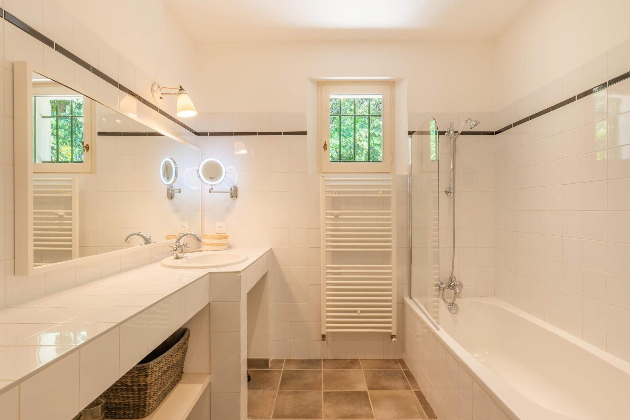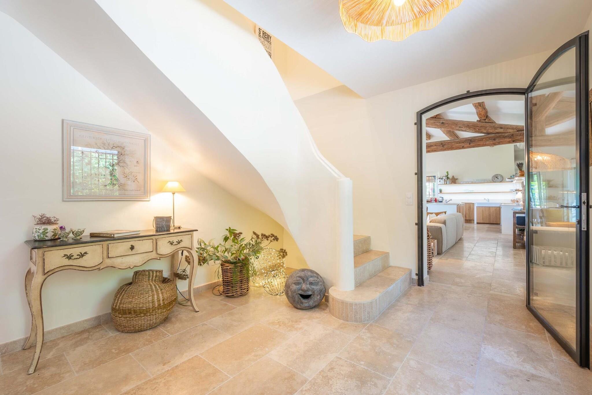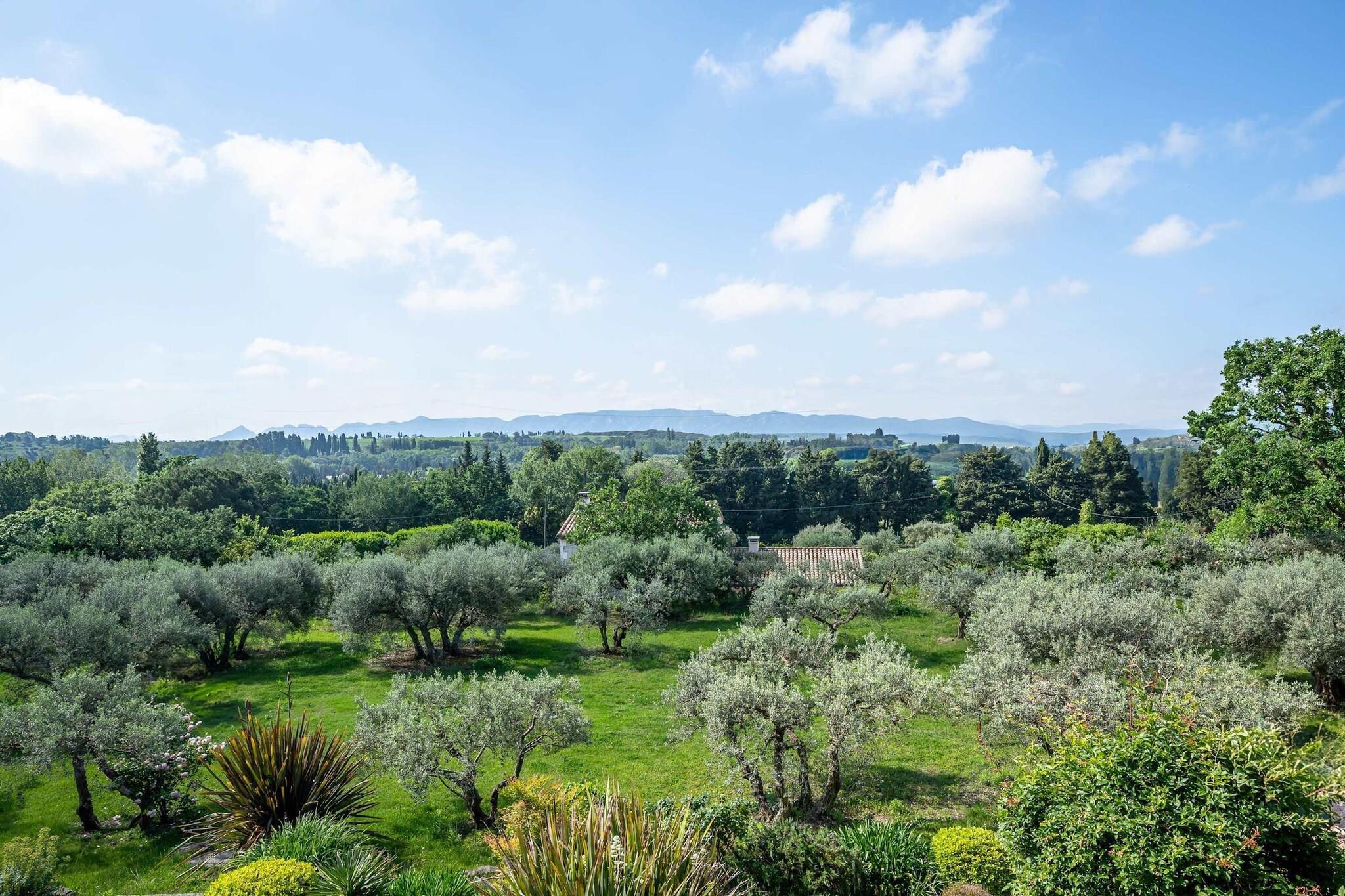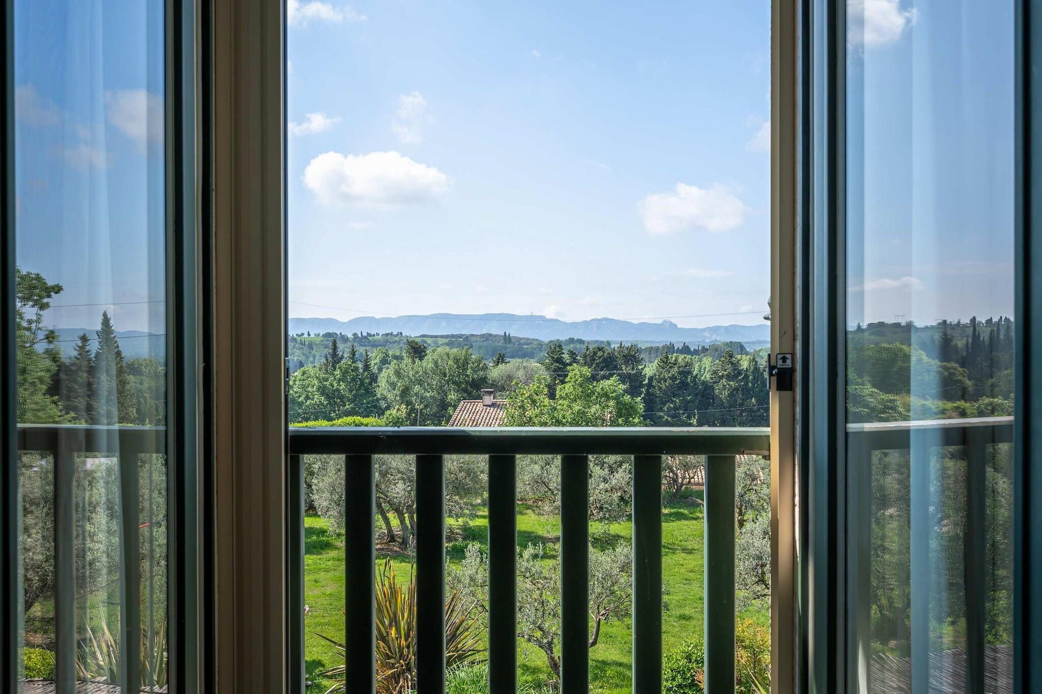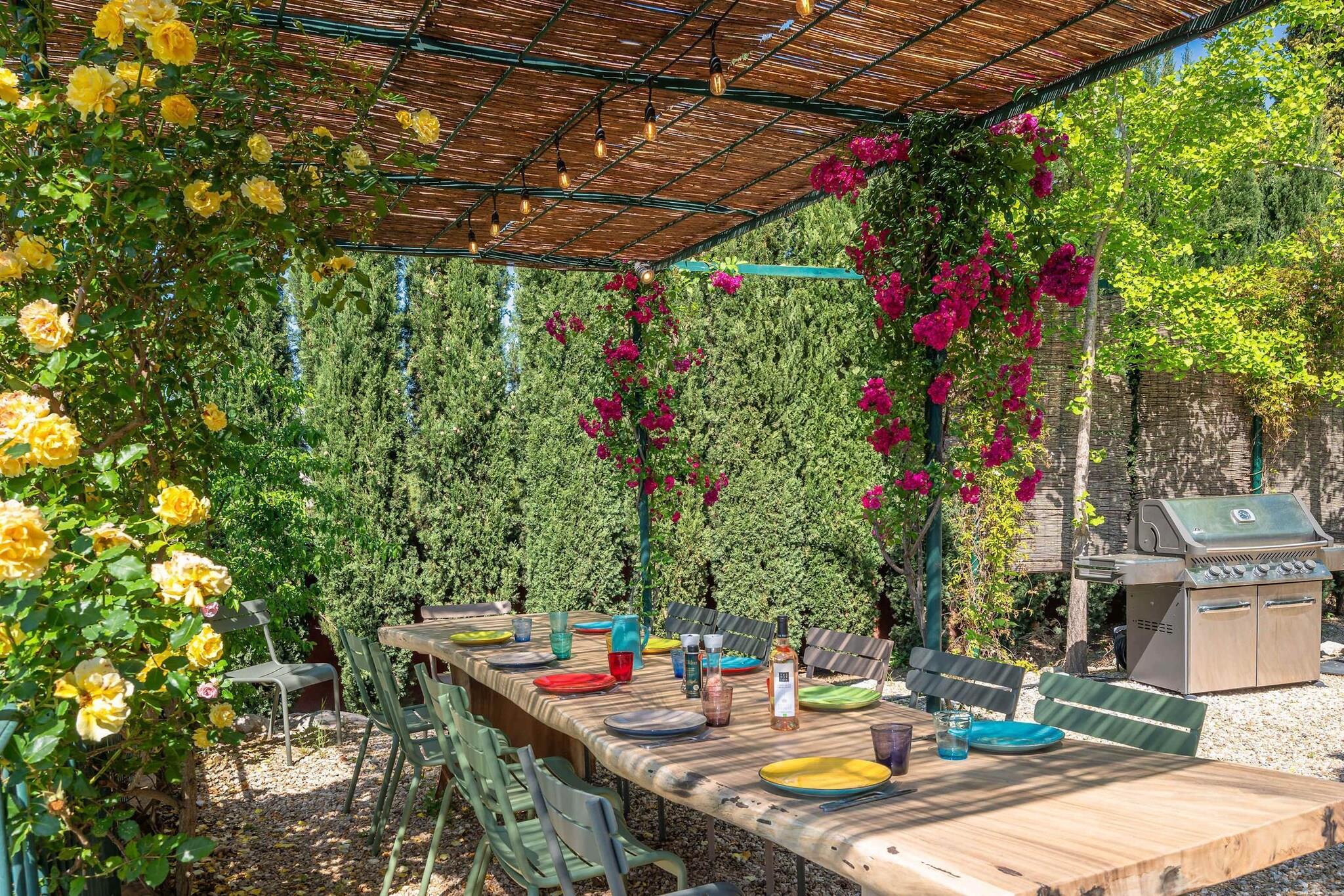 Beliggende lige uden for den lille provencalske landsby Eyragues, tilbyder denne villa den slags ro, hvor morgenerne starter langsomt, dørene åbner sig for solskin, og dagene udfolder sig naturligt. Det er en komfortabel base for en familie eller venner - et sted skabt til at hvile godt, dele måltider og udforske landskabet i et roligt tempo. De 4 soveværelser med eget badeværelse og kingsize-senge er indrettet til enkel komfort, inklusive en rummelig garderobe og rene, moderne badeværelser til at friske sig op. Der er et 5. soveværelse med en dobbeltseng og 2 babysenge for nemheds skyld. Opholdsstuen føles indbydende og møbleret til virkelig brug - et rum, hvor du kan slappe af med en bog, streame en film på tv'et eller samles om aftenen med vin og samtale. Med Wi-Fi, aircondition og varme forbliver huset behageligt i enhver sæson. Madlavning er ubesværet i det fuldt udstyrede køkken, ideelt til en let morgenmad før markedsdagen eller en lang middag derhjemme. Gå udenfor, og du finder en privat have og en møbleret terrasse, perfekt til en kop kaffe ved solopgang eller et roligt aftensmåltid udendørs. Gratis parkering på stedet gør det nemt, især hvis du udforsker nærliggende byer. Eyragues giver dig selv essensen af Provence - smalle stengader, landsbycaféer og et ugentligt marked fyldt med friske råvarer, ost, honning og farverige boder under platantræerne. Gå en stille tur, eller kør ud i Alpilles for at opleve vandrestier, vinmarker, romersk historie og byer på bakketoppe, der gløder ved solnedgang. Roligt, komfortabelt og afslappet - dette er et sted at trække vejret, sætte farten ned og nyde Provence i din egen rytme.