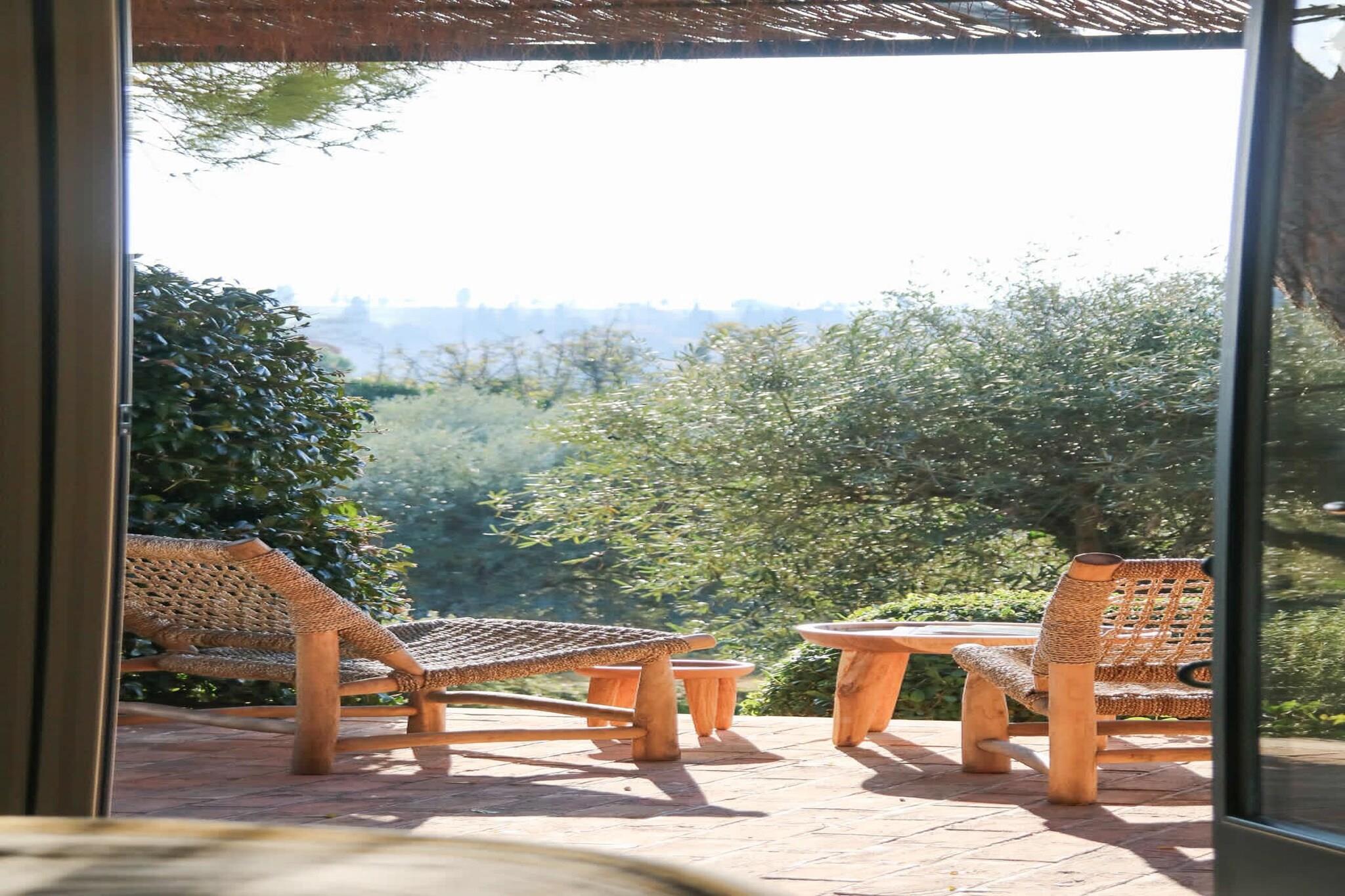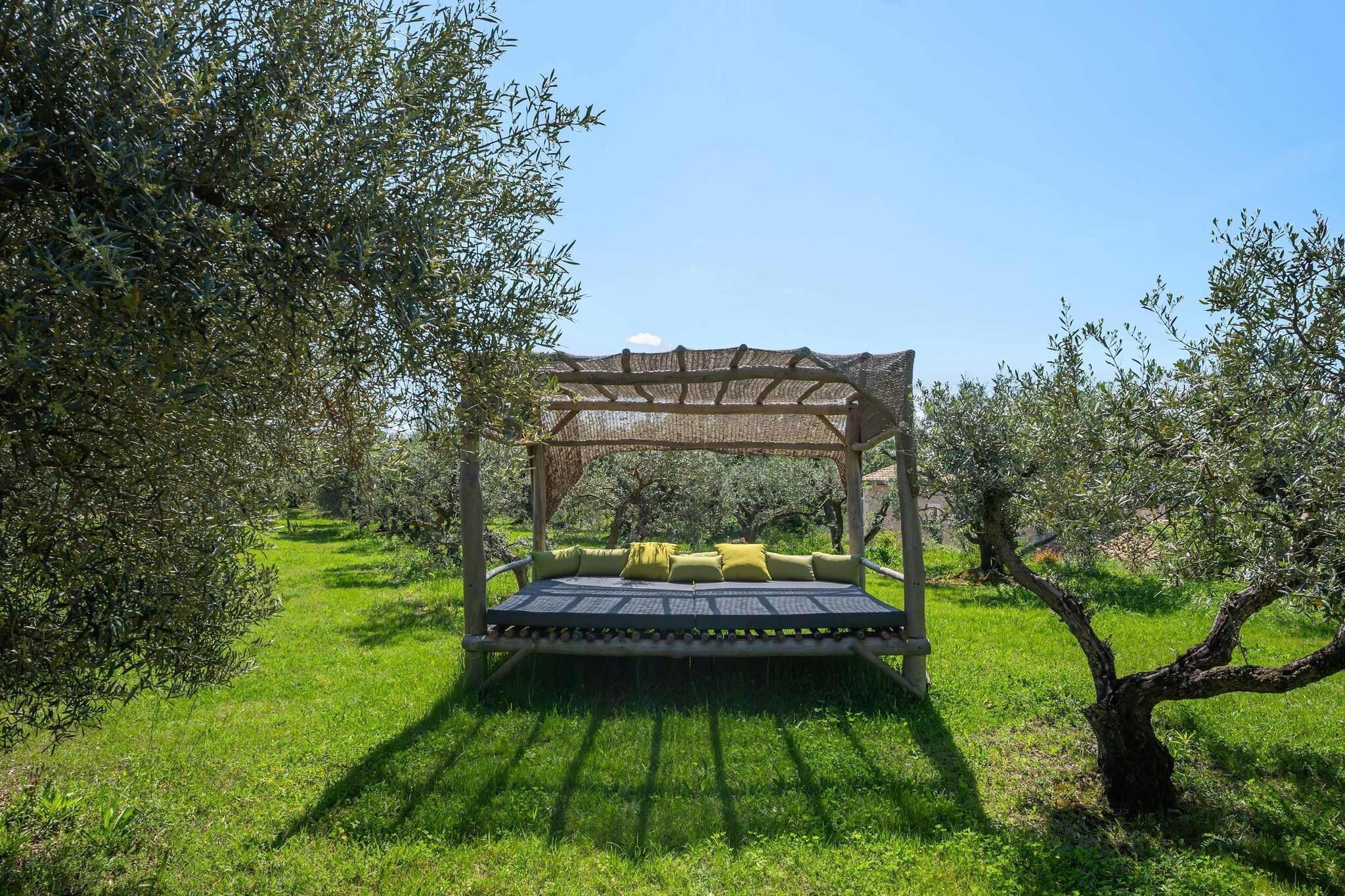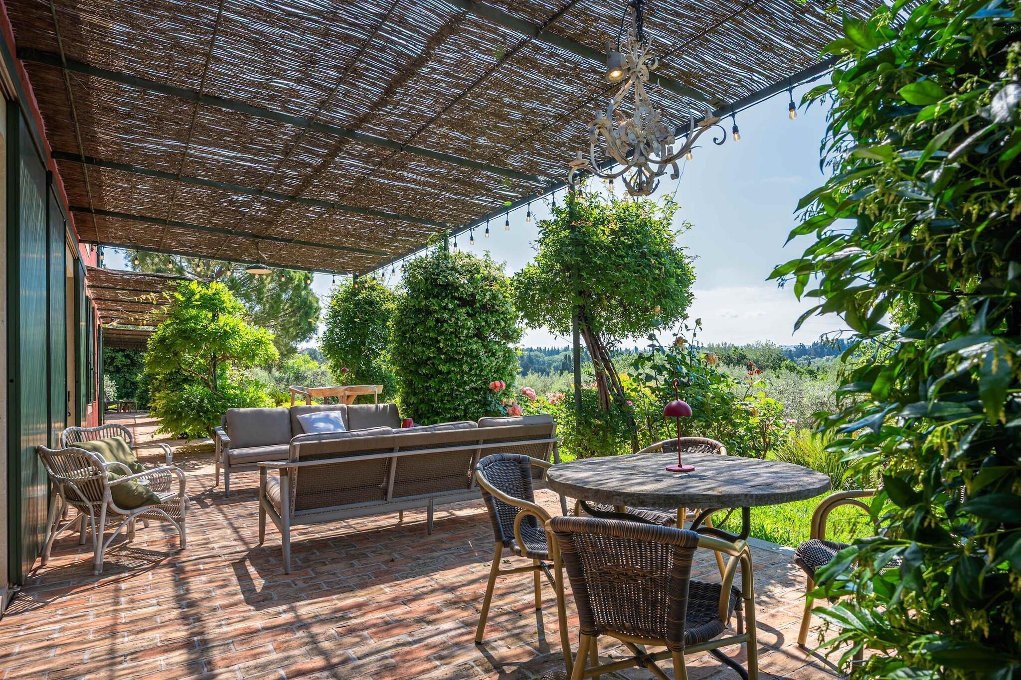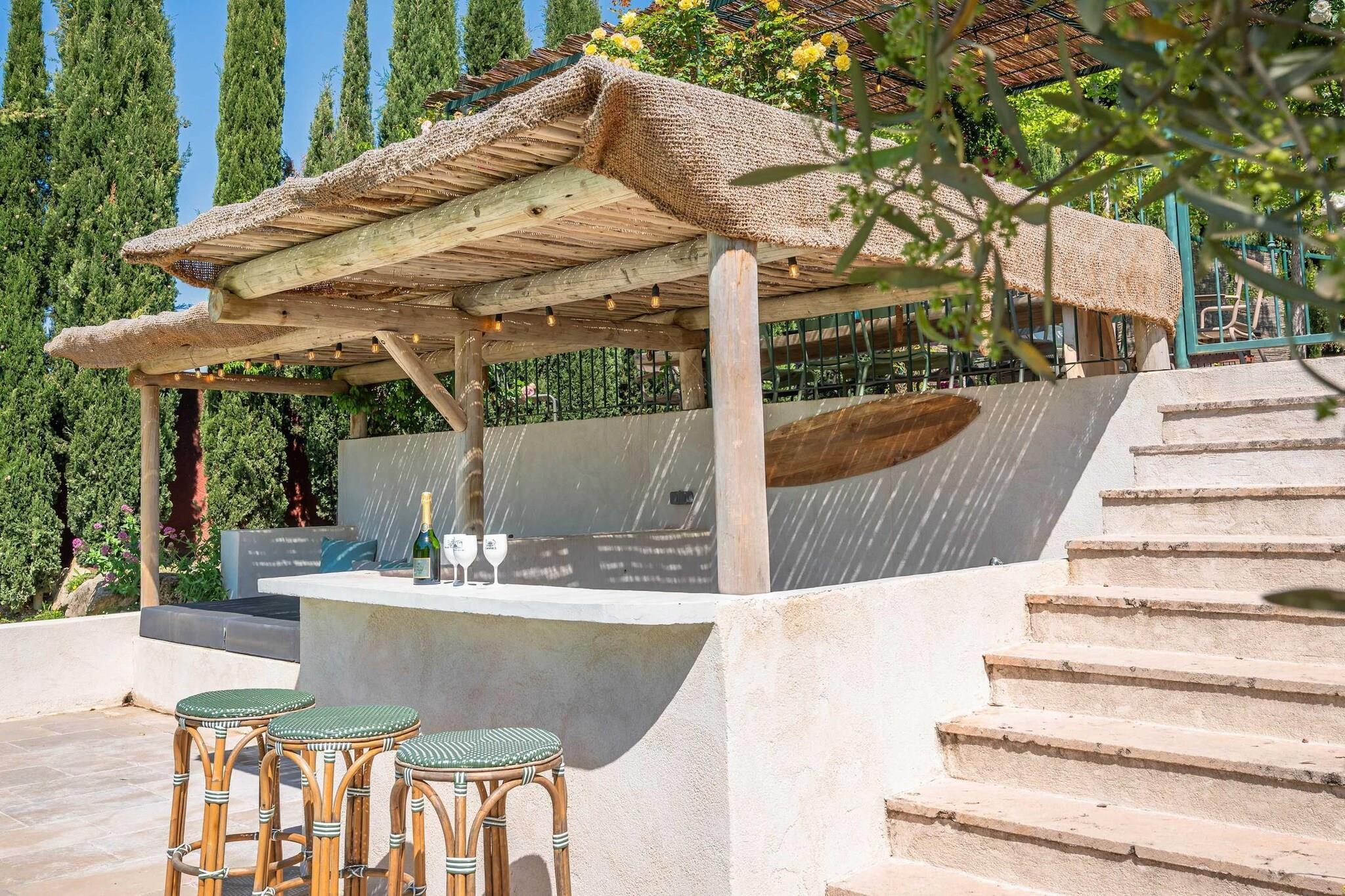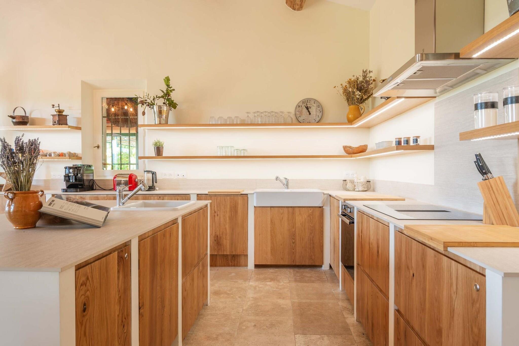 Beliggende lige uden for den lille provencalske landsby Eyragues, tilbyder denne villa den slags ro, hvor morgenerne starter langsomt, dørene åbner sig for solskin, og dagene udfolder sig naturligt. Det er en komfortabel base for en familie eller venner - et sted skabt til at hvile godt, dele måltider og udforske landskabet i et roligt tempo. De 4 soveværelser med eget badeværelse og kingsize-senge er indrettet til enkel komfort, inklusive en rummelig garderobe og rene, moderne badeværelser til at friske sig op. Der er et 5. soveværelse med en dobbeltseng og 2 babysenge for nemheds skyld. Opholdsstuen føles indbydende og møbleret til virkelig brug - et rum, hvor du kan slappe af med en bog, streame en film på tv'et eller samles om aftenen med vin og samtale. Med Wi-Fi, aircondition og varme forbliver huset behageligt i enhver sæson. Madlavning er ubesværet i det fuldt udstyrede køkken, ideelt til en let morgenmad før markedsdagen eller en lang middag derhjemme. Gå udenfor, og du finder en privat have og en møbleret terrasse, perfekt til en kop kaffe ved solopgang eller et roligt aftensmåltid udendørs. Gratis parkering på stedet gør det nemt, især hvis du udforsker nærliggende byer. Eyragues giver dig selv essensen af Provence - smalle stengader, landsbycaféer og et ugentligt marked fyldt med friske råvarer, ost, honning og farverige boder under platantræerne. Gå en stille tur, eller kør ud i Alpilles for at opleve vandrestier, vinmarker, romersk historie og byer på bakketoppe, der gløder ved solnedgang. Roligt, komfortabelt og afslappet - dette er et sted at trække vejret, sætte farten ned og nyde Provence i din egen rytme.