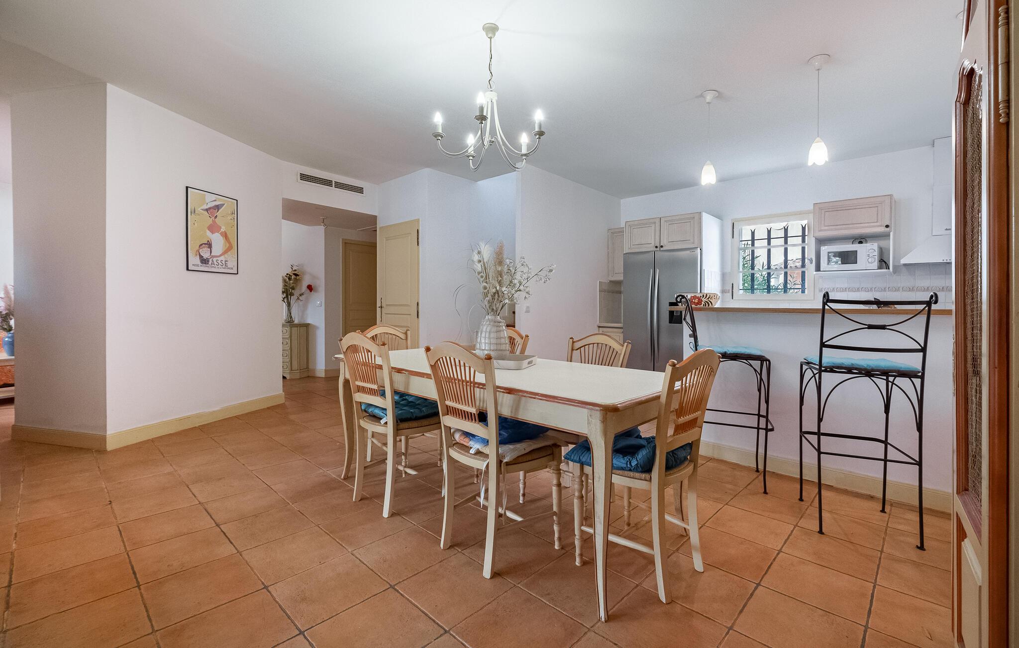 Velkommen til denne charmerende ferieoase i hjertet af Provence, som vil glæde jer med traditionel charme og generøst boligareal. Eksperimenter med urter fra Provence i det moderne landhuskøkken og nyd måltiderne sammen ved det indbydende spisebord. Find jer godt til rette i sofaerne og hel jer til en spilleaften med familien.