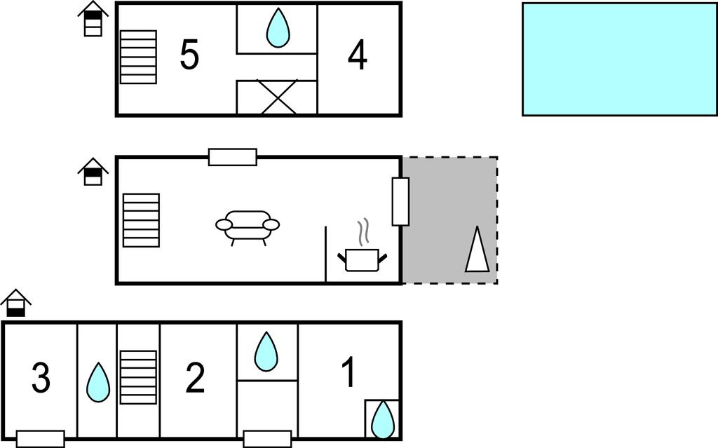 Badeværelse 5m2 (nr. 3) - WC. Varmt og koldt vand. Bruser