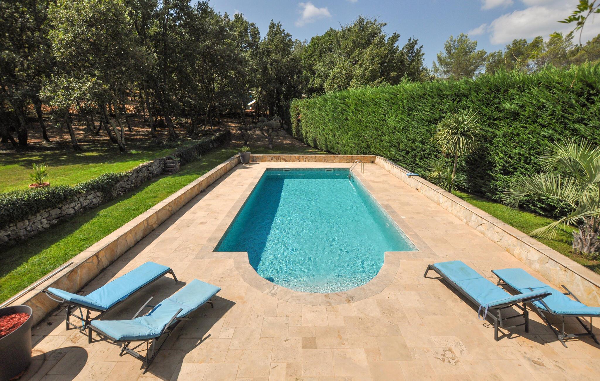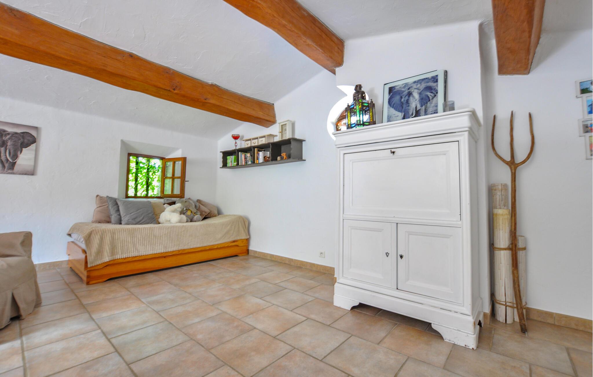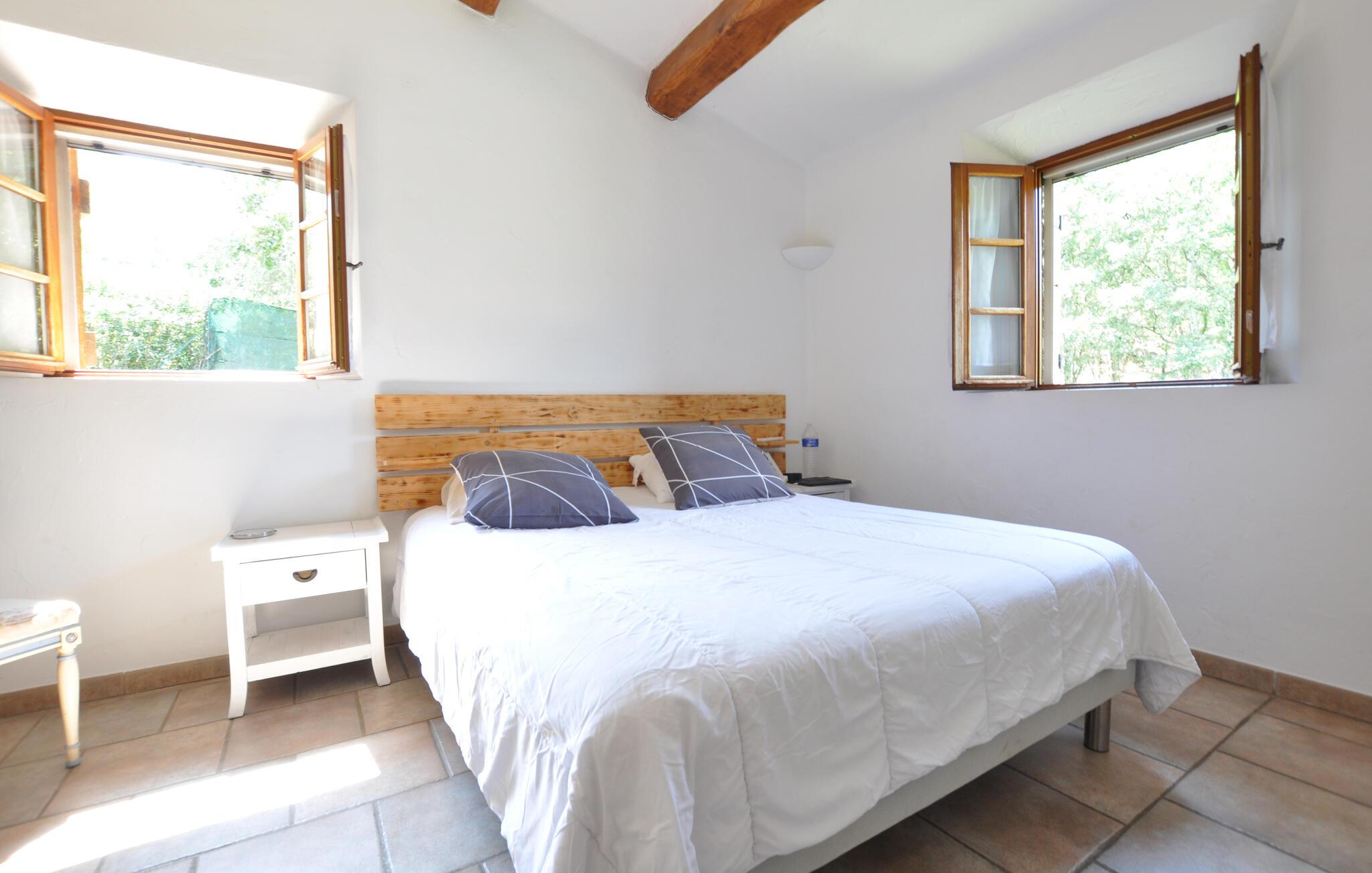 Dette traditionelle stenhus i Fayence, omgivet af natur og ro, byder jer velkommen med en stor have, hvor I kan køle jer af i den private pool eller slappe af på de komfortable liggestole. Benyt den hyggelige overdækkede terrasse til en social grillmiddag, og nyd de lune sommeraftener med udsigt til det smukt anlagte udendørsområde.