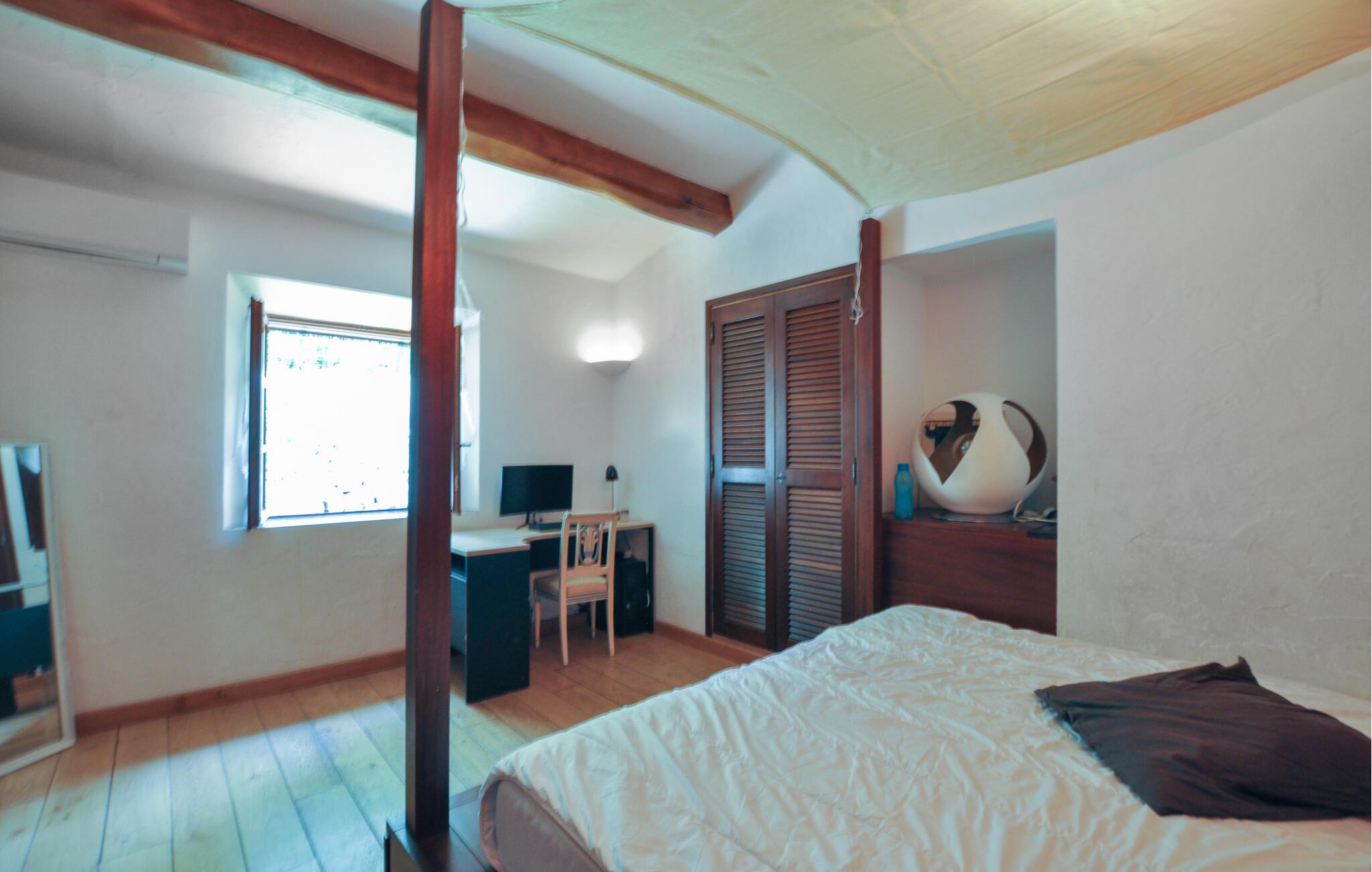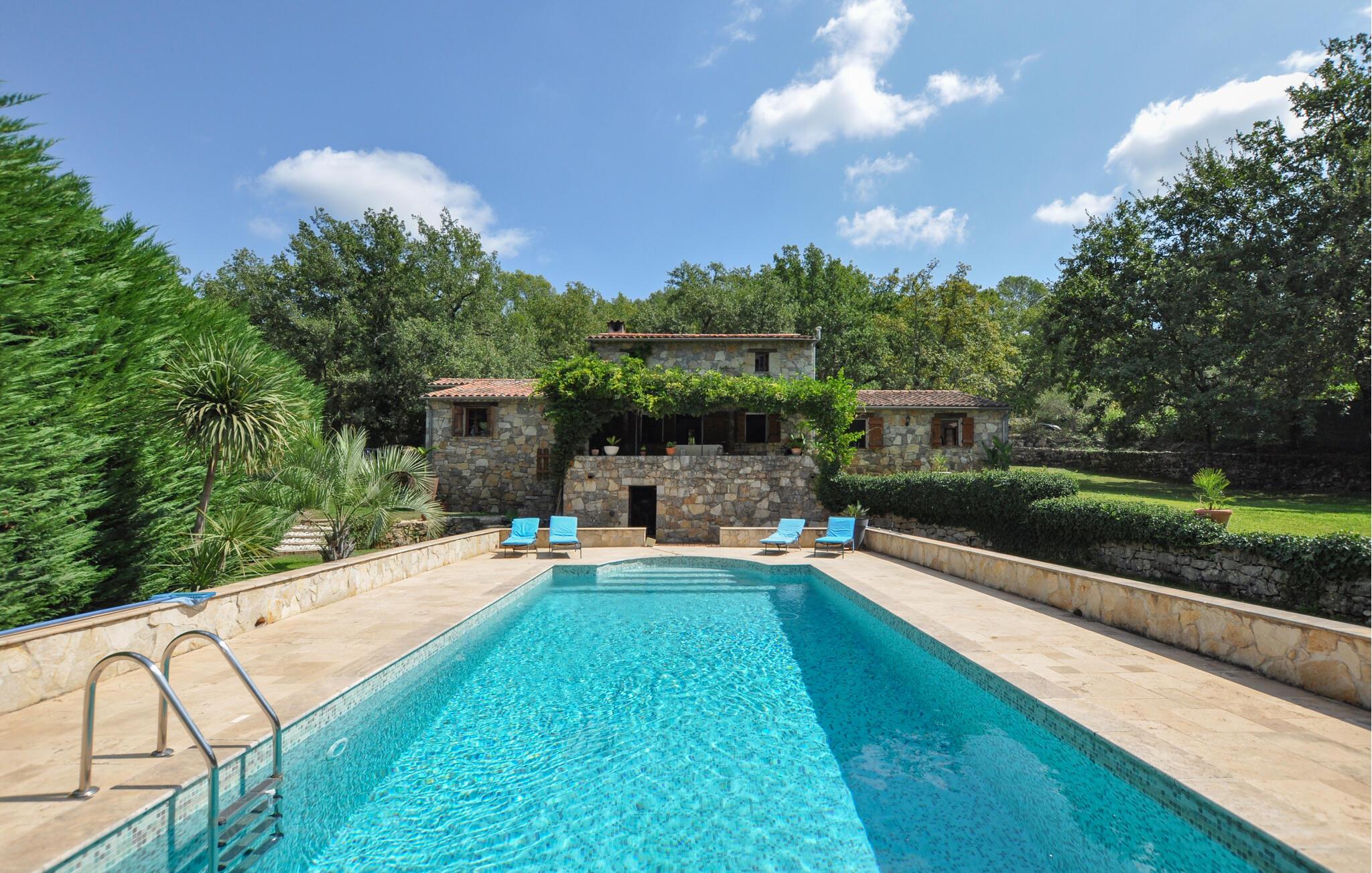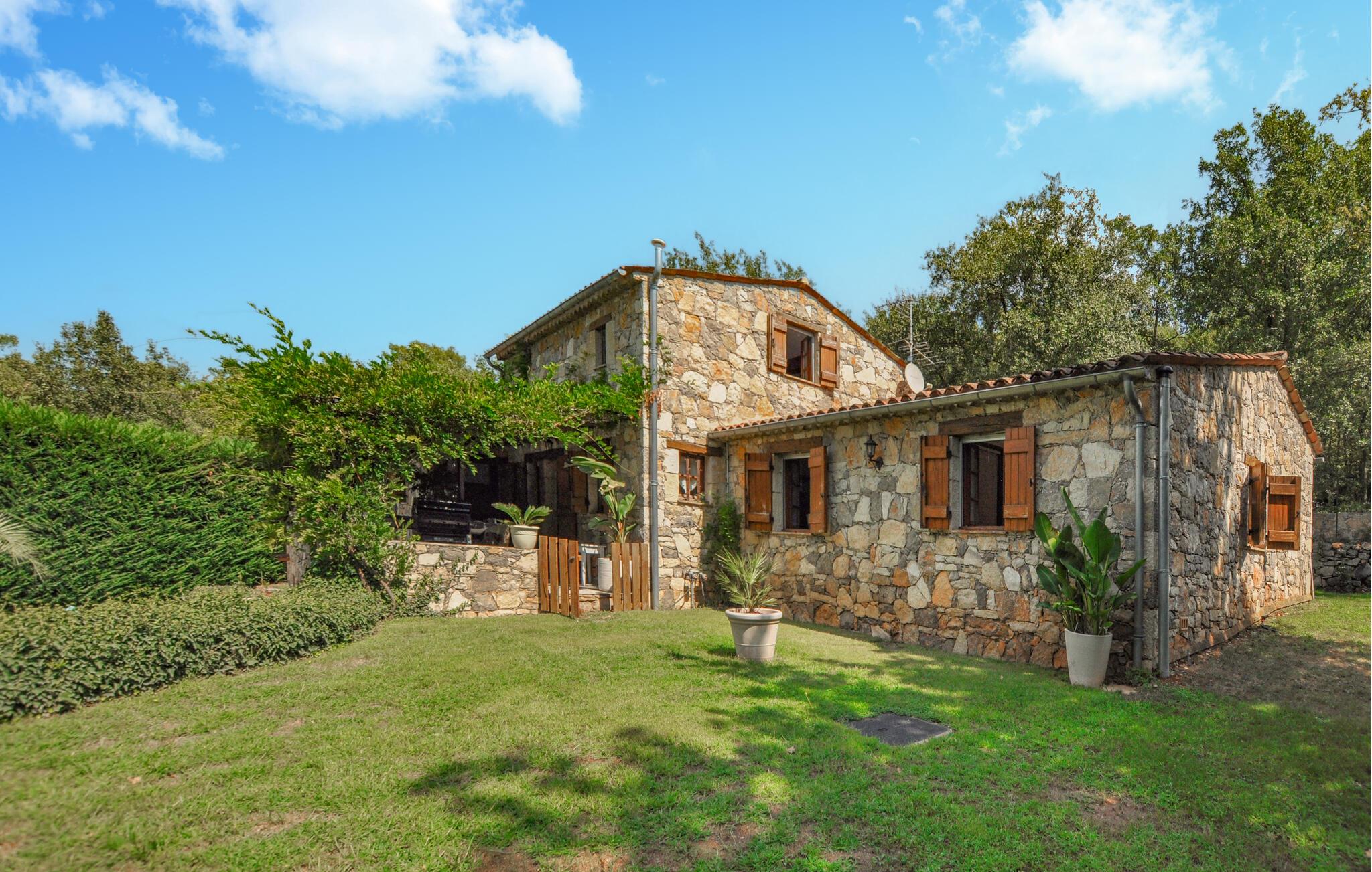 Dette traditionelle stenhus i Fayence, omgivet af natur og ro, byder jer velkommen med en stor have, hvor I kan køle jer af i den private pool eller slappe af på de komfortable liggestole. Benyt den hyggelige overdækkede terrasse til en social grillmiddag, og nyd de lune sommeraftener med udsigt til det smukt anlagte udendørsområde.
