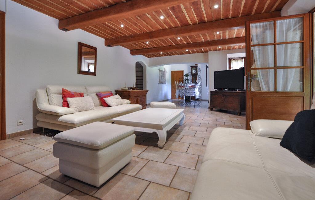 Inde i huset venter hyggelige opholdsrum med komfortable sofaer, perfekte til afslappende stunder efter en dag med opdagelser i området. Her finder alle et dejligt sted at slå sig ned. De rustikke træbjælker giver stuen en varm atmosfære. I det flotte køkken kan I om morgenen tilberede en lækker, fransk morgenmad og servere den ved spisebordet. For dem, der ønsker at holde sig aktive, er der et moderne fitnessrum i huset. I kan også nyde et spil bordtennis udendørs eller arrangere en petanque-turnering på jeres egen petanque-bane.