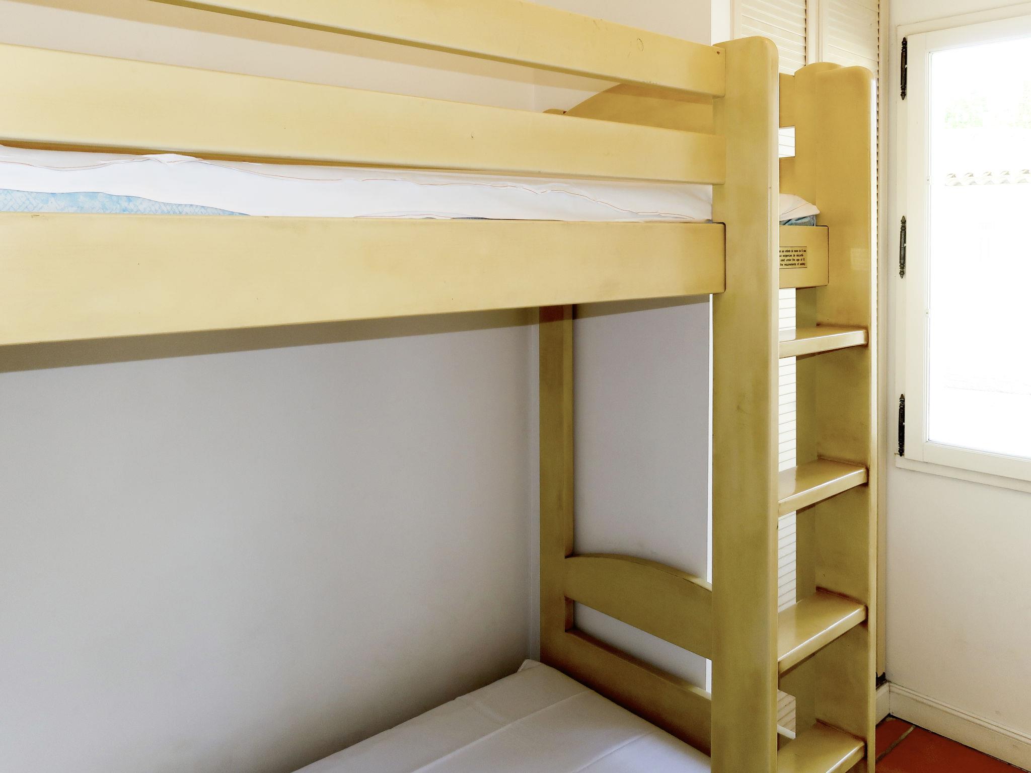 "Domaine de Fayence M810X", 4-room terraced house 87 m2 on 2 levels. Object suitable for 8 adults + 2 children. Practical and tasteful furnishings: living/sleeping room with 1 double sofabed, dining table and satellite TV. Exit to the terrace. Alcove with 1 x 2 bunk beds (length 170 cm). Kitchenette (oven, dishwasher, 2 ceramic glass hob hotplates, microwave, freezer). Sep. WC. Upper floor: 1 room with 1 french bed and bath/WC. 1 room with 1 french bed. 1 room with 2 beds. Shower, sep. WC. Heating, air-conditioning. Terrace, patio. Terrace furniture. Facilities: safe, children's high chair, baby cot (extra). Internet (WiFi, extra). Maximum 2 pets/ dogs allowed. Instead of an enclosed bedroom, some sleeping areas are located in an open-plan area (gallery, alcove, etc.).