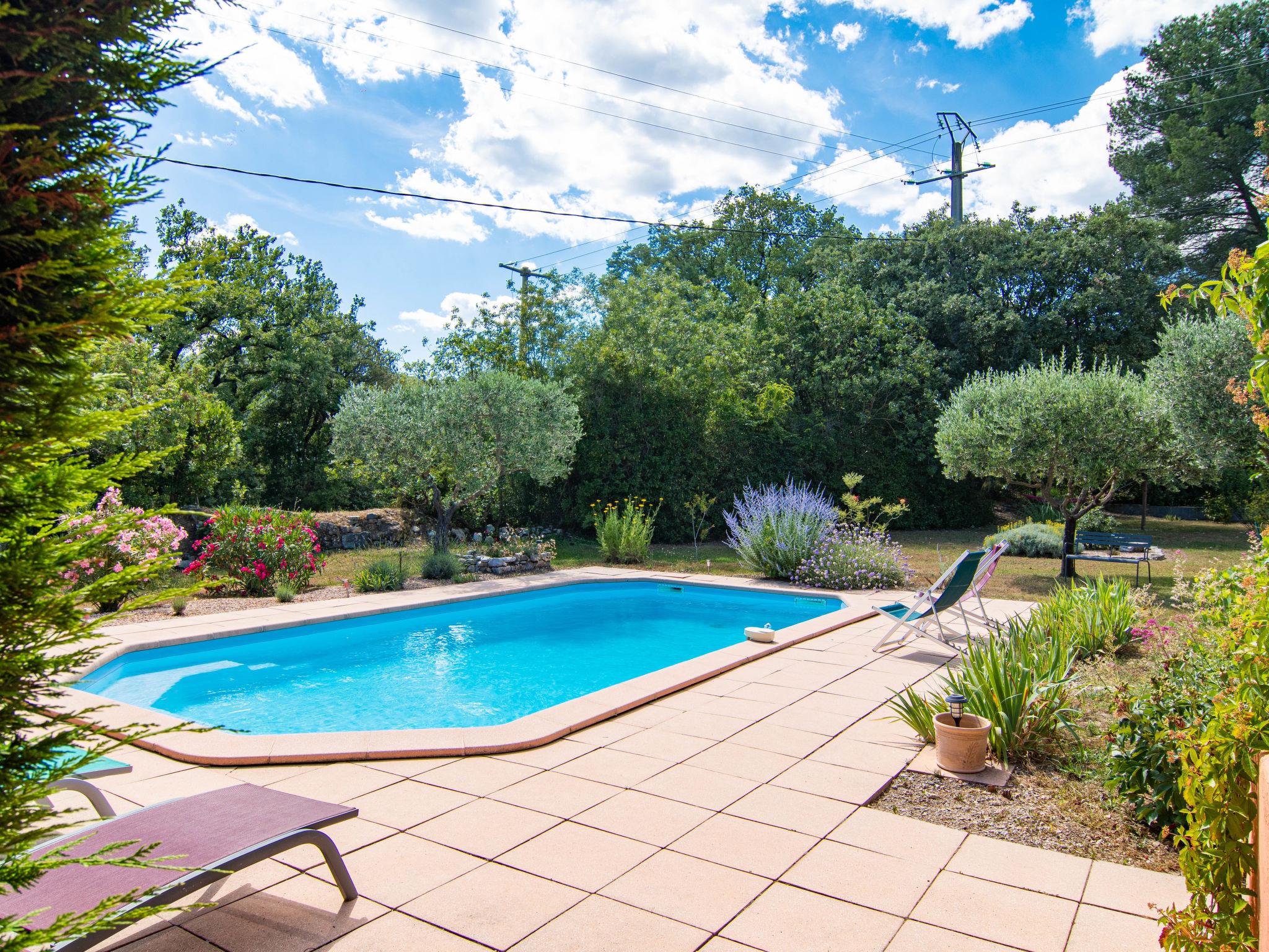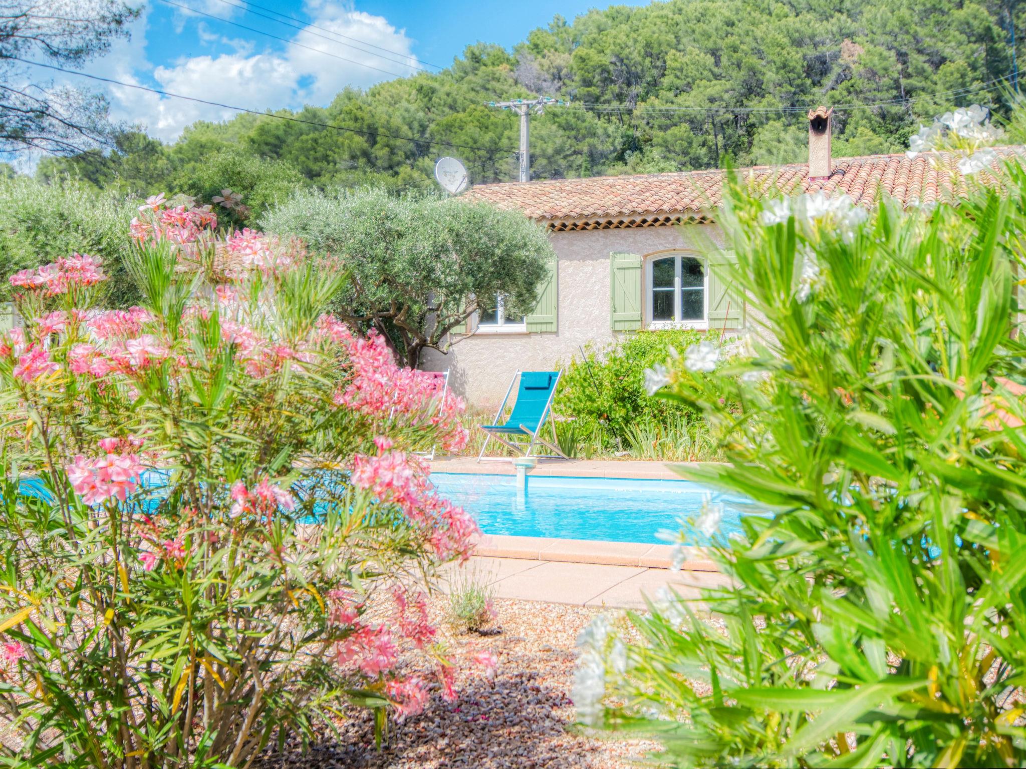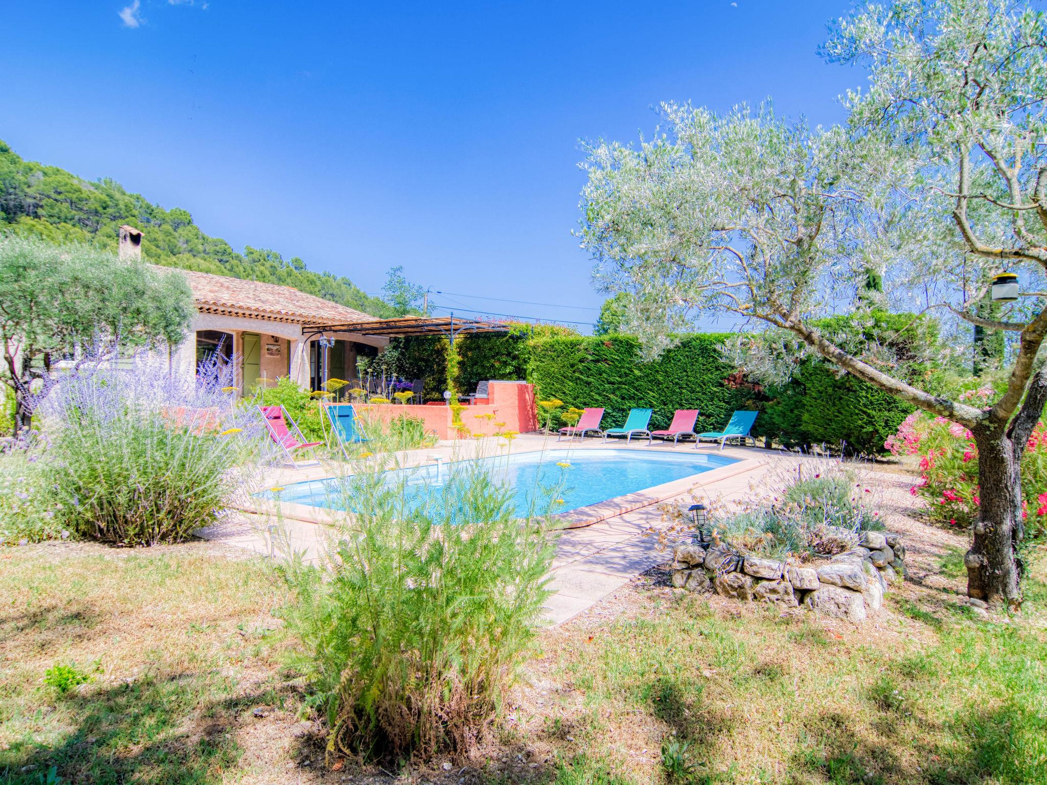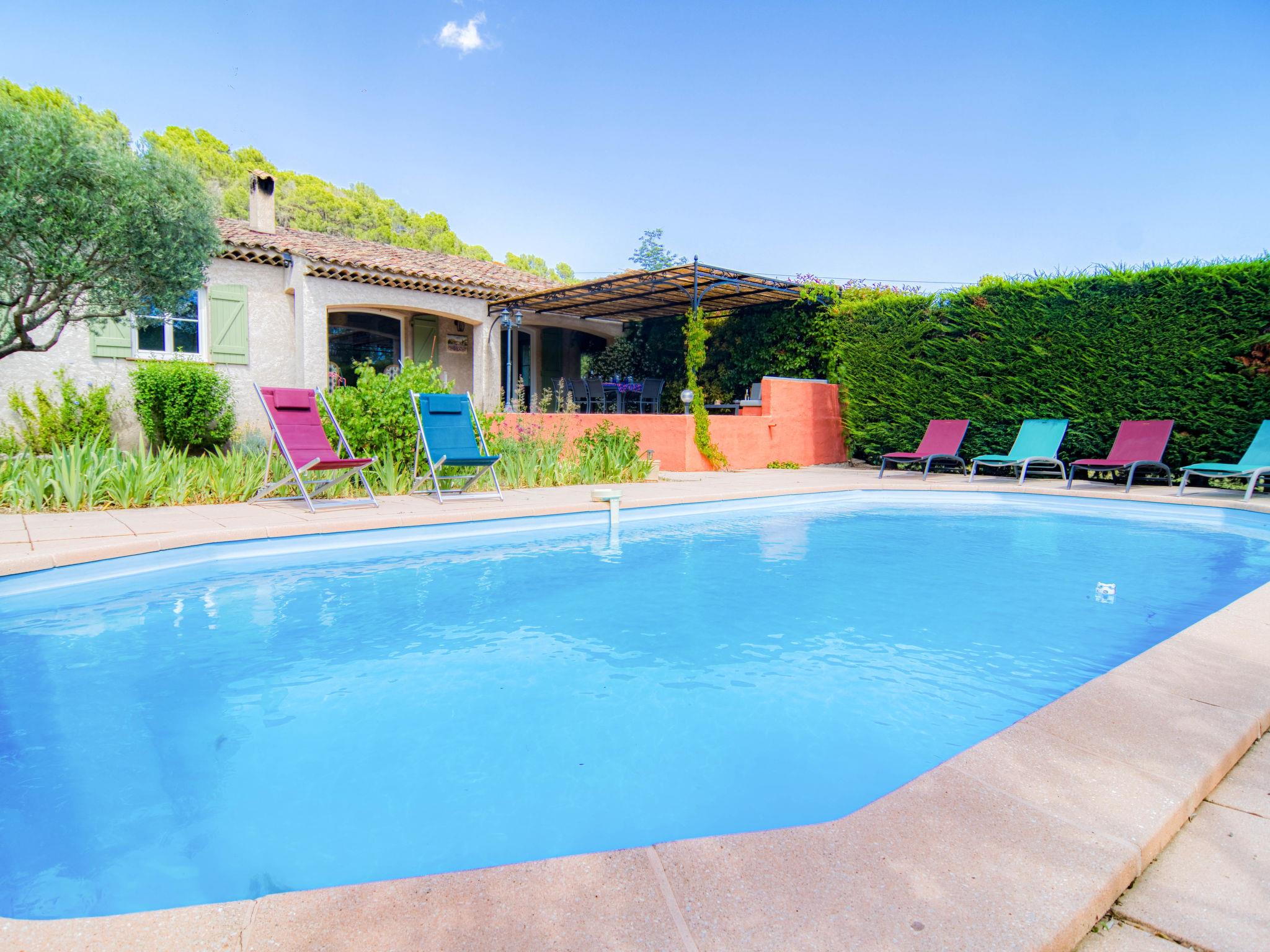 Single-family house. 2 km from the centre of Figanières, 8 km from the centre of Draguignan, 28 km from the centre of Fayence, in the residential district. Private: well-kept garden 3'900 m2, swimming pool (8 x 4 m, depth 70 - 180 cm, seasonal availability: 01.Jan. - 31.Dec.) with alarm system. Roofed, parking. Grocery 2 km, restaurant 2 km, bar 2 km, bakery 850 m, café 2 km, bus stop 6 km, railway station "Les Arcs Draguignan" 20 km, sandy beach "Fréjus" 38 km. Golf course (18 hole) 17 km. Nearby attractions: Gorges du Verdon, Gorges du Blavet, Tourtour. Well-known lakes can easily be reached: Sainte Croix 48 km, Saint Cassien 43 km. Please note: car recommended. The owner does not accept any youth groups.