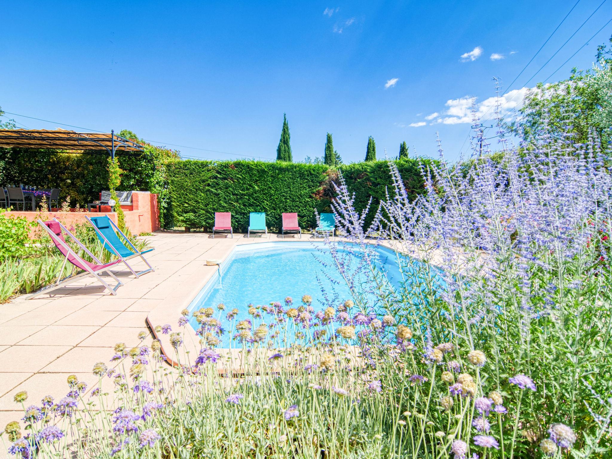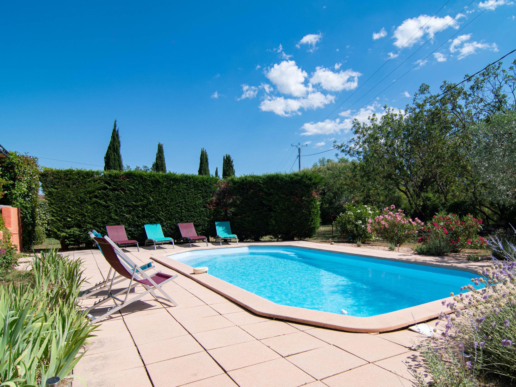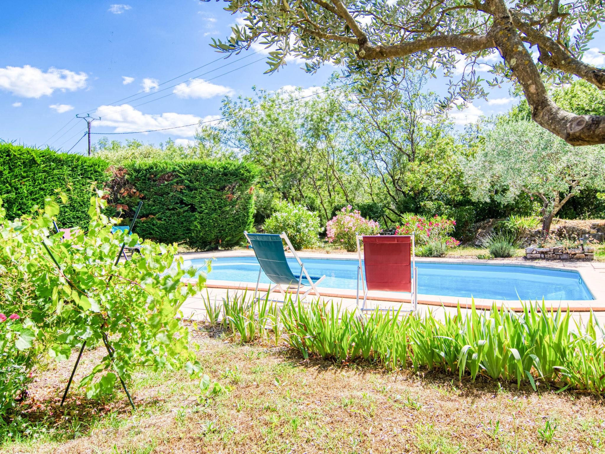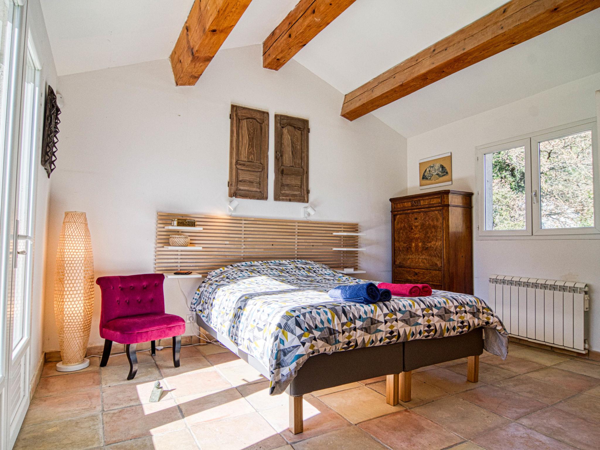 Single-family house. 2 km from the centre of Figanières, 8 km from the centre of Draguignan, 28 km from the centre of Fayence, in the residential district. Private: well-kept garden 3'900 m2, swimming pool (8 x 4 m, depth 70 - 180 cm, seasonal availability: 01.Jan. - 31.Dec.) with alarm system. Roofed, parking. Grocery 2 km, restaurant 2 km, bar 2 km, bakery 850 m, café 2 km, bus stop 6 km, railway station "Les Arcs Draguignan" 20 km, sandy beach "Fréjus" 38 km. Golf course (18 hole) 17 km. Nearby attractions: Gorges du Verdon, Gorges du Blavet, Tourtour. Well-known lakes can easily be reached: Sainte Croix 48 km, Saint Cassien 43 km. Please note: car recommended. The owner does not accept any youth groups.