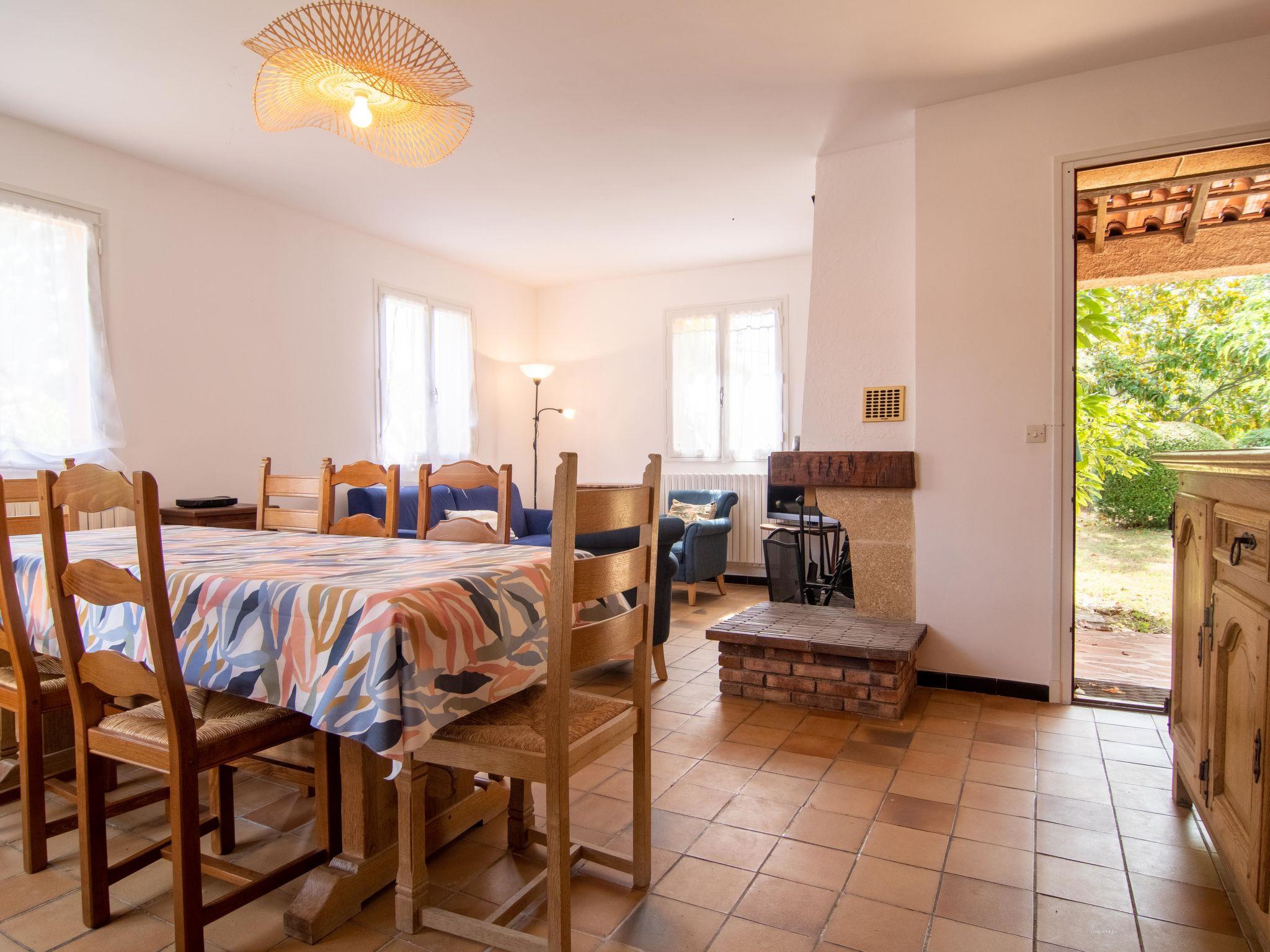 "L'Agapanthe", 4-room house 85 m2. Simple furnishings: living/dining room with open-hearth fireplace, dining table and TV (flat screen). Exit to the garden, to the terrace. 1 room with 2 beds (90 cm, length 190 cm). 1 room with 2 beds (80 cm, length 190 cm). 1 room with 2 beds (90 cm, length 190 cm), shower/WC. Exit to the garden. Kitchen (4 hot plates, oven, dishwasher, toaster, microwave, electric coffee machine) with dining nook. Exit to the terrace. Bathroom, sep. WC. Electric heating. 2 terraces. Terrace furniture, barbecue, deck chairs (6). Facilities: washing machine, iron. Internet (WiFi, free). Please note: one double bedroom is outside the apartment. Non-smoking house. Maximum 1 pet/ dog allowed. Smoke alarm. Offer by a private individual according to Art. 155, IV of CGI.