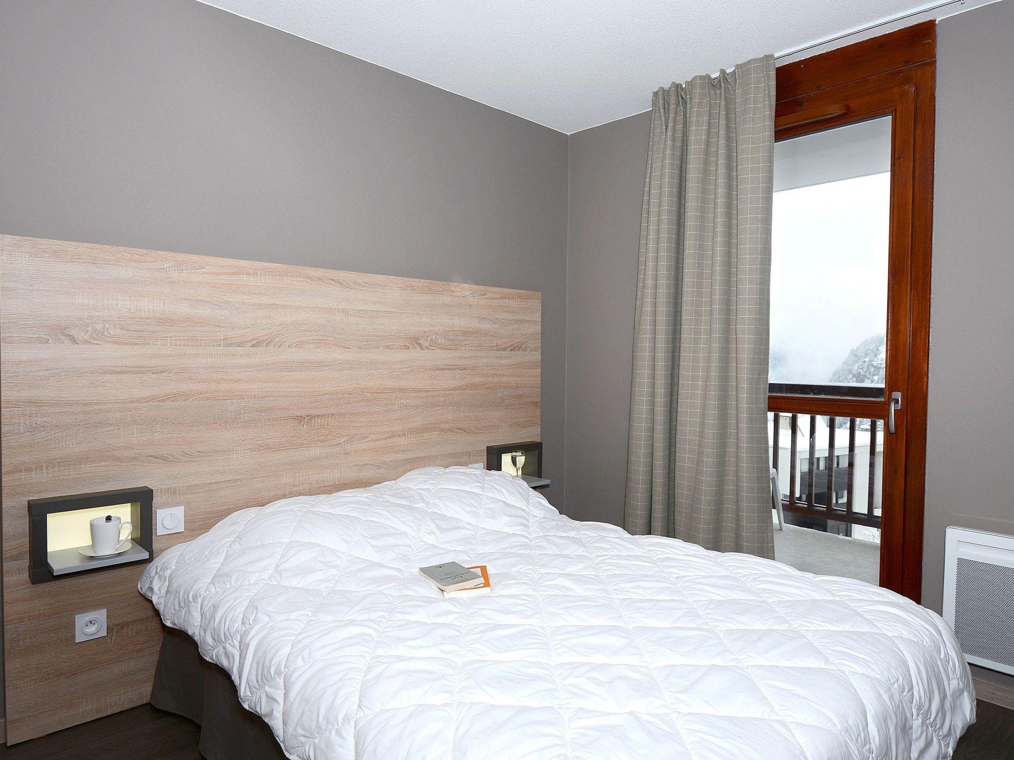 "Résidence Odalys Référence Le Panoramic", 2-room apartment 34 m2. Modern and stylish furnishings: living/sleeping room with 2 sleeping facilities, dining table and TV. Exit to the balcony. 1 room with 1 french bed. Small, open kitchen (dishwasher, 2 ceramic glass hob hotplates, toaster, kettle, microwave, electric coffee machine). Bath/WC or shower/WC. Electric heating. Balcony. Facilities: Internet (WiFi, free). Parking (roofed, 1 car). Maximum 1 pet/ dog allowed.