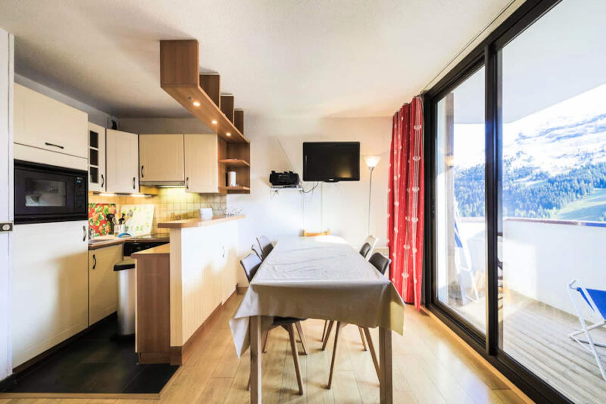 I de rolige omgivelser i Flaine Forêt tilbyder denne charmerende 3-værelses lejlighed i Pégase-residensen en perfekt blanding af ro og bekvemmelighed til din alpine ferie. Kun 100 meter fra Flaine Forêt-indkøbscentret har du nem adgang til et købmandsforretning og essentielle faciliteter, hvilket sikrer et stressfrit ophold i hjertet af skiområdet Grand Massif. Uanset om du planlægger en familieferie eller en tur med vennerne, er dette hyggelige tilflugtssted designet til at gøre din bjergoplevelse uforglemmelig. Lejligheden er cirka 60 m² stor og har komfortabel plads til op til otte gæster. Den har en rummelig stue, et fuldt udstyret køkken, to indbydende soveværelser, en lukket sovealkove og to moderne badeværelser. Et separat toilet bidrager til bekvemmeligheden, mens den smagfulde indretning og kvalitetsmøblerne afspejler maeva Home Selection-mærkets engagement i komfort og stil. Efter en dag på pisterne kan du slappe af i den varme atmosfære i din bolig eller tilberede et solidt måltid, som du kan dele med dine kære. Skiløjperne ligger kun 500 meter væk og er tilgængelige via en relativt flad sti eller den gratis skibus, hvilket gør det nemt at dykke ned i de sneklædte eventyr, som Flaine er kendt for. Til afterskiing ligger Flaine Forum en kort elevatortur væk, der tilbyder et pulserende centrum af barer, restauranter og aktiviteter. Udlejning af udstyr er bekvemt placeret ved foden af ??boligen, hvilket sikrer en problemfri start på dine alpine eventyr. Uanset om du er tiltrukket af spændingen ved skiløb, charmen ved de lokale butikker eller de fredelige omgivelser, er denne lejlighed din indgang til en mindeværdig bjergferie. Book nu og oplev den perfekte balance mellem afslapning og eventyr i Flaine Forêt.