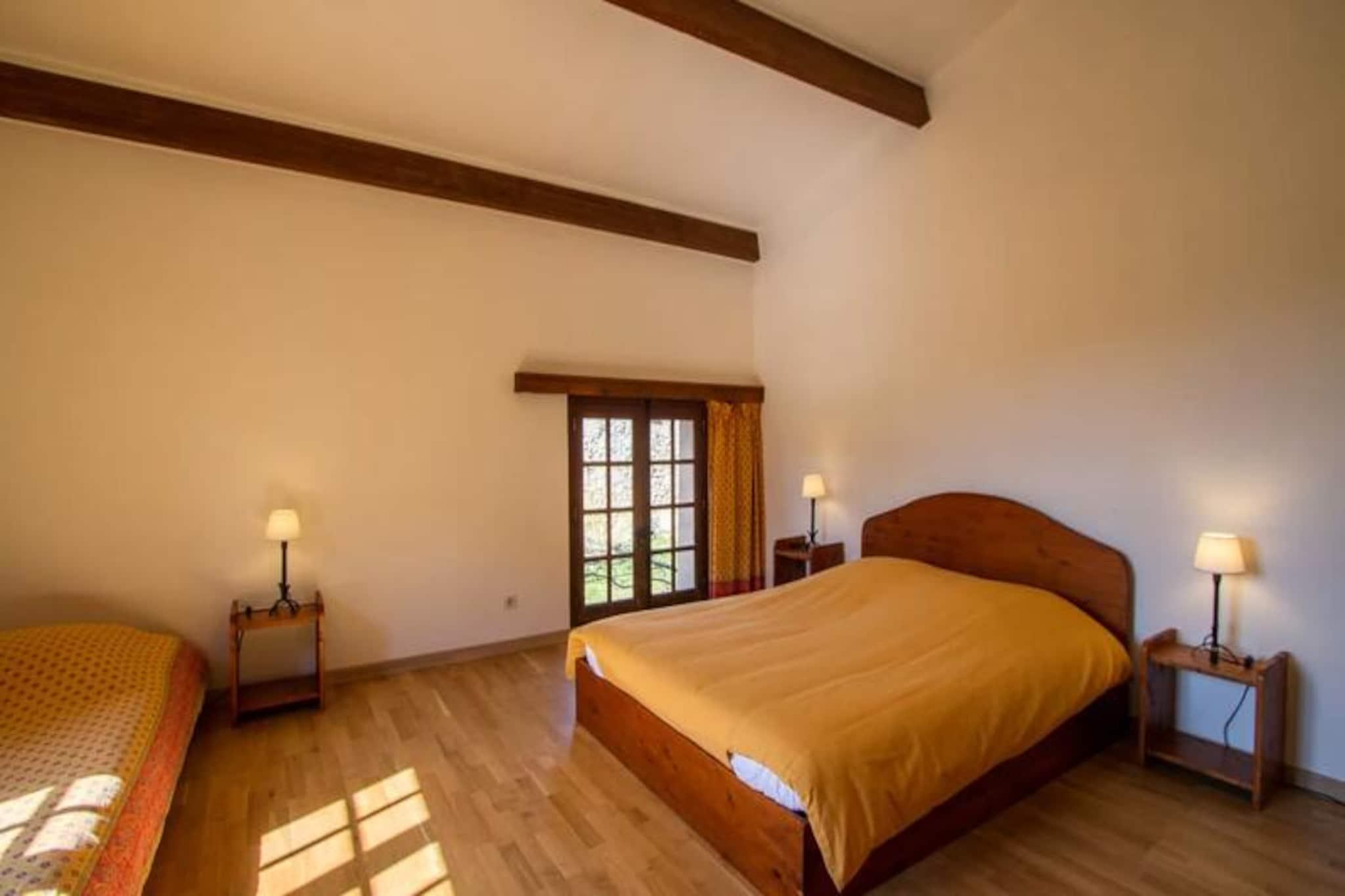 Dette rummelige feriehus, beliggende i rolige naturomgivelser, byder på 75 m² boligareal og to store terrasser mod syd og vest. Stueetagen har en stor stue med et opholdsområde, brændeovn og et fuldt udstyret køkken, mens ovenpå et stort soveværelse med en dobbeltseng (160 cm) og en ekstra enkeltseng (80 cm) komfortabelt kan sove tre gæster . Det andet soveværelse, beliggende på mezzaninen, byder på tre enkeltsenge, som kan sættes sammen til en dobbeltseng (160 cm). Der er et separat badeværelse med bruser og toilet. Kæledyr er velkomne på anmodning. Ejendommen ligger inden for seks hektar frodig natur og er en del af Domaine de la Haute Maure, en smuk ejendom med stenege, fyrretræer og middelhavsvegetation. Den fælles opvarmede swimmingpool (15 x 5 meter) ligger kun 100 meter væk, og du kan nyde de fredfyldte omgivelser til en zen- og naturfyldt ferie. Til afslapning tilbyder ejendommen adgang til en spa med sauna, hammam og jacuzzi (efter aftale). Ejendommen er udstyret med et fuldt funktionelt køkken og moderne badeværelsesfaciliteter. Du kan nyde måltider på terrasserne eller drage fordel af grillen. Huset tilbyder også et vandfiltreringssystem til at drikke og lave mad, hvilket sikrer vand af høj kvalitet under hele dit ophold. Miljøvenlige produkter bruges til rengøring og tøjvask, hvilket gør denne ejendom til et ideelt valg for miljøbevidste rejsende.