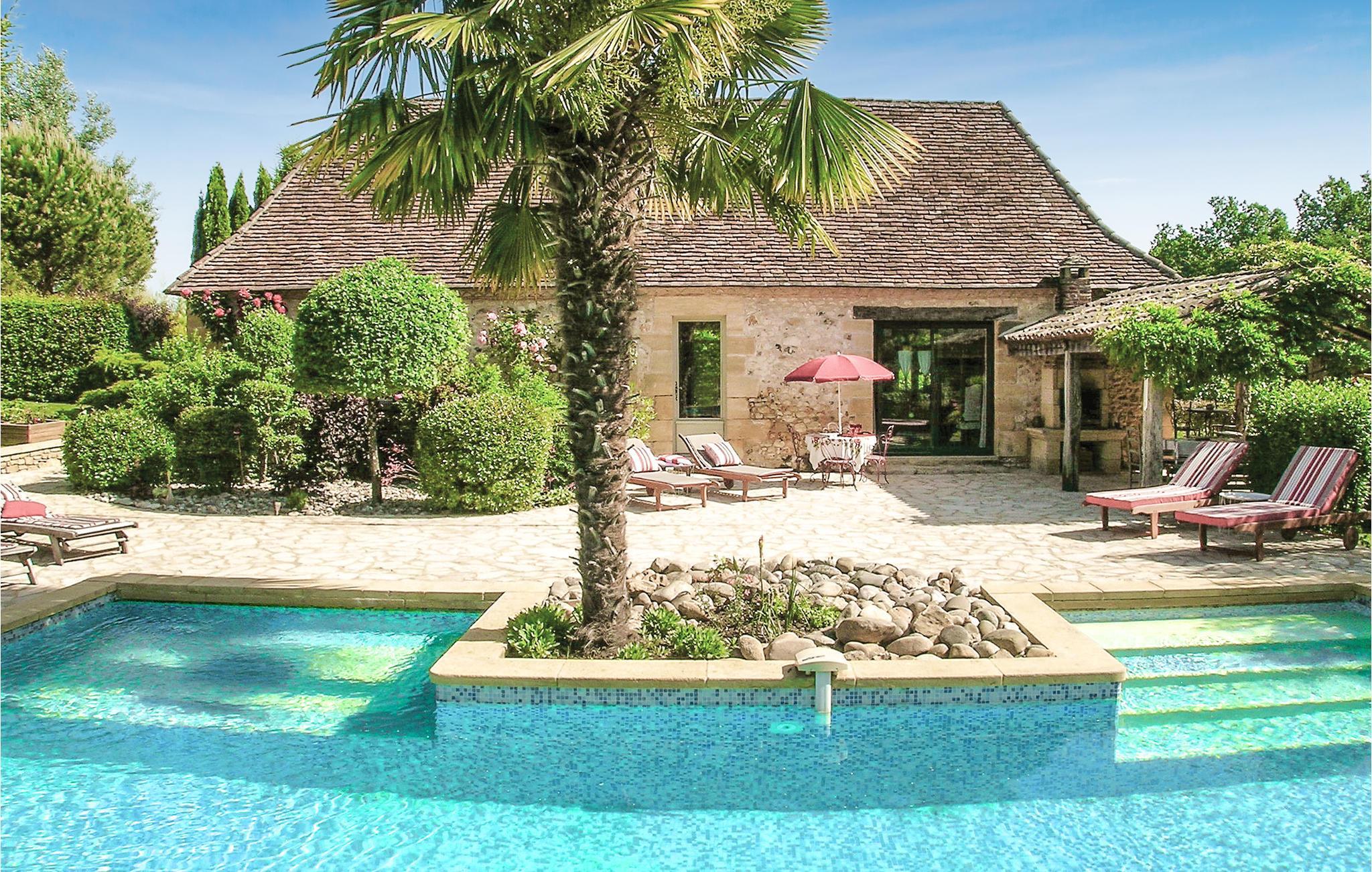 Dette feriehus er bygget i sten og ligger i det skovklædte landskab i Périgord Noir på en stor grund med dejlig have, der kan danne ramme om timevis af afslapning.