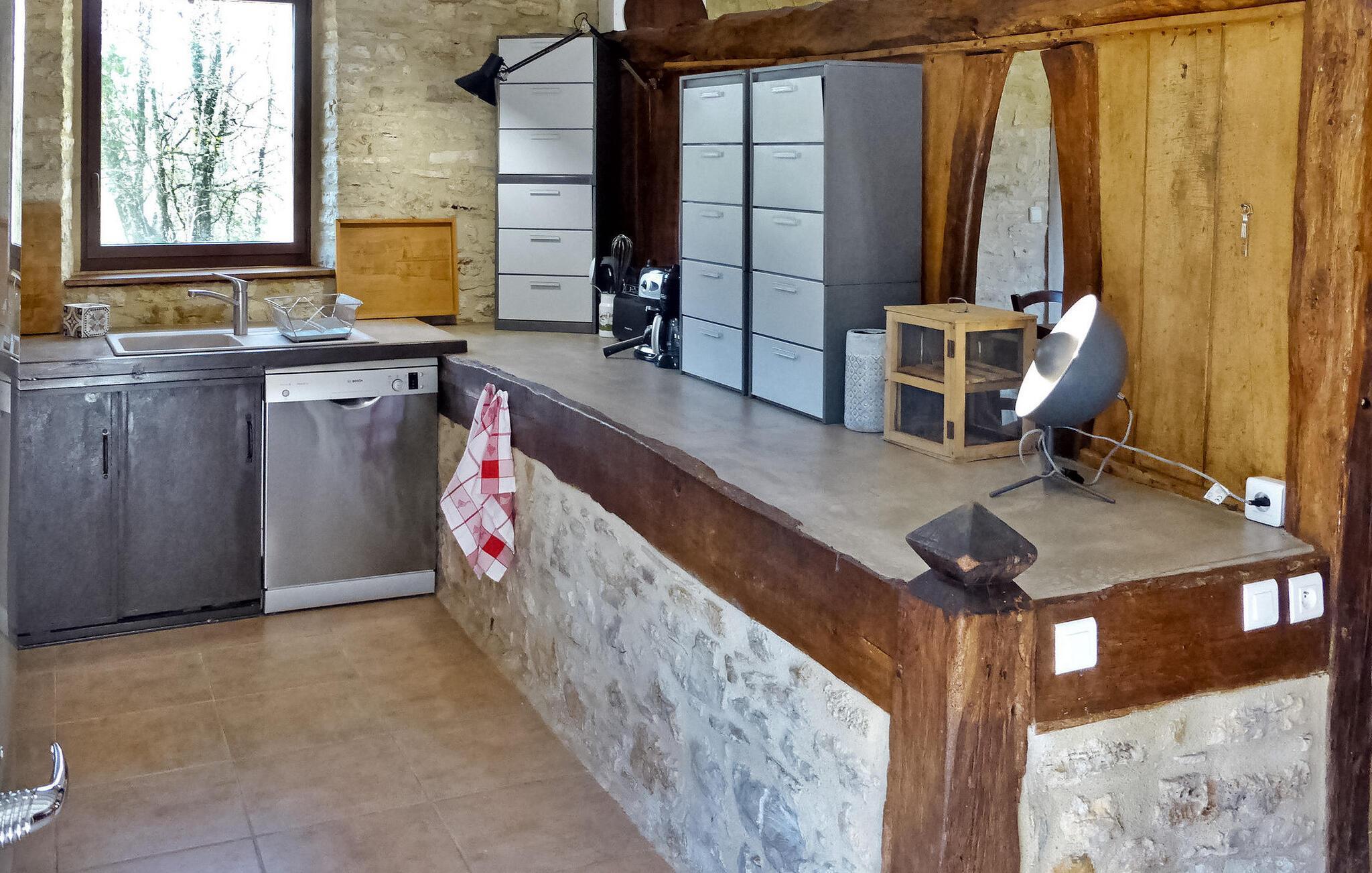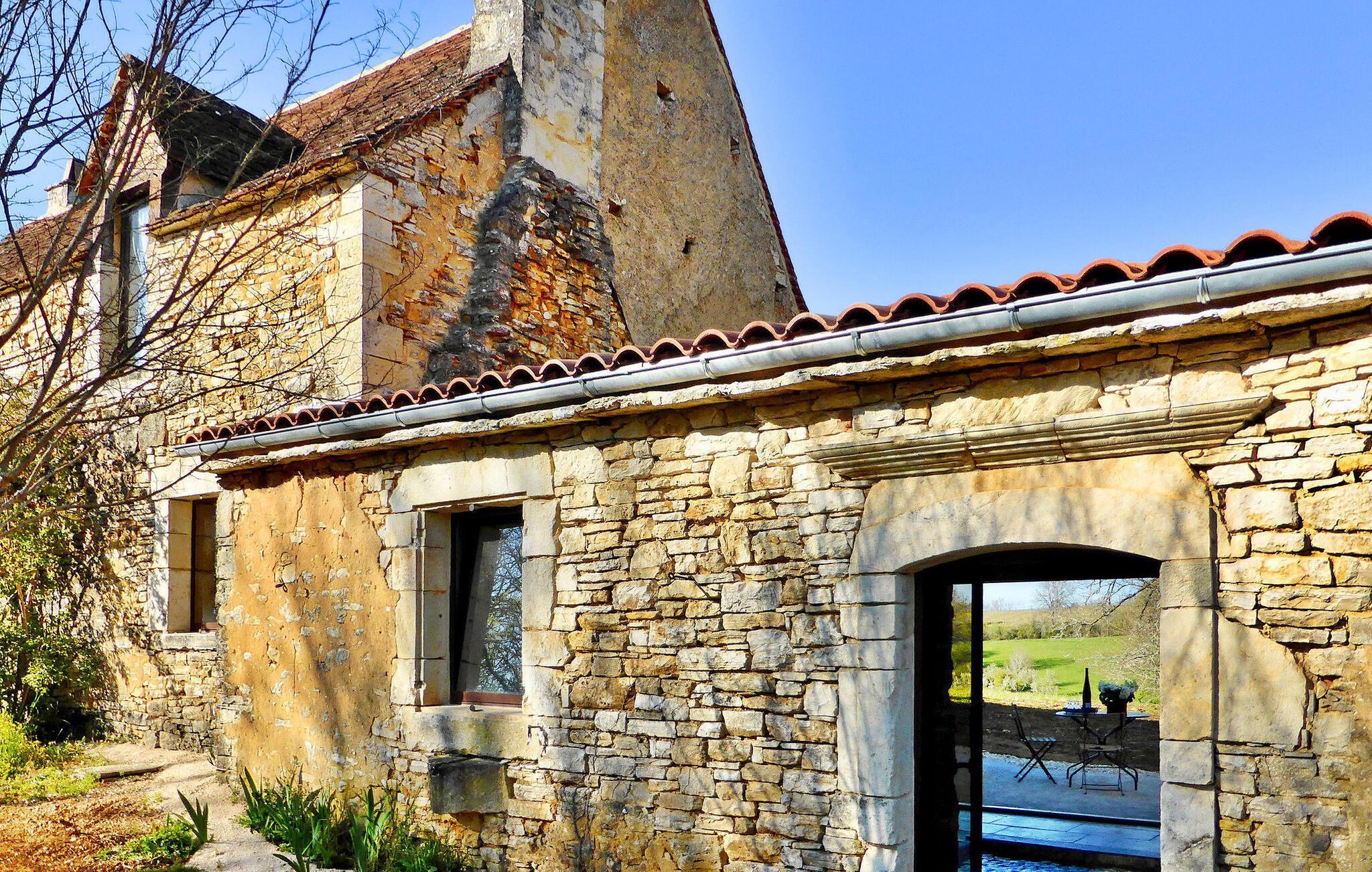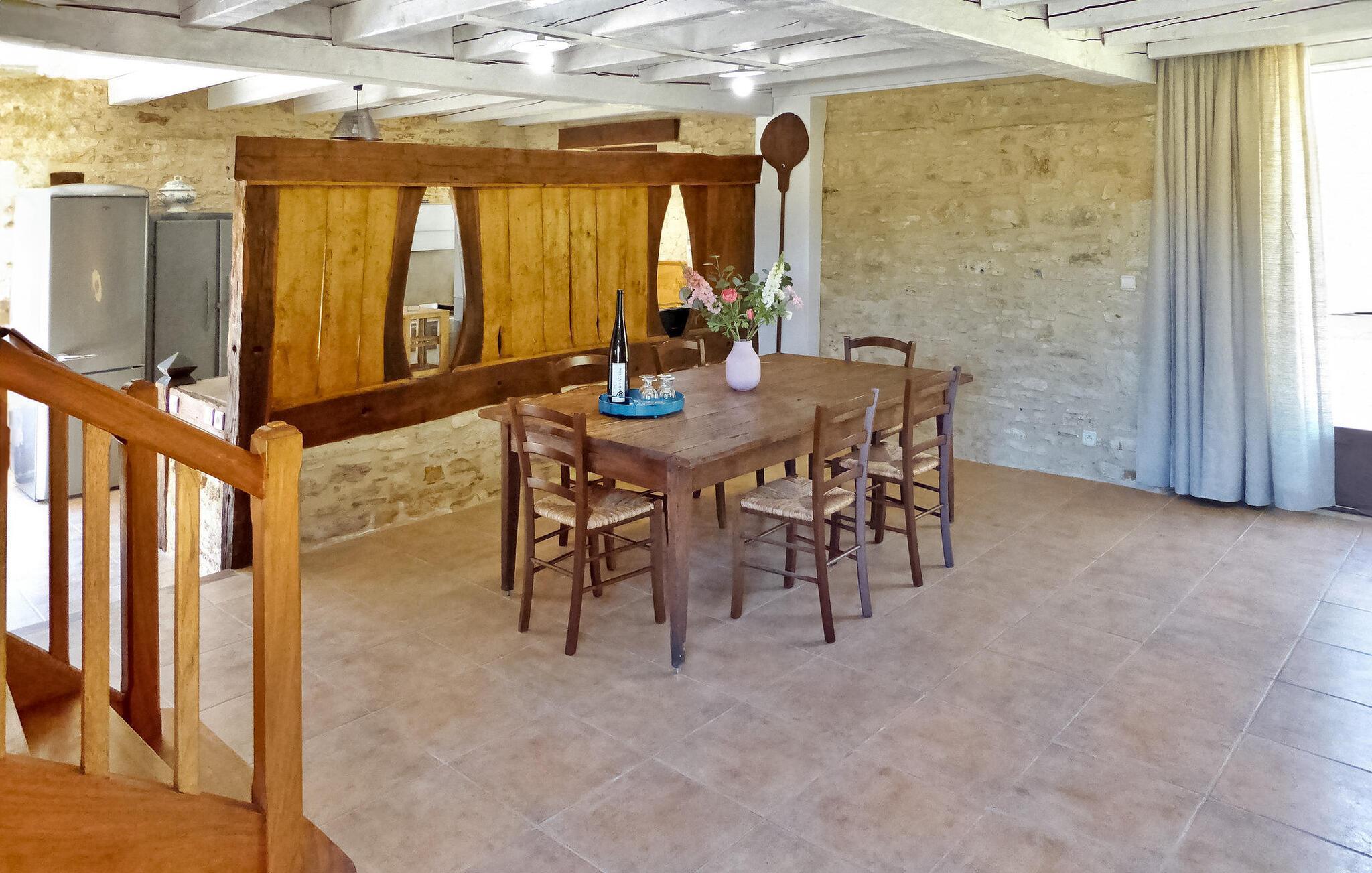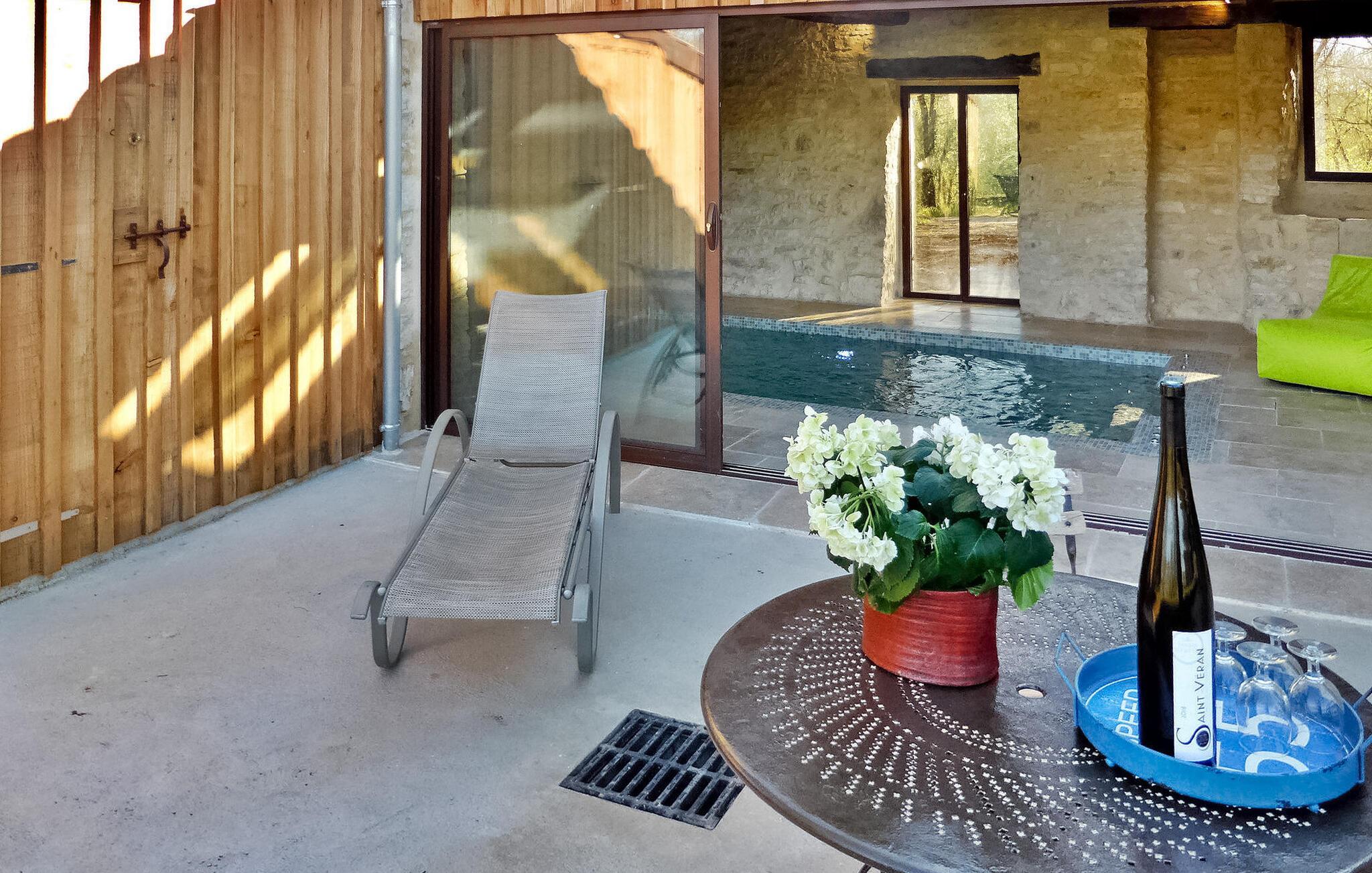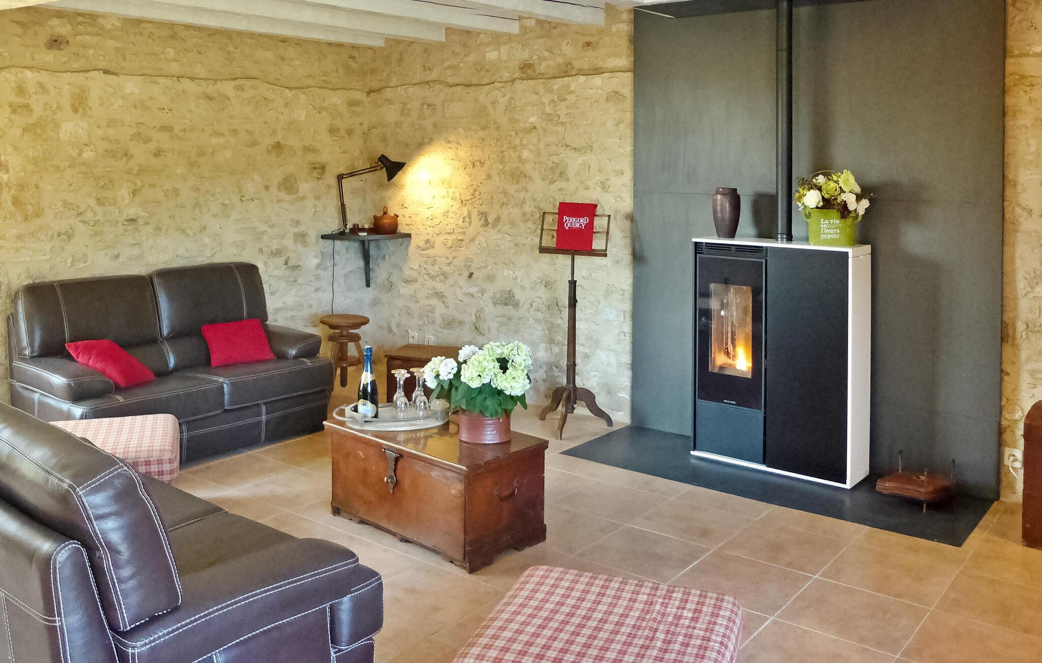 Flugt til en charmerende ferieudlejning i Dordogne Perigord, med et smukt stenhus med en indendørs swimmingpool og spa. Beliggende i rolige landlige omgivelser i en lille landsby, tilbyder dette dejlige tilflugtssted afslapning og komfort. Stueetagen byder velkommen med et rummeligt opholdsområde, komplet med træpilleovn til hyggelige aftener. Opholdsrummet integrerer problemfrit et landmands spisebord og et veludstyret køkken prydet med antikke metalværkstedsskabe. Ovenpå tilbyder værelserne med aircondition komfort og bekvemmelighed, som alle har tv. Derudover tilbyder et studieværelse et perfekt arbejds- eller studierum. Forkæl dig selv med det afslappende poolområde, der kan prale af en indendørs mosaikpool og spa med modstrømssvømning, et brusebad og et loungeområde møbleret med tv og musikapparater. Der er badekåber og hjemmesko til din ultimative komfort. Poolområdet forbindes ubesværet med terrassen og en gårdhave gennem store vinduer, hvilket udvisker grænserne mellem indendørs og udendørs ophold. Udenfor kan du nyde rigelig plads til fritid og afslapning midt i de naturskønne omgivelser. Oplev ro og komfort i dette bemærkelsesværdige feriested, hvor fusionen af indendørs og udendørs lækkerier lover et mindeværdigt ophold i hjertet af Dordogne Perigord.