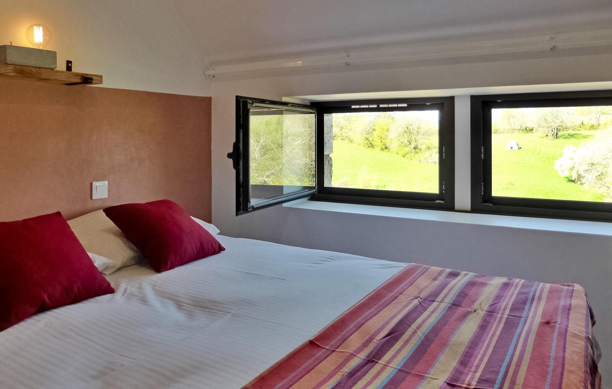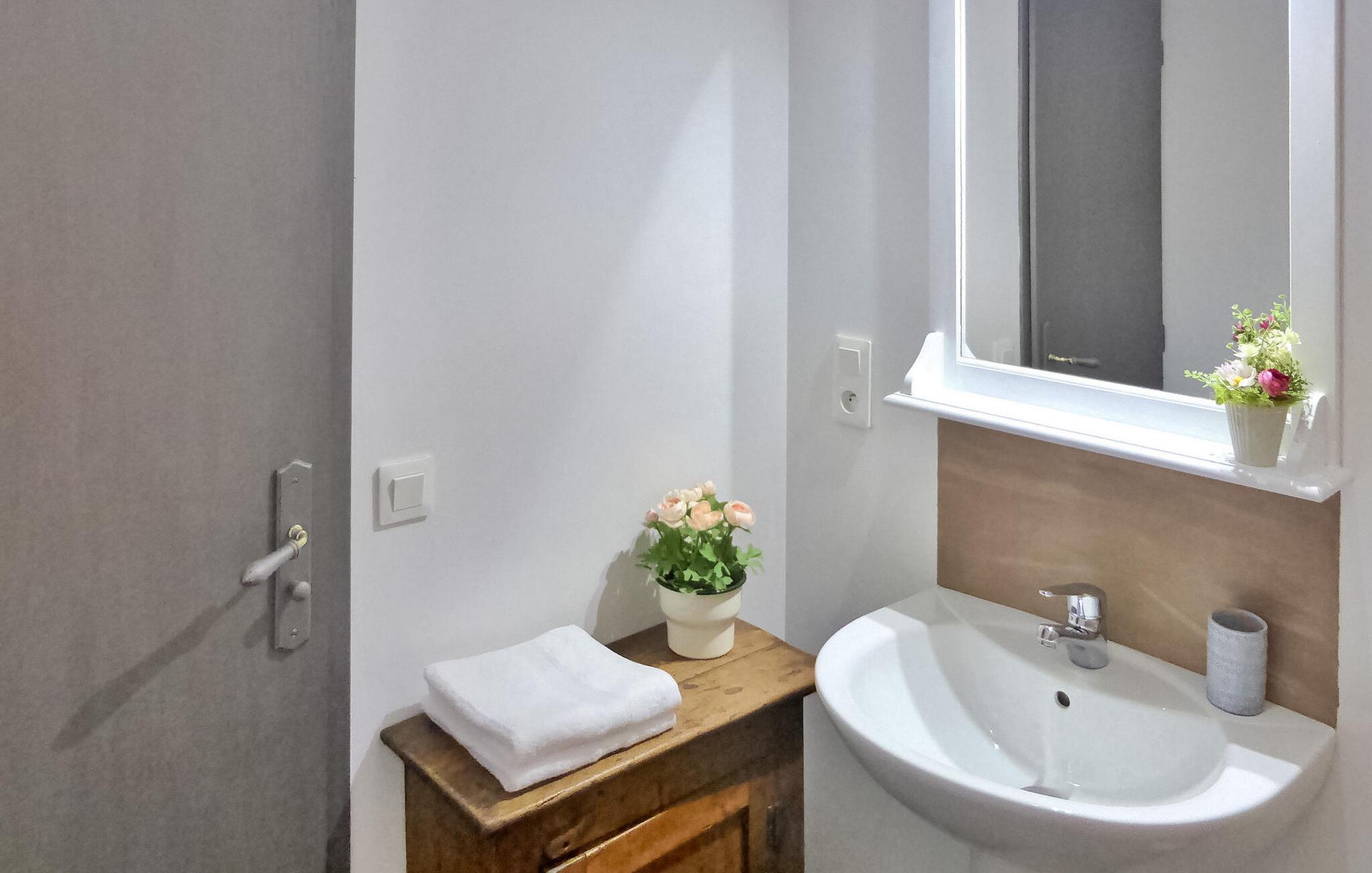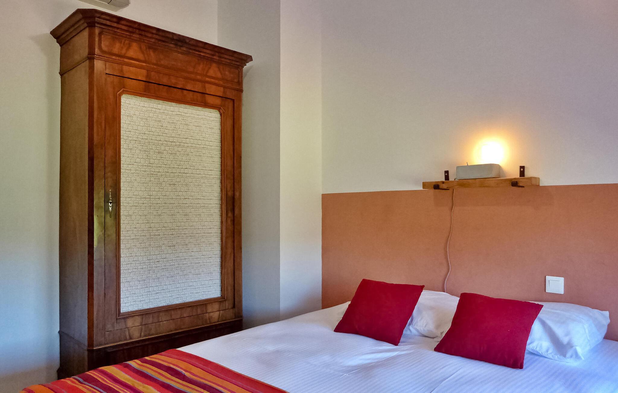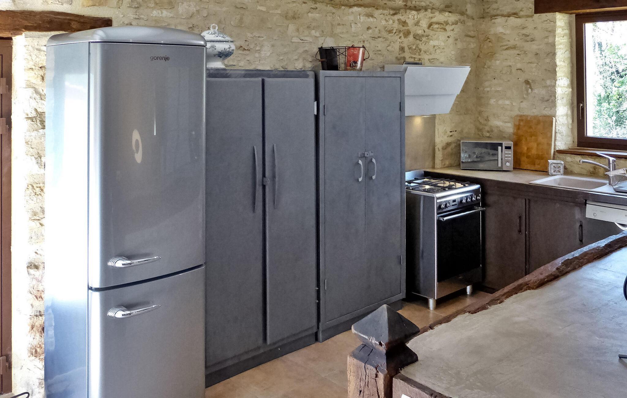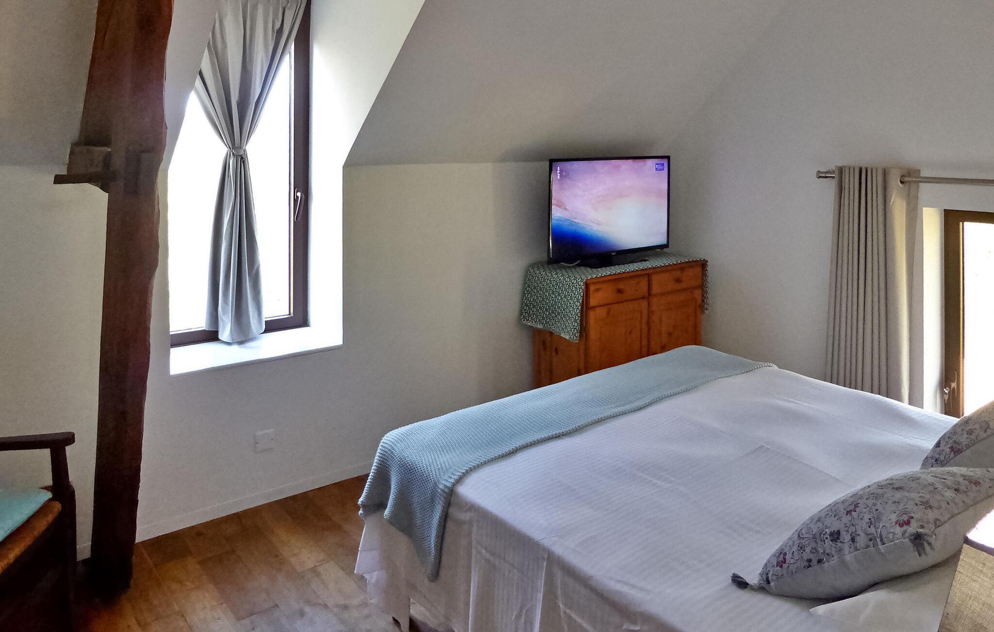 Flugt til en charmerende ferieudlejning i Dordogne Perigord, med et smukt stenhus med en indendørs swimmingpool og spa. Beliggende i rolige landlige omgivelser i en lille landsby, tilbyder dette dejlige tilflugtssted afslapning og komfort. Stueetagen byder velkommen med et rummeligt opholdsområde, komplet med træpilleovn til hyggelige aftener. Opholdsrummet integrerer problemfrit et landmands spisebord og et veludstyret køkken prydet med antikke metalværkstedsskabe. Ovenpå tilbyder værelserne med aircondition komfort og bekvemmelighed, som alle har tv. Derudover tilbyder et studieværelse et perfekt arbejds- eller studierum. Forkæl dig selv med det afslappende poolområde, der kan prale af en indendørs mosaikpool og spa med modstrømssvømning, et brusebad og et loungeområde møbleret med tv og musikapparater. Der er badekåber og hjemmesko til din ultimative komfort. Poolområdet forbindes ubesværet med terrassen og en gårdhave gennem store vinduer, hvilket udvisker grænserne mellem indendørs og udendørs ophold. Udenfor kan du nyde rigelig plads til fritid og afslapning midt i de naturskønne omgivelser. Oplev ro og komfort i dette bemærkelsesværdige feriested, hvor fusionen af indendørs og udendørs lækkerier lover et mindeværdigt ophold i hjertet af Dordogne Perigord.
