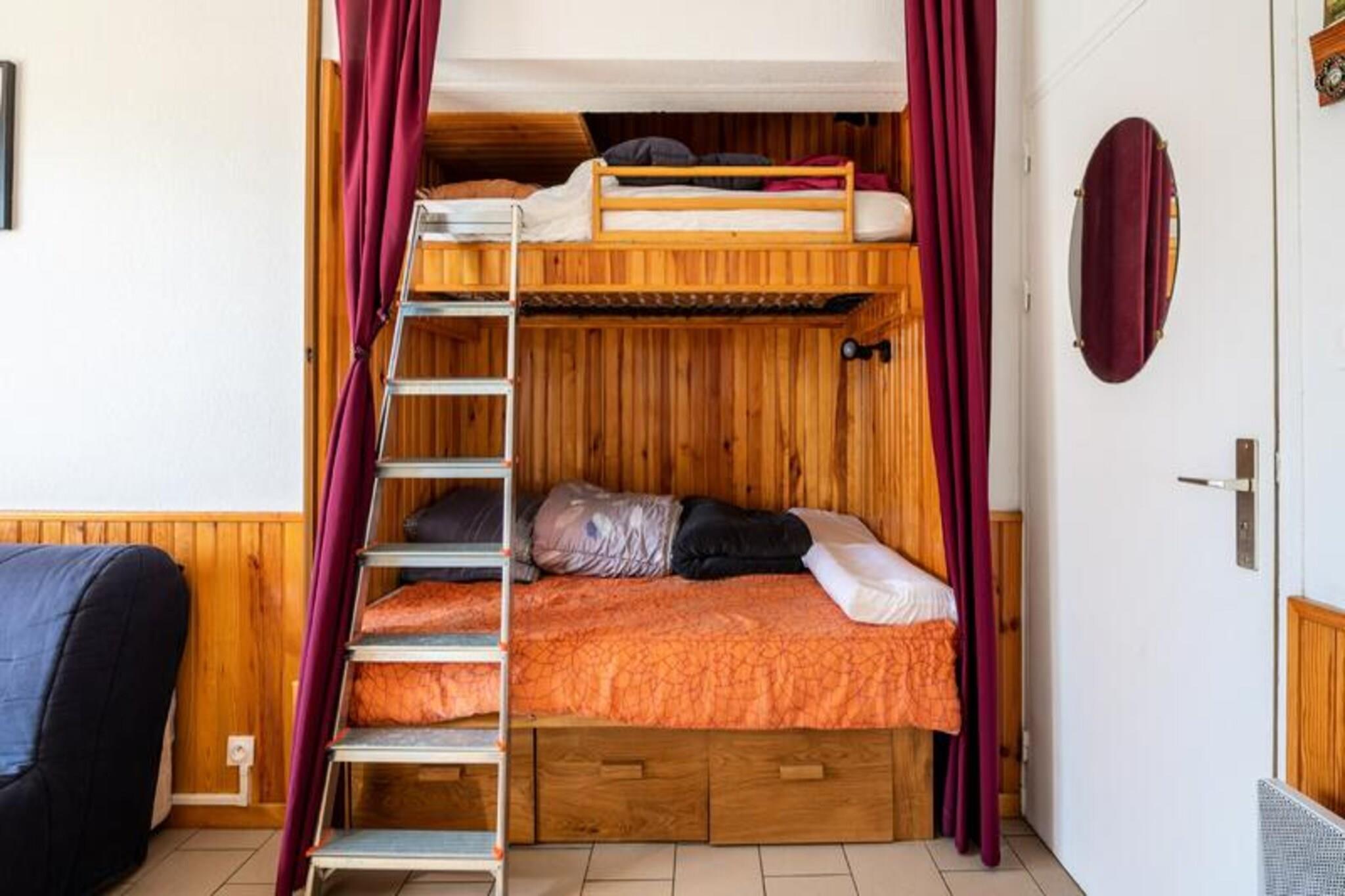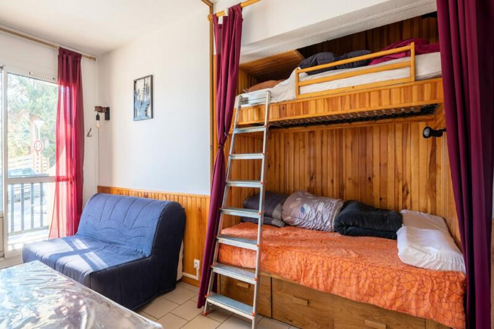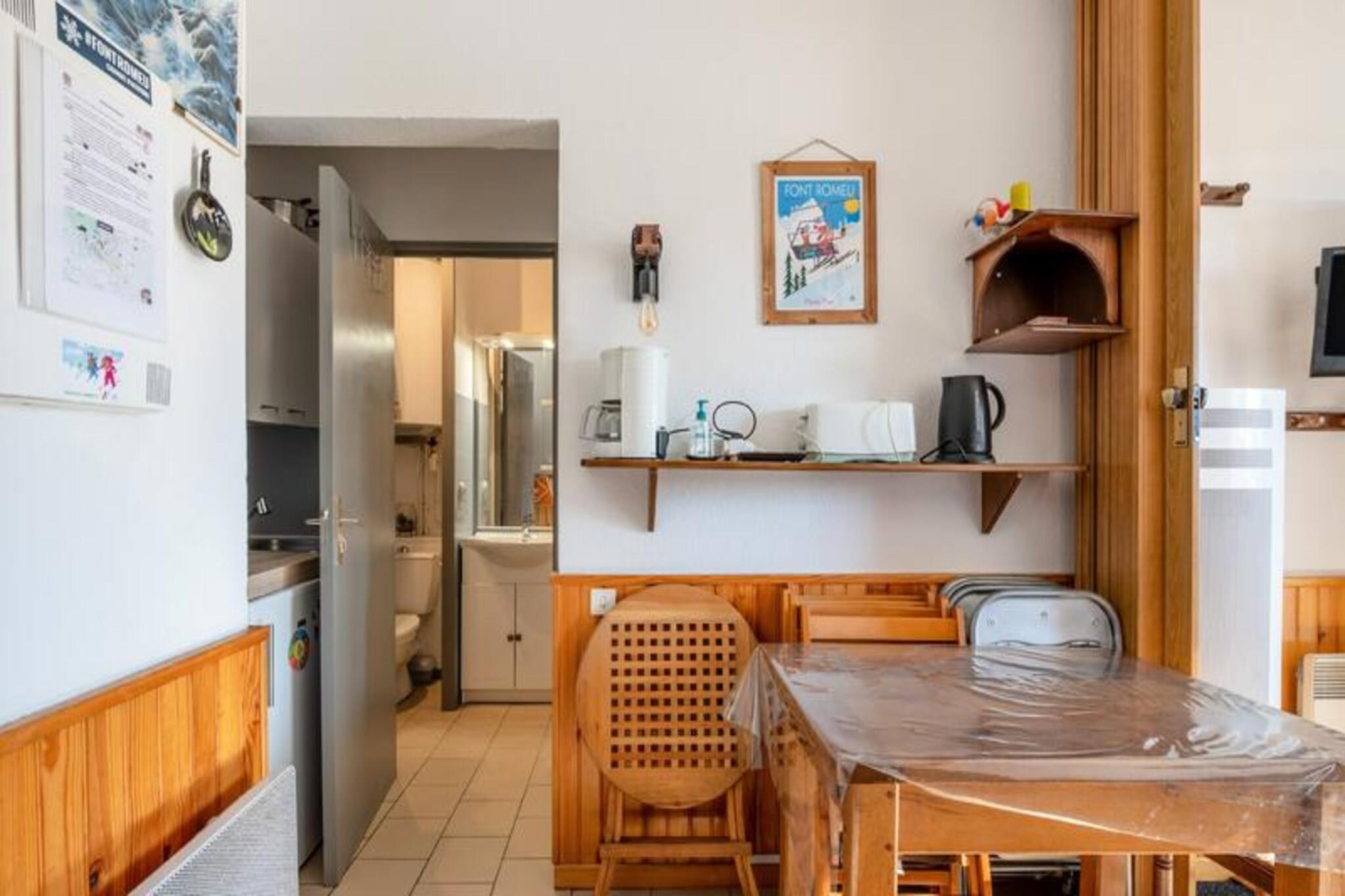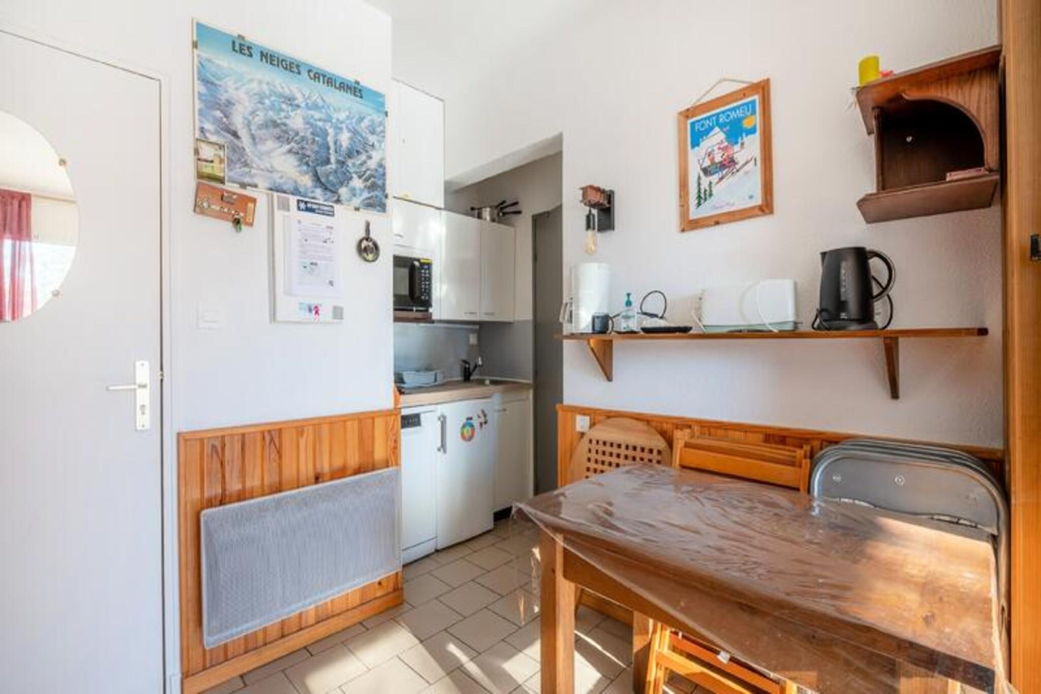 Denne budgetvenlige studiolejlighed har plads til op til fire g?ster, og den har et opholdsomr?de med en sovesofa og et kabineomr?de med en dobbeltseng og en enkeltseng. En sydvendt terrasse byder p? en behagelig udsigt. K?ledyr er tilladt mod et ekstra gebyr. Parkering er tilg?ngelig i en individuel lukket boks. Lejligheden ligger i Font-Romeu, kun 5 minutters gang fra skifaciliteter og kun 500 meter fra restauranter og butikker. Den spanske by Llivia ligger 20 minutters k?rsel derfra. Det omkringliggende omr?de byder p? muligheder for vandreture, klatring og paragliding. Togstationen Odeillo-Font Romeu ligger 4 km derfra. Lejligheden indeholder k?kken med spisebord og stole samt badev?relse med bruser og toilet. Faciliteterne inkluderer en elektrisk h?ndkl?det?rrer og opbevaringsplads p? badev?relset. Sengelinned og h?ndkl?der er tilg?ngelige efter anmodning og mod et till?gsgebyr. Slutreng?ring er obligatorisk og betales ved indtjekning. Daglig reng?ring er tilg?ngelig mod et till?gsgebyr. Der kr?ves et depositum.