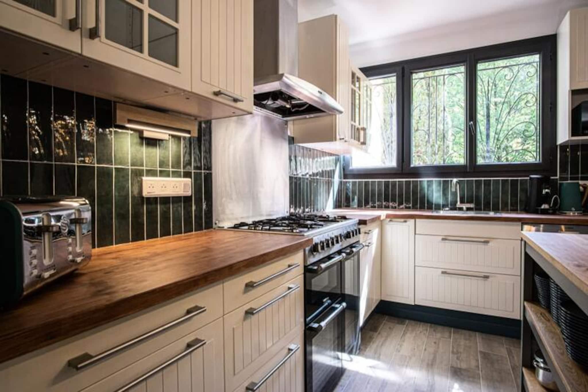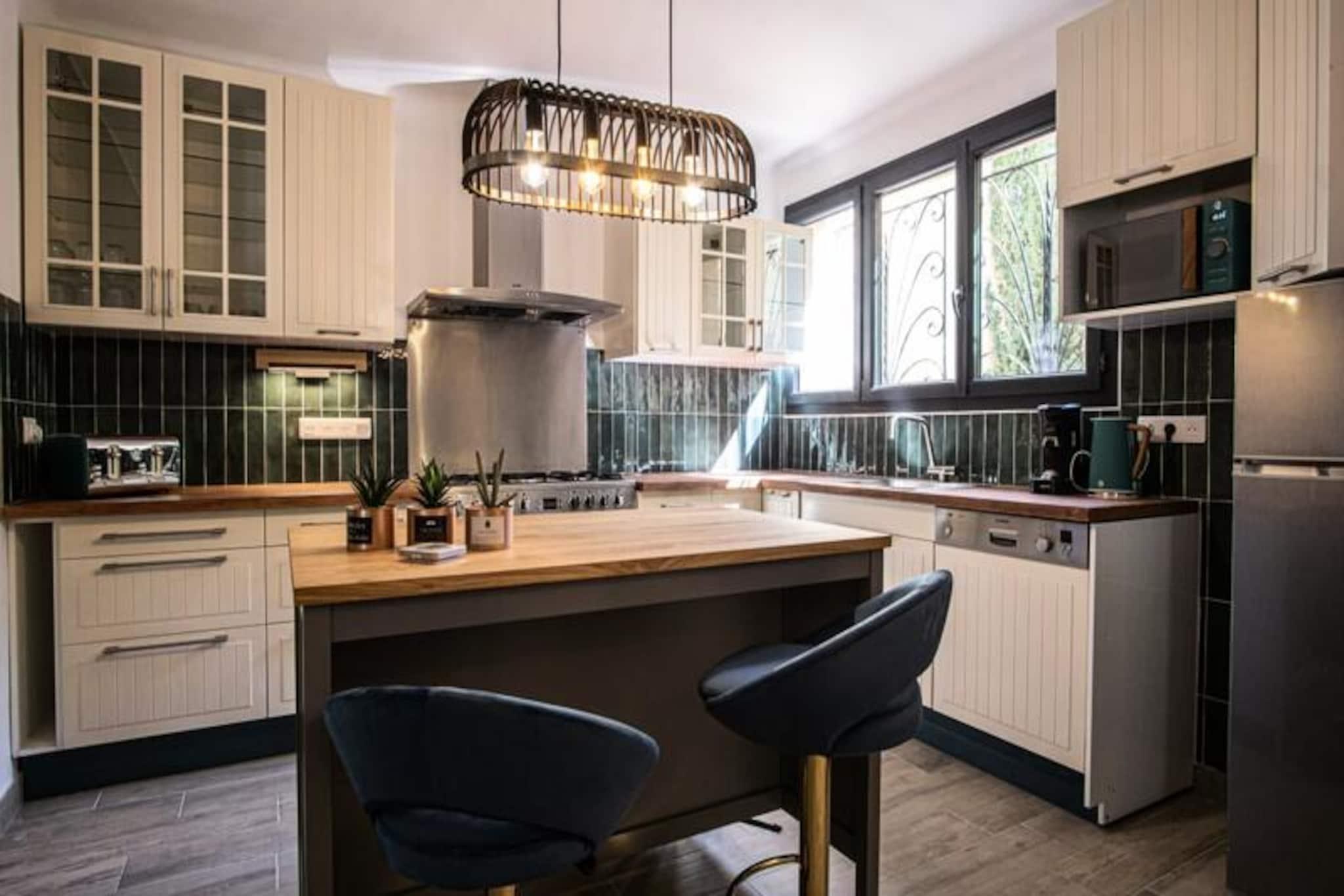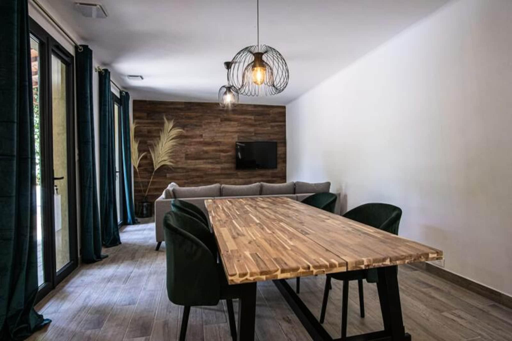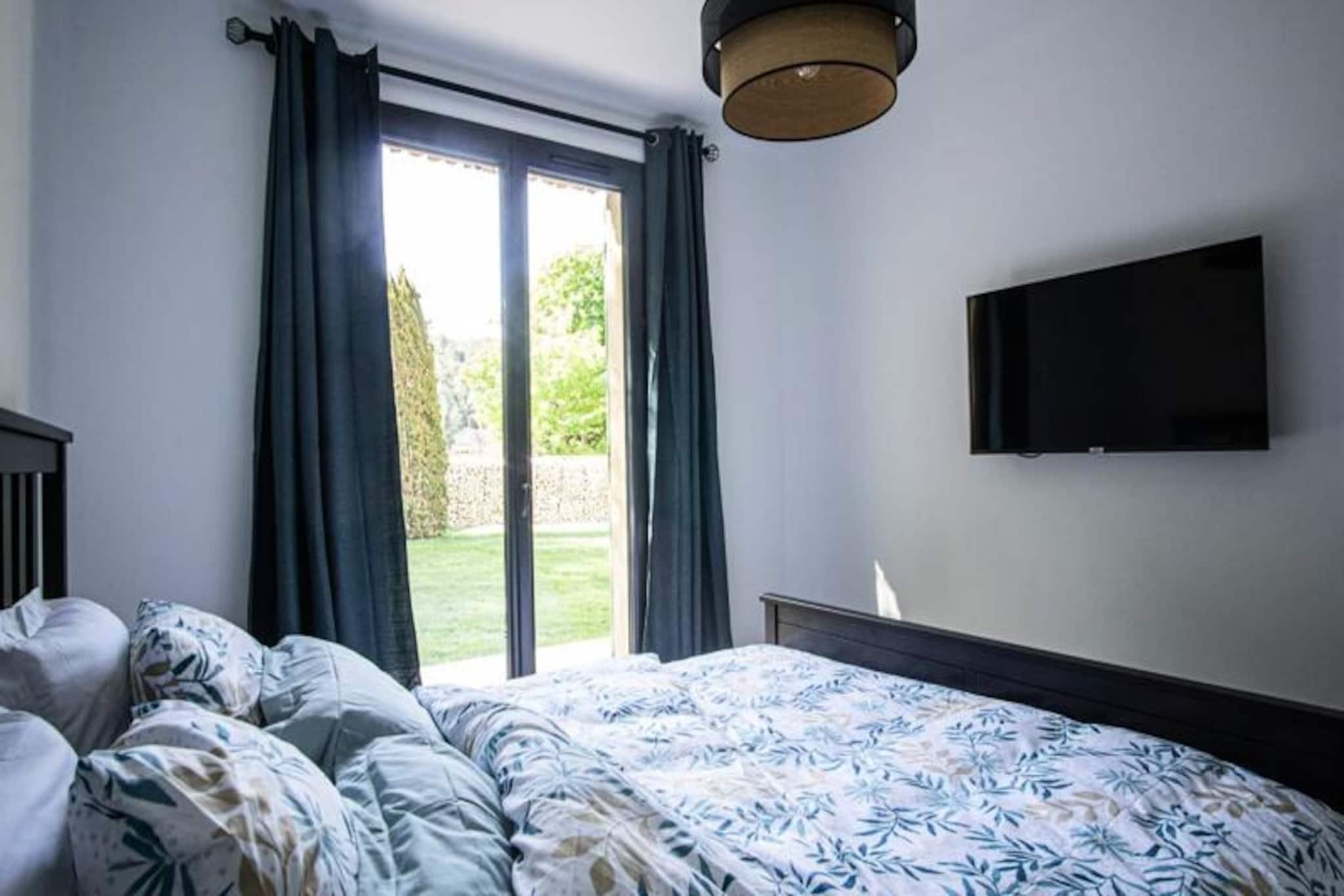 Dette nyligt renoverede hus på 100 m² er perfekt til en familie eller gruppe af venner, med tre komfortable soveværelser, hver med et tv og aircondition. Ejendommen er kæledyrsvenlig og tillader hunde med forudgående godkendelse. Huset har en rummelig stue, en spiseplads og et fuldt udstyret køkken. Et moderne badeværelse med bruser fuldender det indendørs rum, hvilket sikrer komfort for alle gæster. Ejendommen ligger kun få minutter fra landsbyen Fontaine-de-Vaucluse og tilbyder nem adgang til nærliggende attraktioner. Nyd et besøg i børneparken "Nestor Le Castor" eller et kano-kajak eventyr langs Sorgue-floden. Det lokale marked i Isle-sur-la-Sorgue, kendt for sine antikviteter og provencalske varer, ligger kun 2 minutter væk. Udforsk landsbyerne Luberon og Alpilles på en bakketop, eller tag en kort køretur til strandene ved den blå kyst. Huset har et privat udendørs område med swimmingpool, tilgængelig fra maj til september, og liggestole til afslapning. Gæsterne kan også nyde gåture langs Sorgue-floden, som ligger i nærheden. Køkkenet er fuldt udstyret til madlavning, og en vaskemaskine er tilgængelig for nemheds skyld. En sen ankomstpakke er tilgængelig mod et ekstra gebyr.