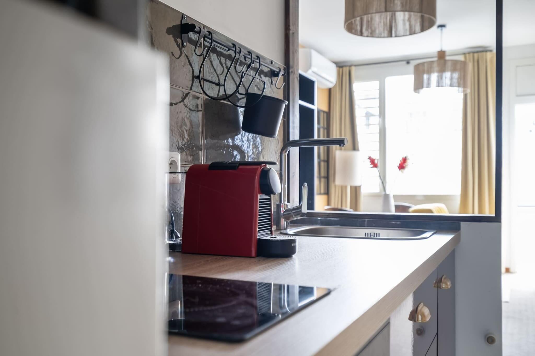 Nyd et afslappende og bekvemt ophold i denne moderne lejlighed beliggende i det pulserende hjerte af Fort-de-France. Ideel til par eller forretningsrejsende, dette gennemtænkte rum ligger kun 15 minutter fra lufthavnen og i gåafstand fra byens kulturelle perler, butikker og strande. Lejligheden på 30 m² har et hyggeligt soveværelse med en dobbeltseng og et badeværelse med bruseniche. En lys åben stue med satellit-tv, aircondition og direkte adgang til en privat 5 m² terrasse med havemøbler - perfekt til at nyde øens brise. Det fuldt udstyrede køkken er udstyret med køleskab, mikrobølgeovn, ovn, fryser, opvaskemaskine, kaffemaskine, elkedel, juicer og alt nødvendigt køkkengrej, hvilket gør det nemt at tilberede måltider, når det passer dig. Gæsterne har også adgang til fælles faciliteter såsom et mødelokale i Le Botanik-bygningen og spisemuligheder på Kreyol Green, der serverer morgenmad, supper, salater og smoothies. Kun 6 minutters gang væk inviterer La Française og Malécon-strandene dig til at slappe af ved havet. Med udendørs parkering, vaskemaskine og Wi-Fi tilbyder denne lejlighed alt hvad du behøver for et komfortabelt og forbundet caribisk ophold.