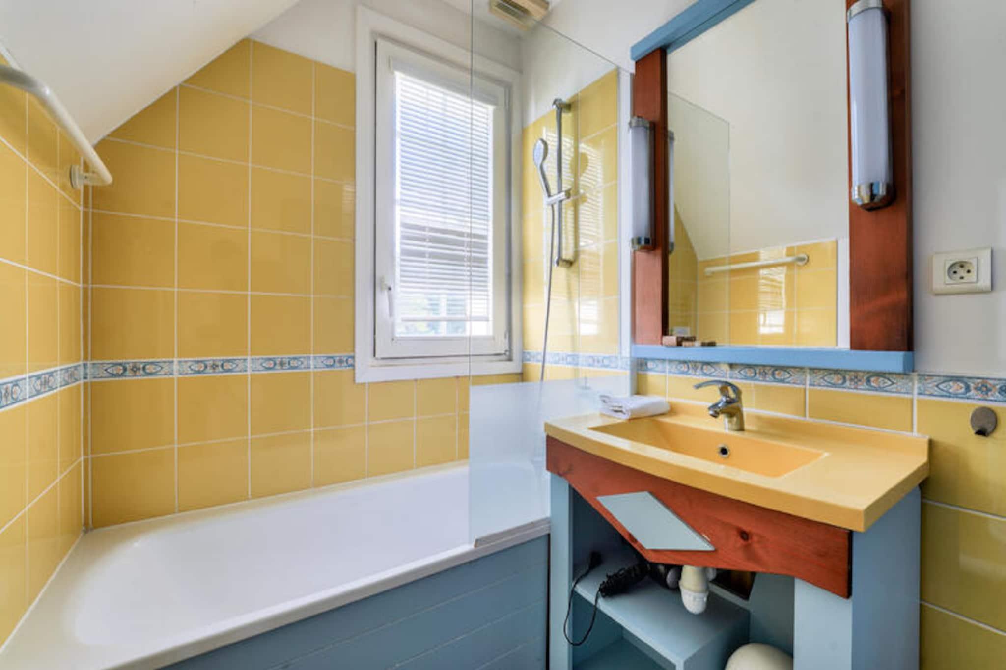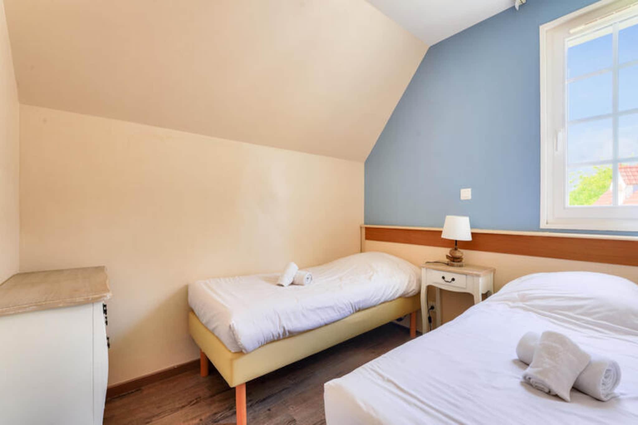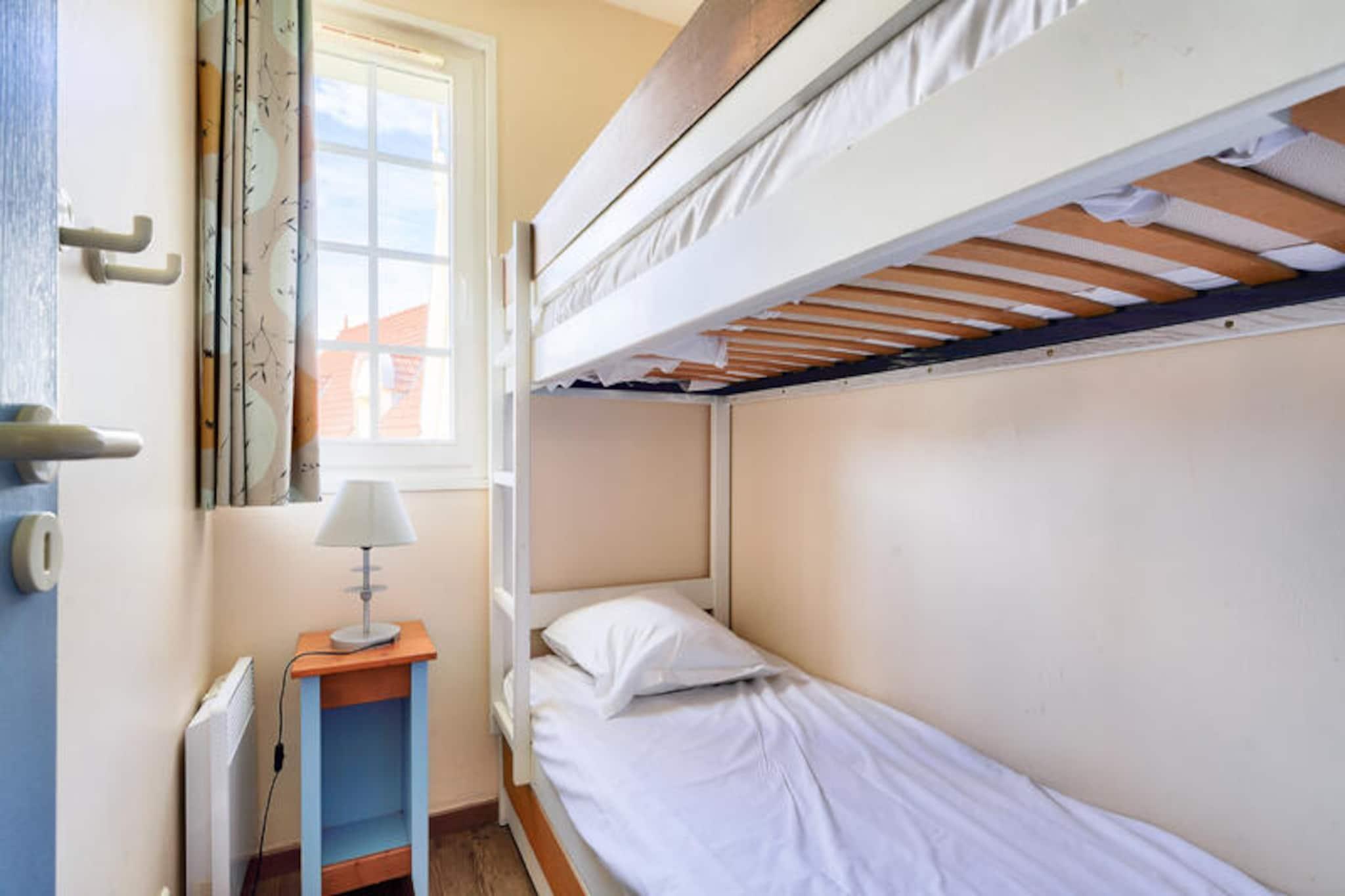 Dette feriehus p? 55 m² tilbyder et behageligt ophold for familier med 2 sovev?relser, en hytte med k?jesenge og en sovesofa i stuen. Ejendommen er k?ledyrsvenlig og har 2 badev?relser, hvoraf det ene har bruser og det andet har badekar. Det har ogs? en privat terrasse til udend?rs afslapning og parkering for din bekvemmelighed. Senget?j leveres, og der opkr?ves et slutreng?ringsgebyr. Beliggende i Belle Dune klublandsbyen er denne bolig en del af et fodg?ngervenligt og naturligt milj? i Fort-Mahon, Picardie. Landsbyen tilbyder en r?kke aktiviteter s?som tennis, fitness og Zumba, der er tilg?ngelige mod et ekstra gebyr. Det n?rliggende Maisons de la Plage-distrikt tilbyder gratis adgang til swimmingpoolen i juli og august, perfekt til en forfriskende dukkert. Lejligheden har et fuldt udstyret k?kken, ideelt til at tilberede m?ltider med komfur, k?leskab og spiseplads. K?kkenet ?bner ud i stuen, hvilket skaber en rummelig og indbydende atmosf?re. G?sterne kan nyde komforten af ??2 badev?relser, hvoraf det ene st?der op til master bedroom, og det andet er bekvemt placeret i n?rheden af ??opholdsstuen.