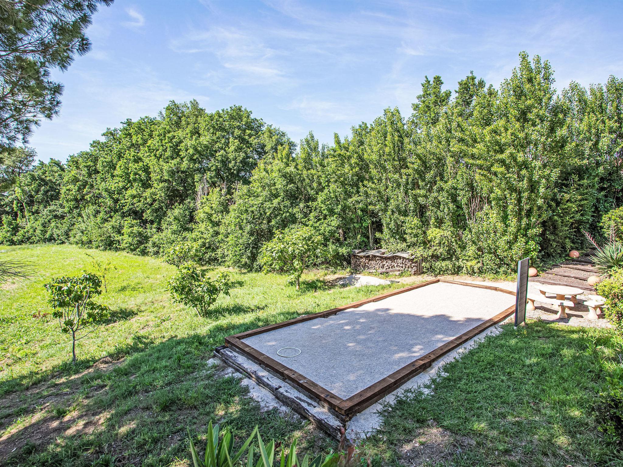 Fourques 8 km from Thuir: Single-family house "Côté Sud". In the resort 50 m from the centre of Fourques, in a quiet position in the residential district, 23 km from the sea, 23 km from the beach. Private: property 5'000 m2 (fenced), well-kept garden (fenced), swimming pool angular, heated, with privacy (9 x 4 m, depth 120 - 200 cm, seasonal availability: 01.Apr. - 15.Oct.) with shutter cover. Outdoor shower, pool house with cooking stove, table tennis, boules, terrace, garden furniture, barbecue house, pool maintenance by the owner/gardener. Parking (for 5 cars) on the premises. Grocery 50 m, restaurant 100 m, bakery 50 m, bus stop 100 m, railway station "Perpignan" 20 km, sandy beach "Saint Cyprien" 23 km. Sports harbour 23 km, golf course (18 hole) 23 km. Nearby attractions: le Monastir del Camp 4 km, Collioure 33 km, Thuir, cité du Byrrh et ses caves 8 km, Castelnou, village médiéval & château 9 km, Carcassonne 132 km, Espagne 24 km. Well-known lakes can easily be reached: Lac de Villeneuve de la Raho 14 km, Lac de St Jean Pla de Corts 5 km. Hiking paths: St Martin du Canigou 54 km, Pic du Canigou 64 km, Lac des Bouillouses 89 km. Please note: car recommended.