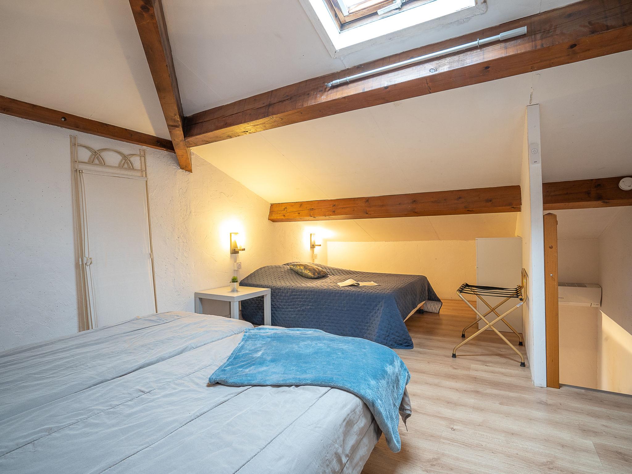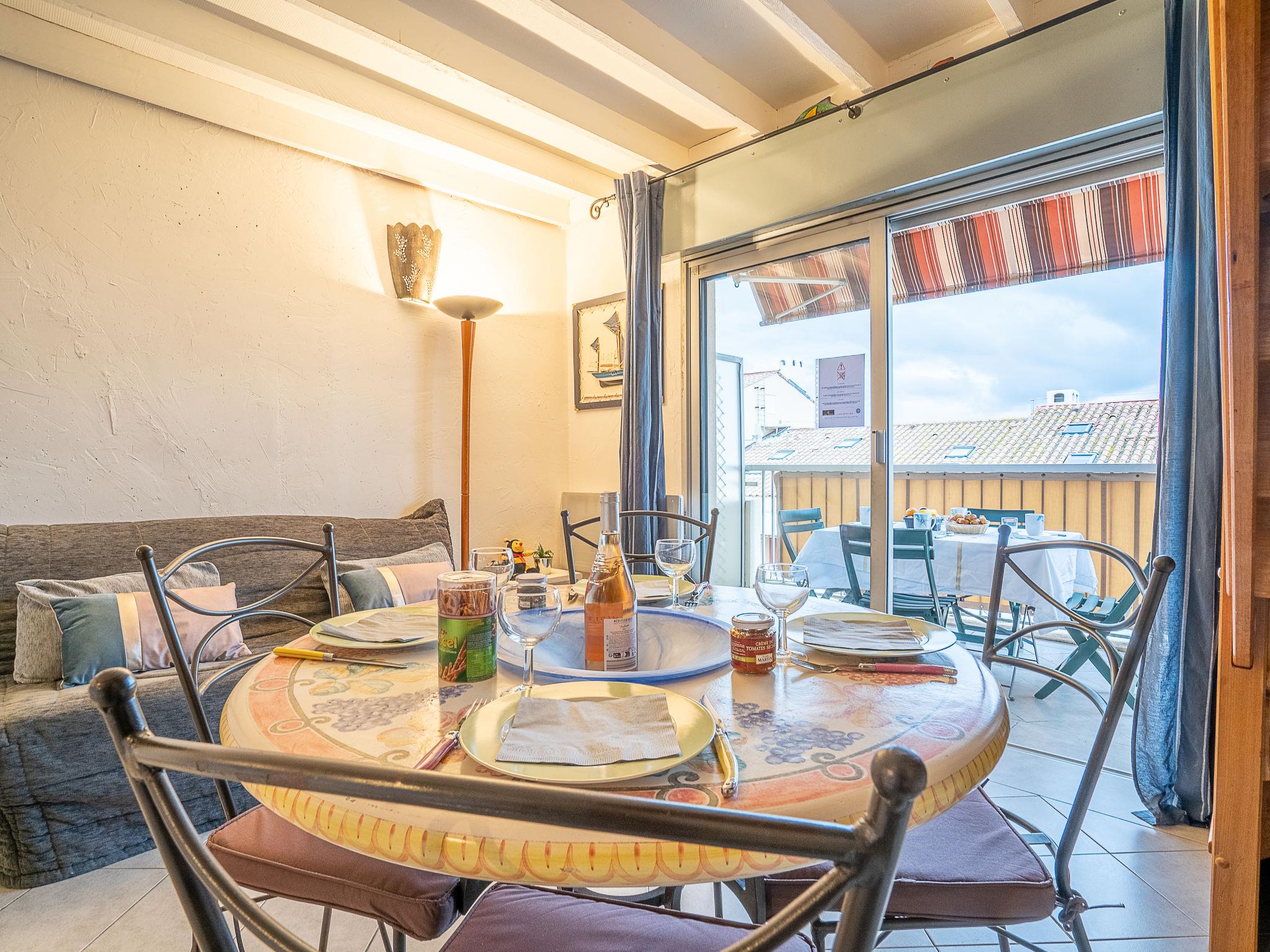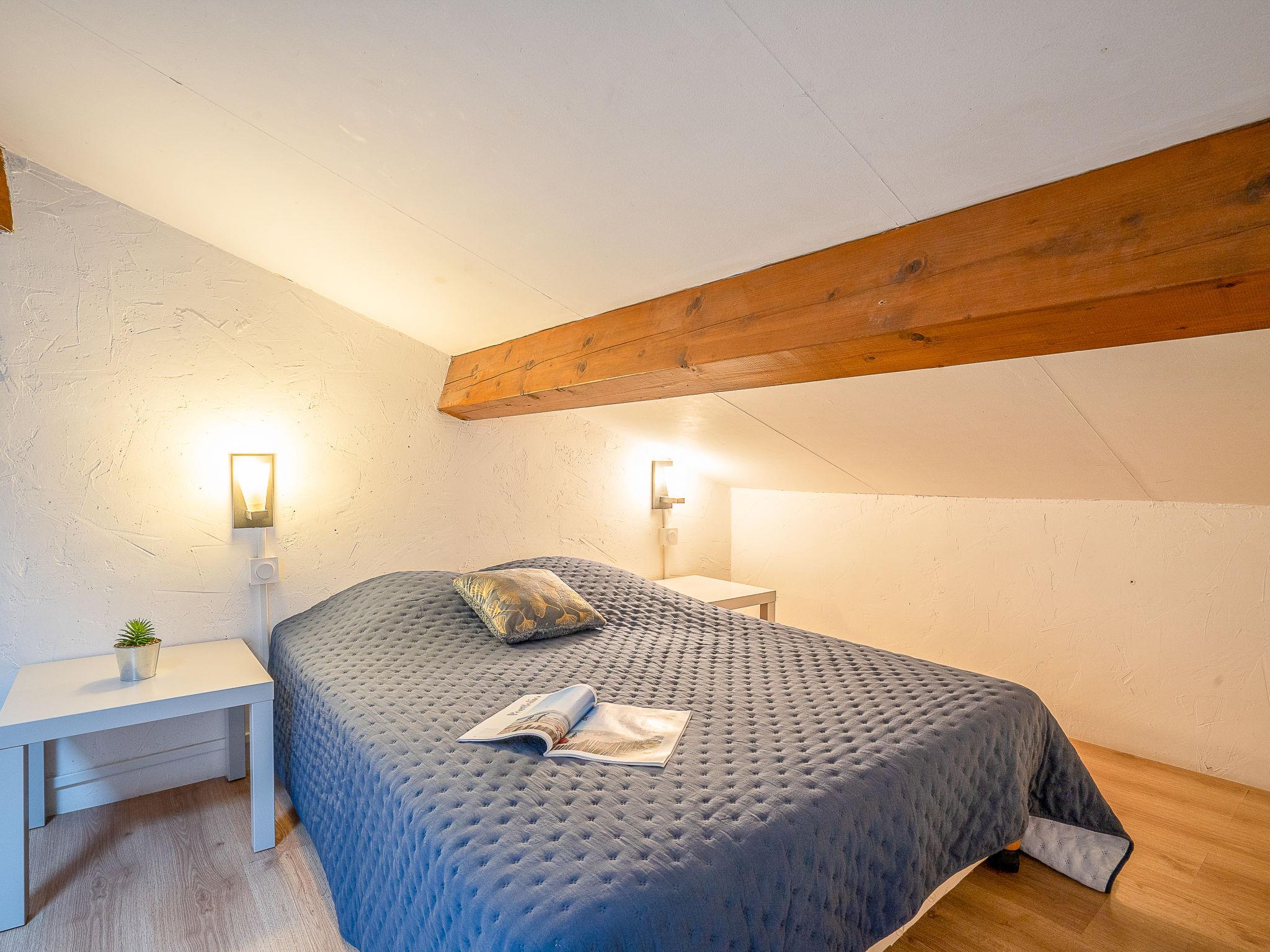 2-room maisonette 30 m2 on 7th floor, south facing position. Living/dining room with digital TV, electric heater, air conditioning and electric shutters. Exit to the balcony, south facing position. 1 room 12 m2, with sloping ceilings with 2 beds (80 cm, length 190 cm), 1 french bed (140 cm, length 190 cm), air conditioning. Kitchenette (dishwasher, 2 ceramic glass hob hotplates, toaster, kettle, microwave, freezer, electric coffee machine, combination microwave) with dining table. Shower, sep. WC. Small balcony 10 m2. Balcony furniture. Partial view of the sea. Facilities: washing machine, iron, hair dryer. Internet (WiFi, extra). Garage space n 1, height 188 cm, width 230 cm. Please note: non-smokers only, parking space for small car only. Smoke alarm.