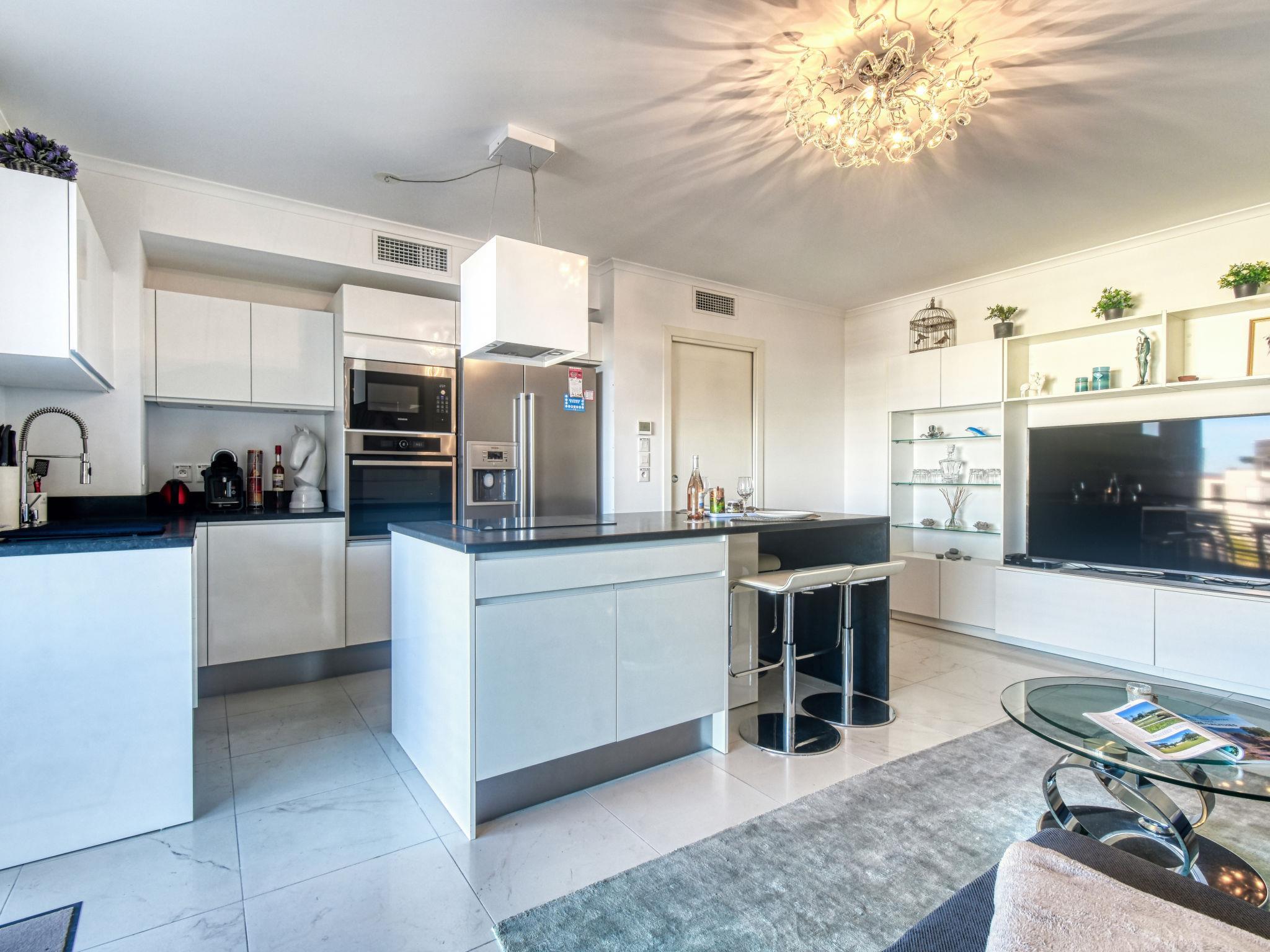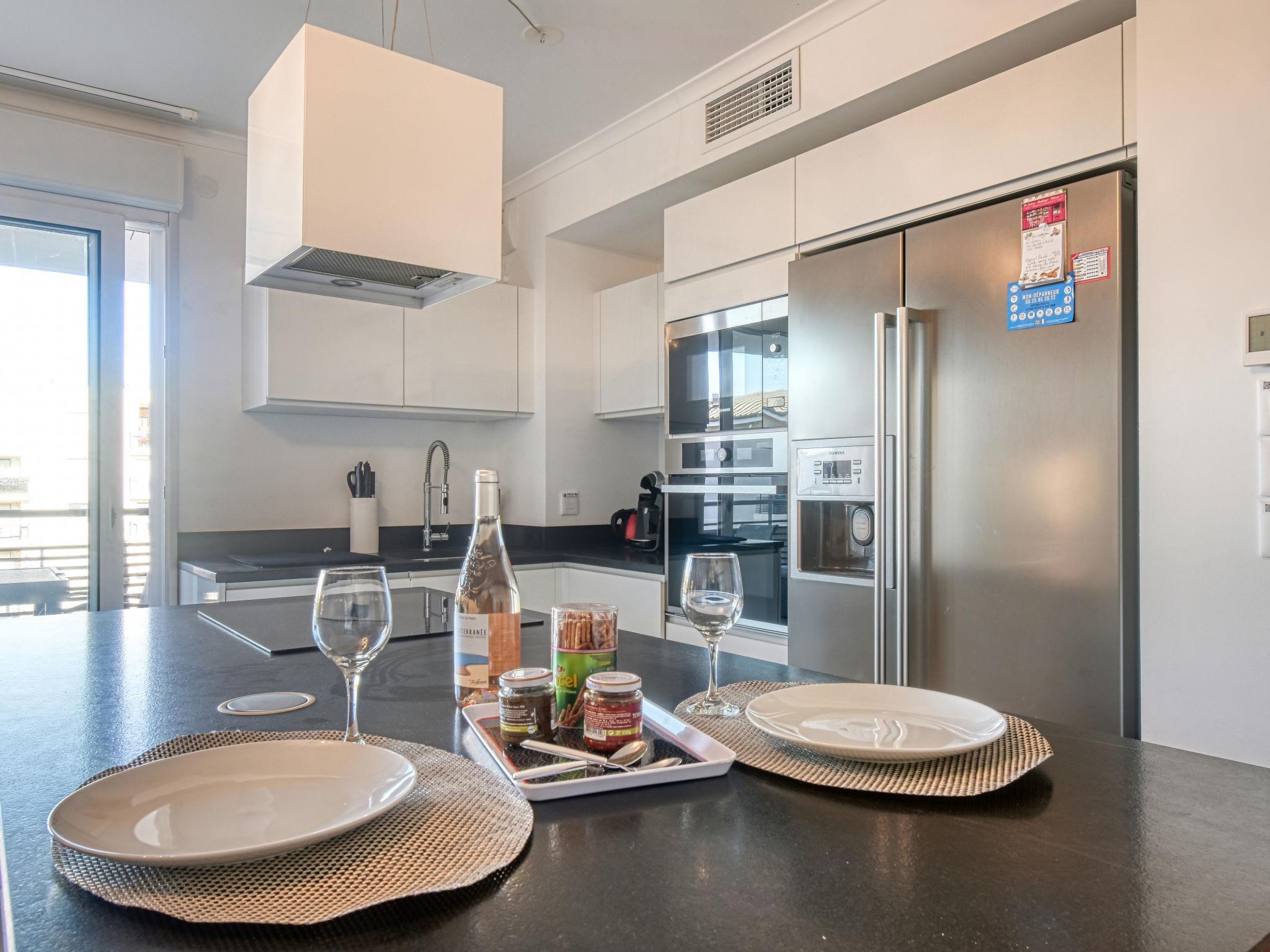 2-room apartment 45 m2 on 3rd floor. Luxurious furnishings: living/dining room with flat screen, air conditioning and electric shutters. Exit to the terrace, north facing position and east facing position. 1 room with 1 double bed (180 cm, length 200 cm), air conditioning and electric shutters. Open kitchen (oven, dishwasher, 4 induction hot plates, toaster, kettle, microwave, freezer, electric coffee machine, Capsules for coffee machine (TASSIMO) extra, cooking island) with bar. Shower. Electric heating. Terrace 17 m2. Terrace furniture. Side view of the garden and the canal. Facilities: washing machine, hair dryer. Internet (WiFi, free). Garage. Please note: non-smokers only. Smoke alarm. Flat screen TV 1.50 m, American fridge, wine cellar. Offer by a private individual according to Art. 155, IV of CGI.