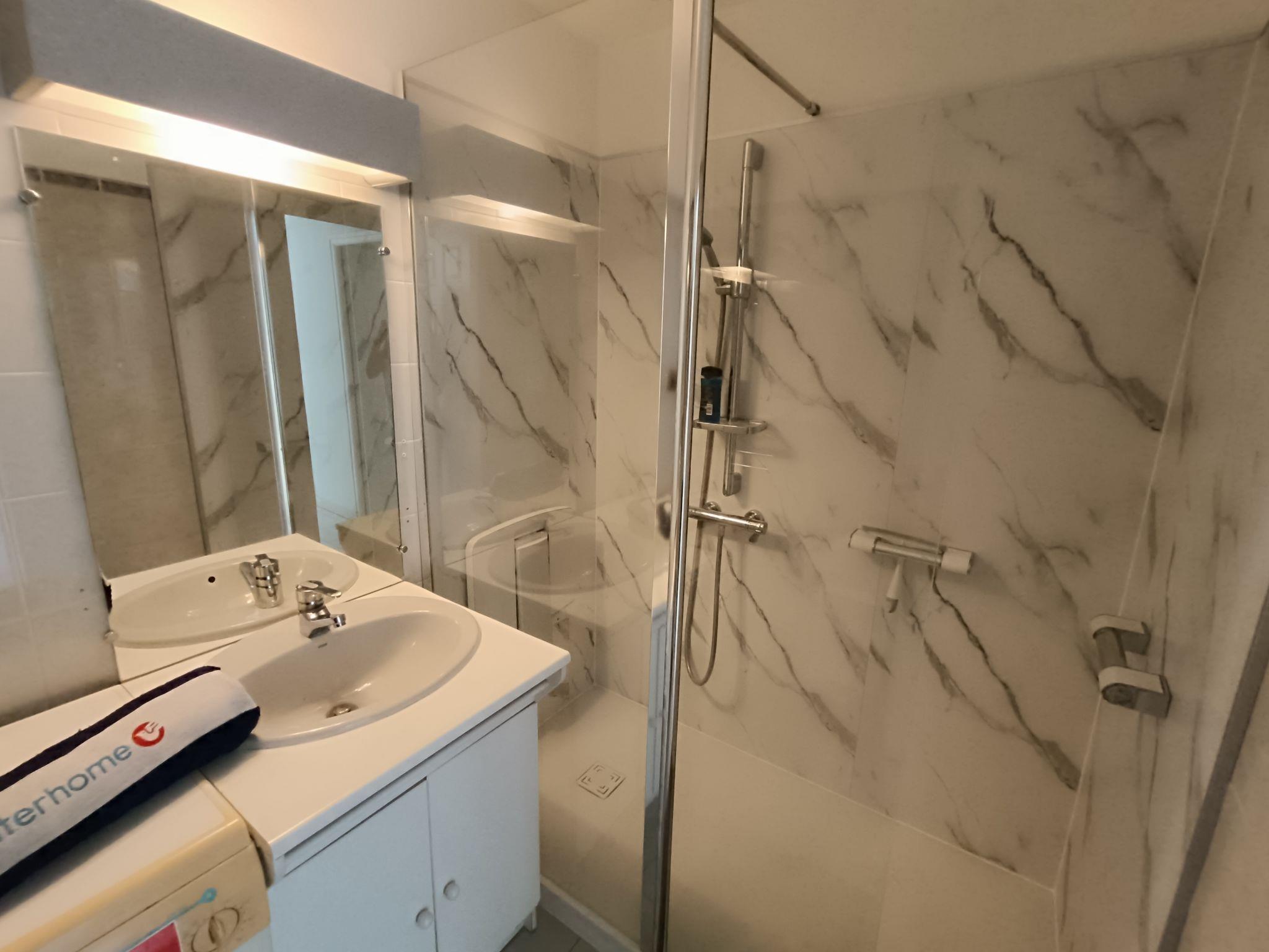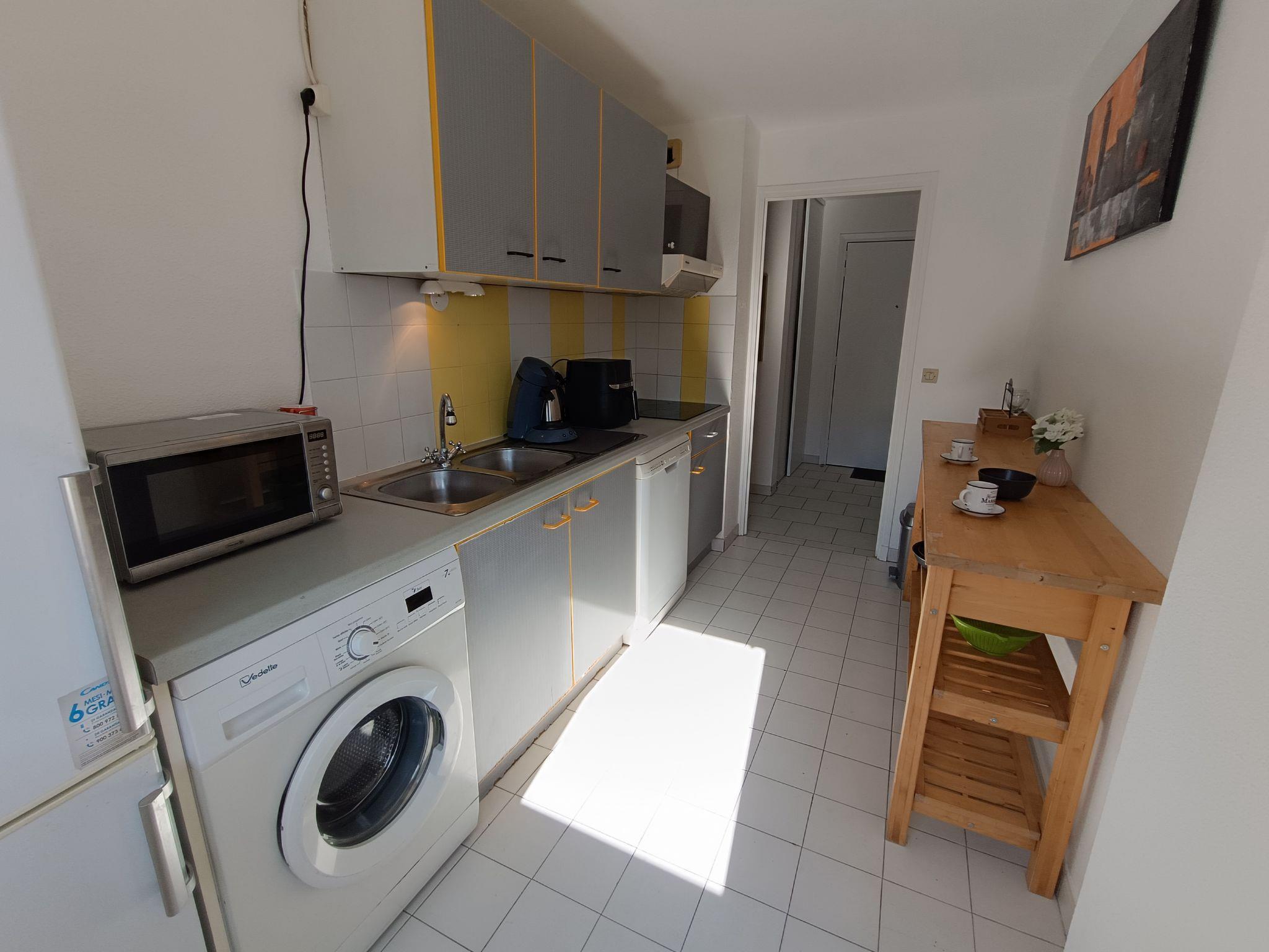 2-room apartment 44 m2 on 1st floor. Living/dining room with 1 sofabed (140 cm, length 190 cm), TV (flat screen), electric heating and air conditioning. Exit to the terrace, west facing position. 1 room with 1 french bed (1 x 140 cm, length 200 cm), TV (flat screen). (dishwasher, 4 ceramic glass hob hotplates, microwave, electric coffee machine, Capsules for coffee machine (Senseo) extra). Exit to the terrace. Bathroom, sep. WC. Electric heating. Terrace 6 m2. Terrace furniture. View of the port. Facilities: washing machine, hair dryer. Internet (WiFi, free). Garage space n 10, height 190 cm, width 235 cm. Please note: non-smokers only. Smoke alarm. Offer by a private individual according to Art. 155, IV of CGI.