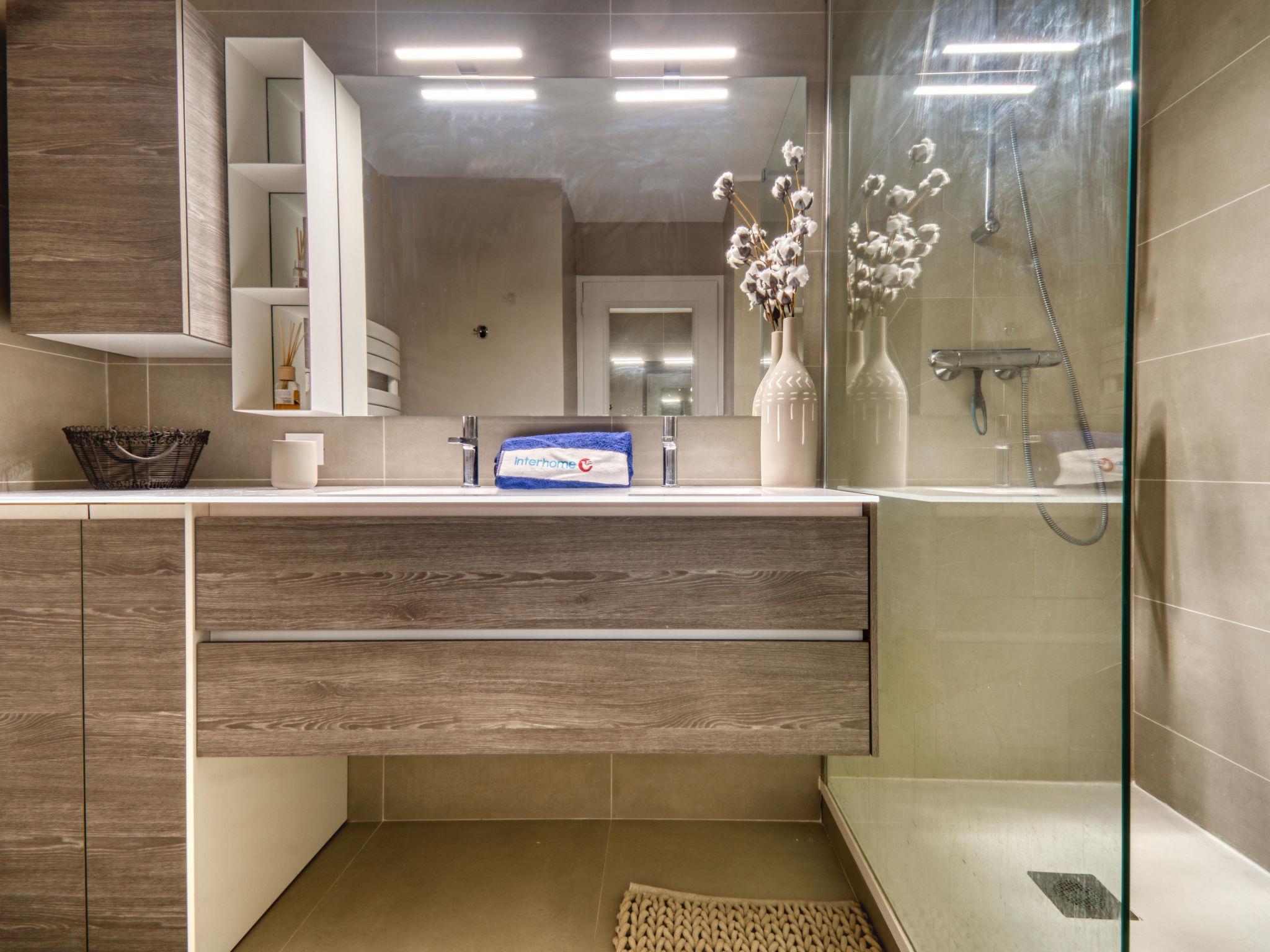 2-room apartment 56 m2 on 4th floor. Renovated in 2023: living/dining room with 1 double sofabed (140 cm, length 190 cm), TV (flat screen), electric heating and air conditioning. Exit to the terrace. 1 room with 1 french bed (1 x 140 cm, length 200 cm), TV (flat screen), electric heating and air conditioning. Kitchen (oven, dishwasher, 4 ceramic glass hob hotplates, kettle, microwave, electric coffee machine, Capsules for coffee machine (Senseo) extra). Shower, sep. WC. Electric heating. Terrace 6 m2. Terrace furniture. Facilities: washing machine, iron, hair dryer. Internet (WiFi, free). Garage space n 420, height 190 cm, width 275 cm. Please note: non-smokers only. TV only FR. Smoke alarm. Offer by a private individual according to Art. 155, IV of CGI.