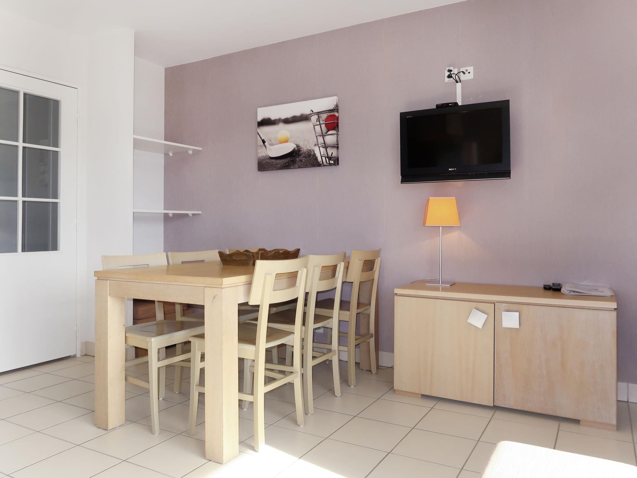 Resort "Cap Green", 2 storeys. 6 houses in the resort. 79 apartments in the residence. 4 km from the centre of Fréhel, 1 km from the centre of Sables-d'Or-les-Pins, 10 km from the centre of Cap Fréhel, 800 m from the sea. For shared use: property with plants, indoor pool heated (12 x 7 m, depth 160 cm, seasonal availability: 01.Jan. - 31.Dec. pool opening hours: 09:30-19:45). In the complex: reception, sauna (extra). Washing machine (for shared use, extra). Bread roll service. Parking (limited number of spaces). Restaurant 1 km, bus stop "Ville Orin" 27.7 km, sandy beach "Plage de Sables d'Or-les-Pins" 800 m, nudist beach 11 km. Golf course (18 hole) 100 m. Hiking paths: Cap d'Erquy 11 km. Please note: the photograph shows a typical example. The holiday properties may differ in living space, floorplan, equipment and furnishing.