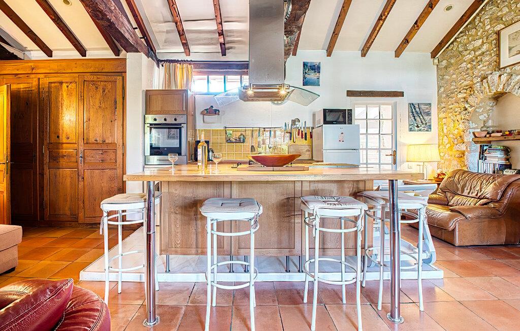Dette nænsomt restaurerede landsted har en hyggelig atmosfære lavet af synlige træbjælker, velholdte naturstensvægge og varme træmøbler. Brug det moderne køkken til madlavningsaftener sammen og sæt jer ned i den hyggelige stue til gode samtaler over et glas vin, spændende læsning eller til selskabelige spilleaftener.