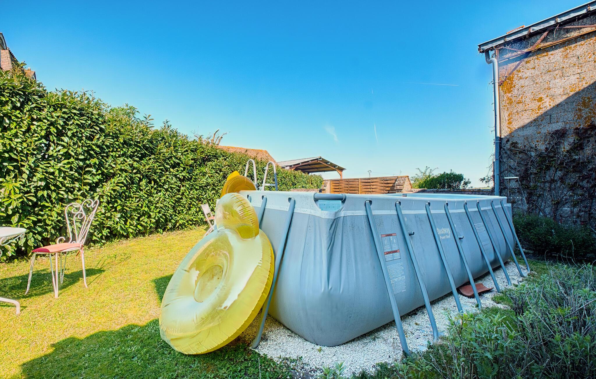 Udendørsområdet er en lille grøn oase med velplejede græsplæner, liggestole og en forfriskende pool. Nyd jeres morgenmad på terrassen, mens børnene leger i haven, og glæd jer til stemningsfulde grillaftener under stjernerne på varme sommerdage.