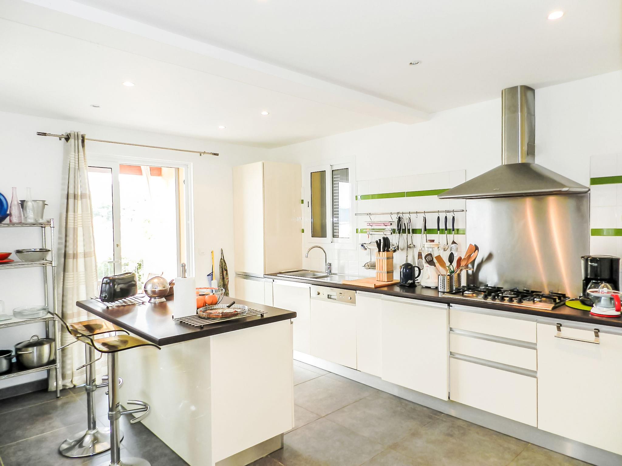 4-room villa 175 m2 on 2 levels. Spacious, very beautiful and tasteful furnishings: living room with TV (flat screen), hi-fi system and DVD. Dining room. Exit to the terrace. 1 room with Dressing room with 1 french bed (160 cm), shower/WC. Open kitchen (5 hot plates, oven, dishwasher, toaster, kettle, microwave, freezer, electric coffee machine, cooking island). Sep. WC. Upper floor: 1 room with Dressing room with 1 french bed (140 cm), shower/WC. Exit to the balcony. 1 room with Dressing room with 2 beds (90 cm), shower/WC. Exit to the balcony. Electric heating, air-conditioning. Balcony 20 m2, terrace 65 m2. Terrace furniture, barbecue, deck chairs (5). Very beautiful view of the sea and the mountains. Facilities: washing machine, iron, baby cot, hair dryer. Internet (WiFi, free). Please note: suitable for families. Non-smoking house. Smoke alarm. The small Port de Galeria is accessible by foot and only 50m from the house. FR51885