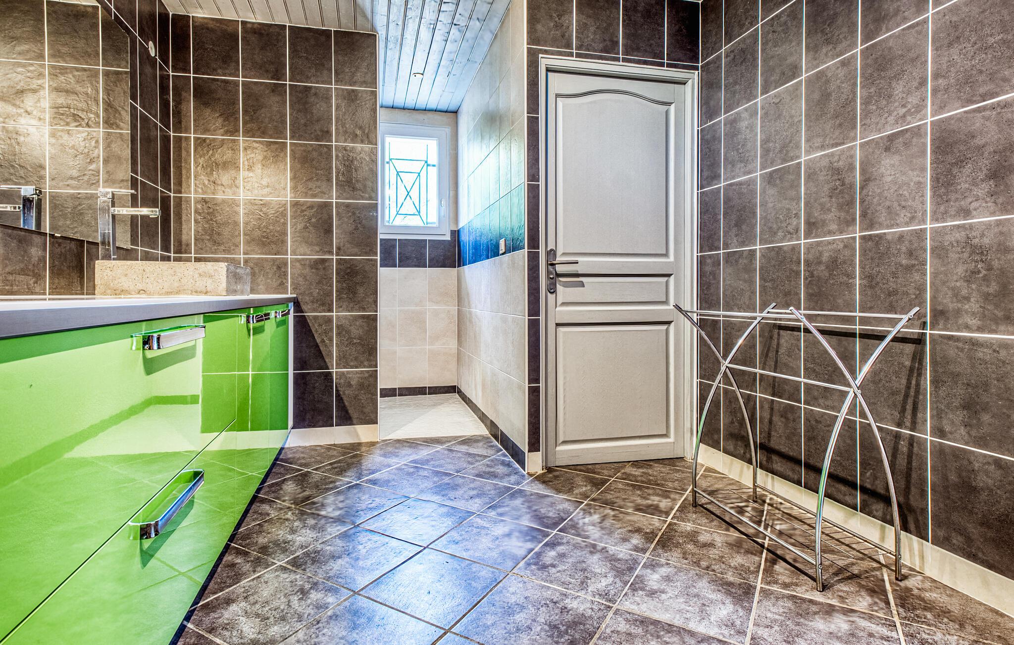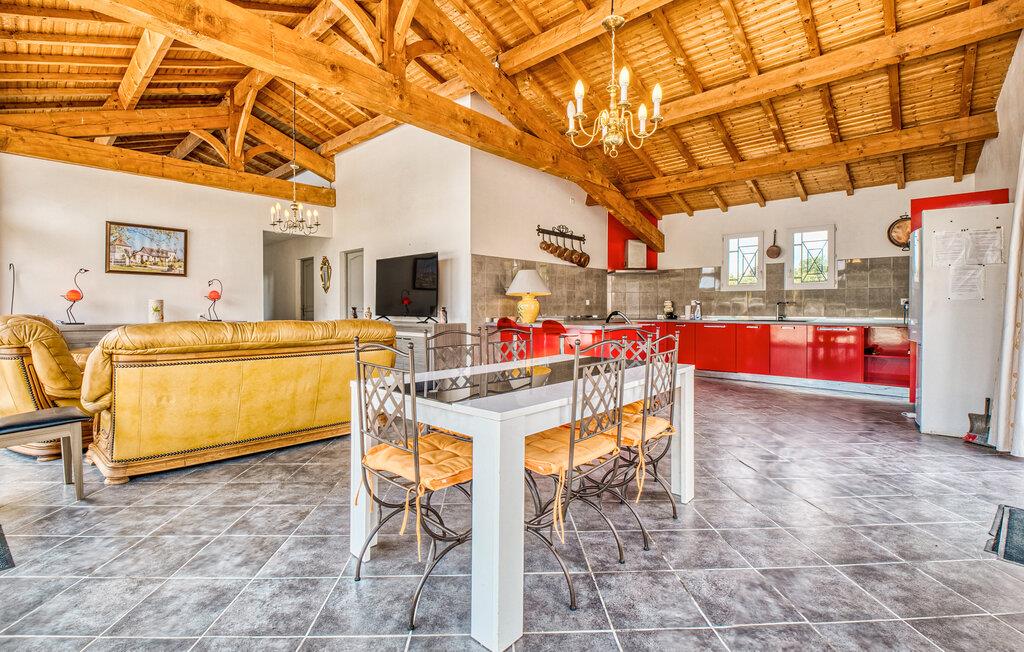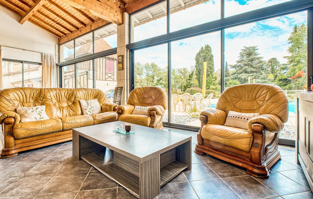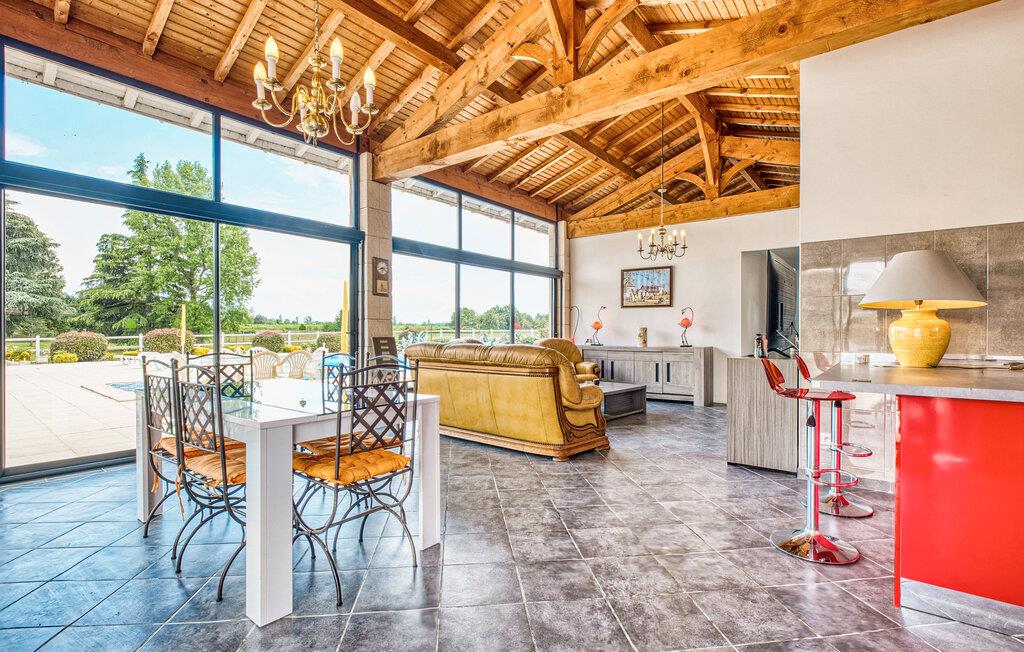 Velkommen til dette smagfulde feriehus, hvor store vinduespartier giver masser af naturligt dagslys. Pisk lækre retter op i det moderne, åbne køkken og nyd jeres måltider med udsigt over poolen. Efter en begivenhedsrig dag kan I slå jer ned i den behagelige sofa, spille et brætspil eller få en god snak med et glas vin.