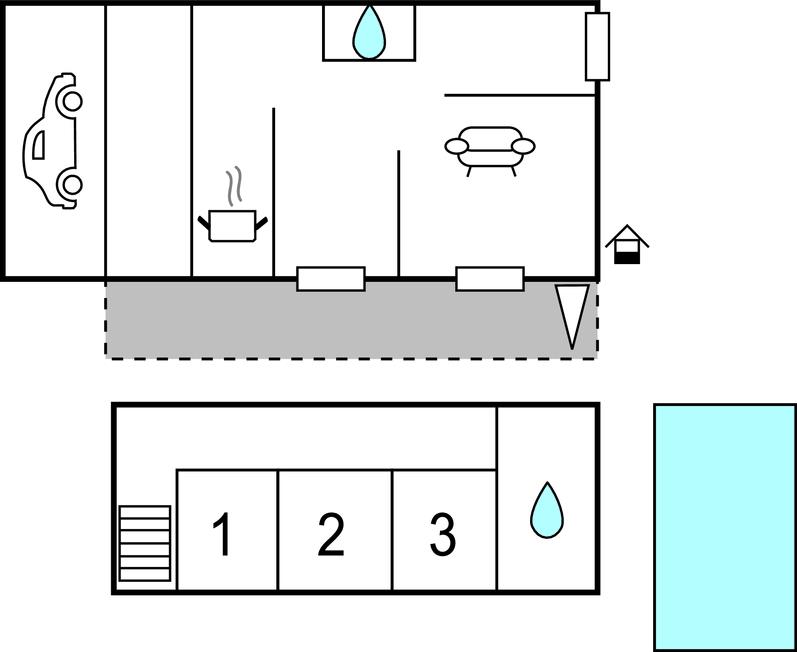 Badeværelse 6m2 (nr. 1) - WC. Varmt og koldt vand. Bruser